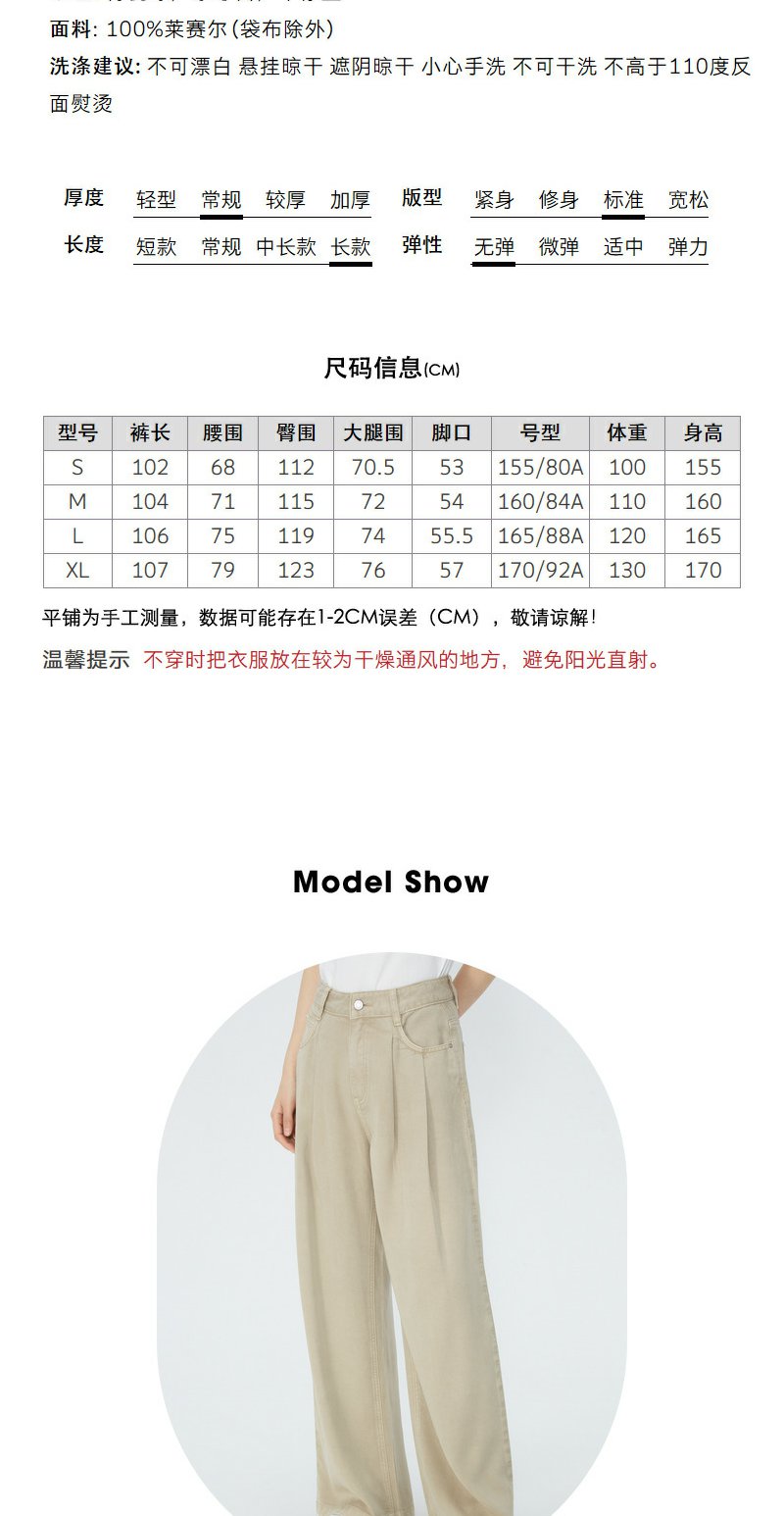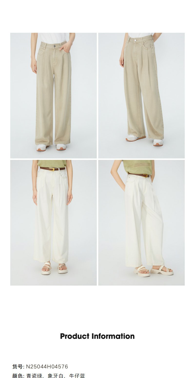 NEELLY纳俪商场同款夏新款莱赛尔高腰垂感直筒裤女宽松百搭阔腿裤N25044H04576