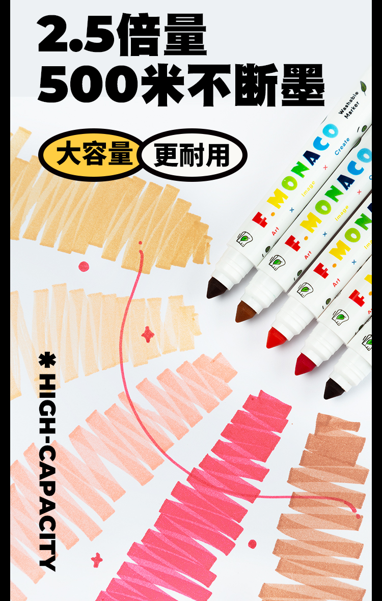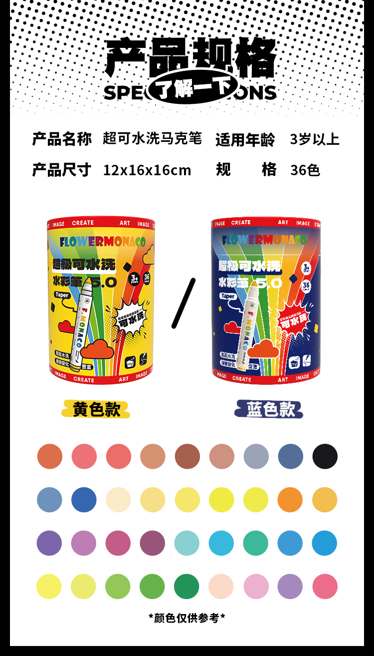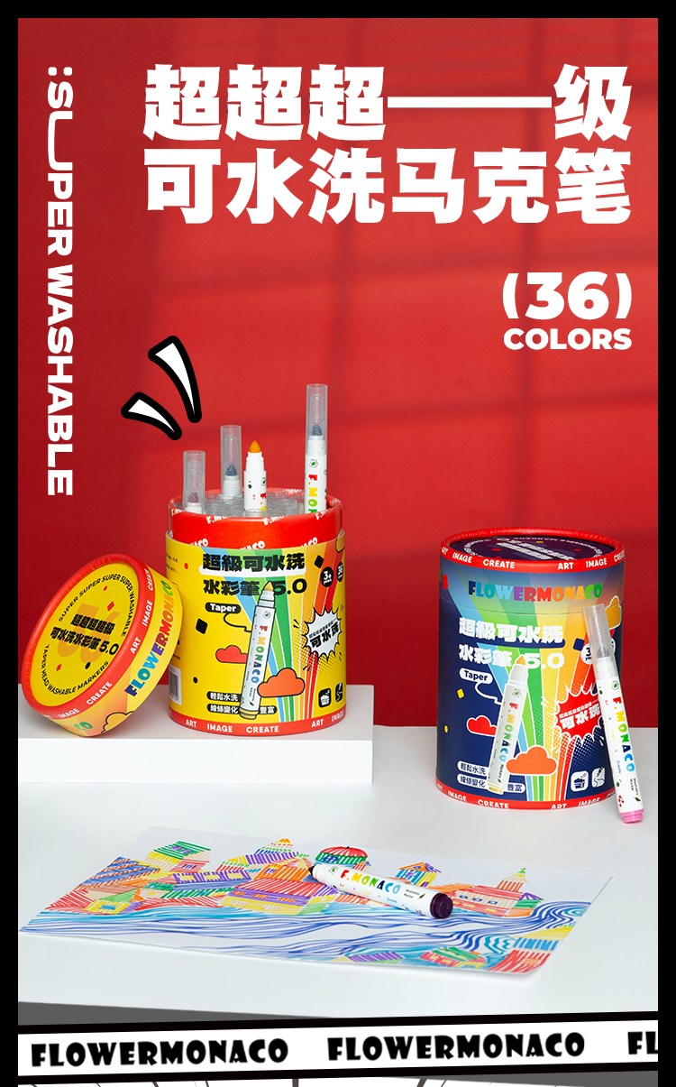 花芽水彩笔可水洗36色马克笔水性亲肤配方小学生专用美术专用画画不透色无异味