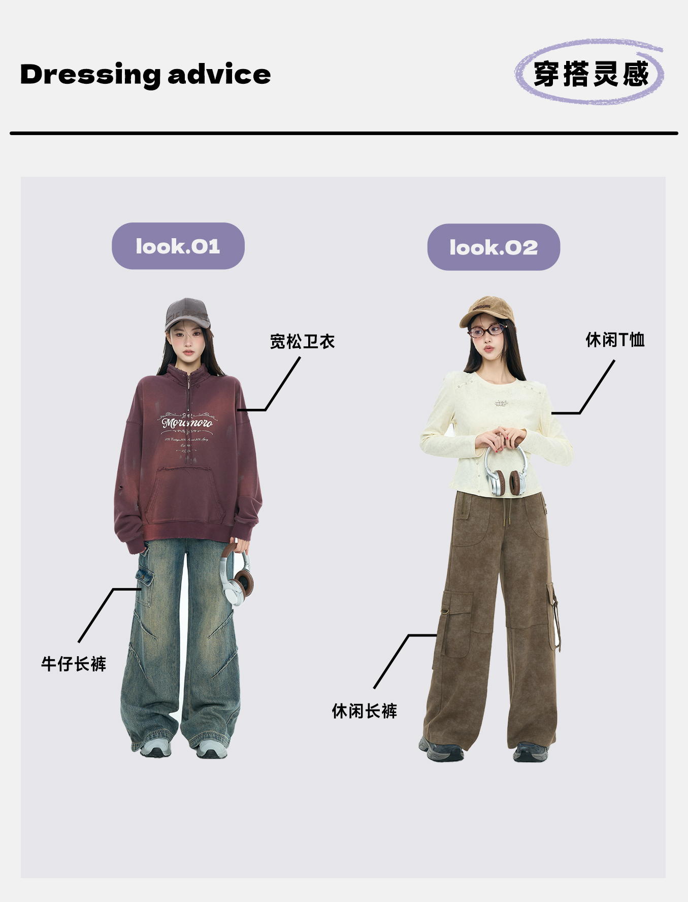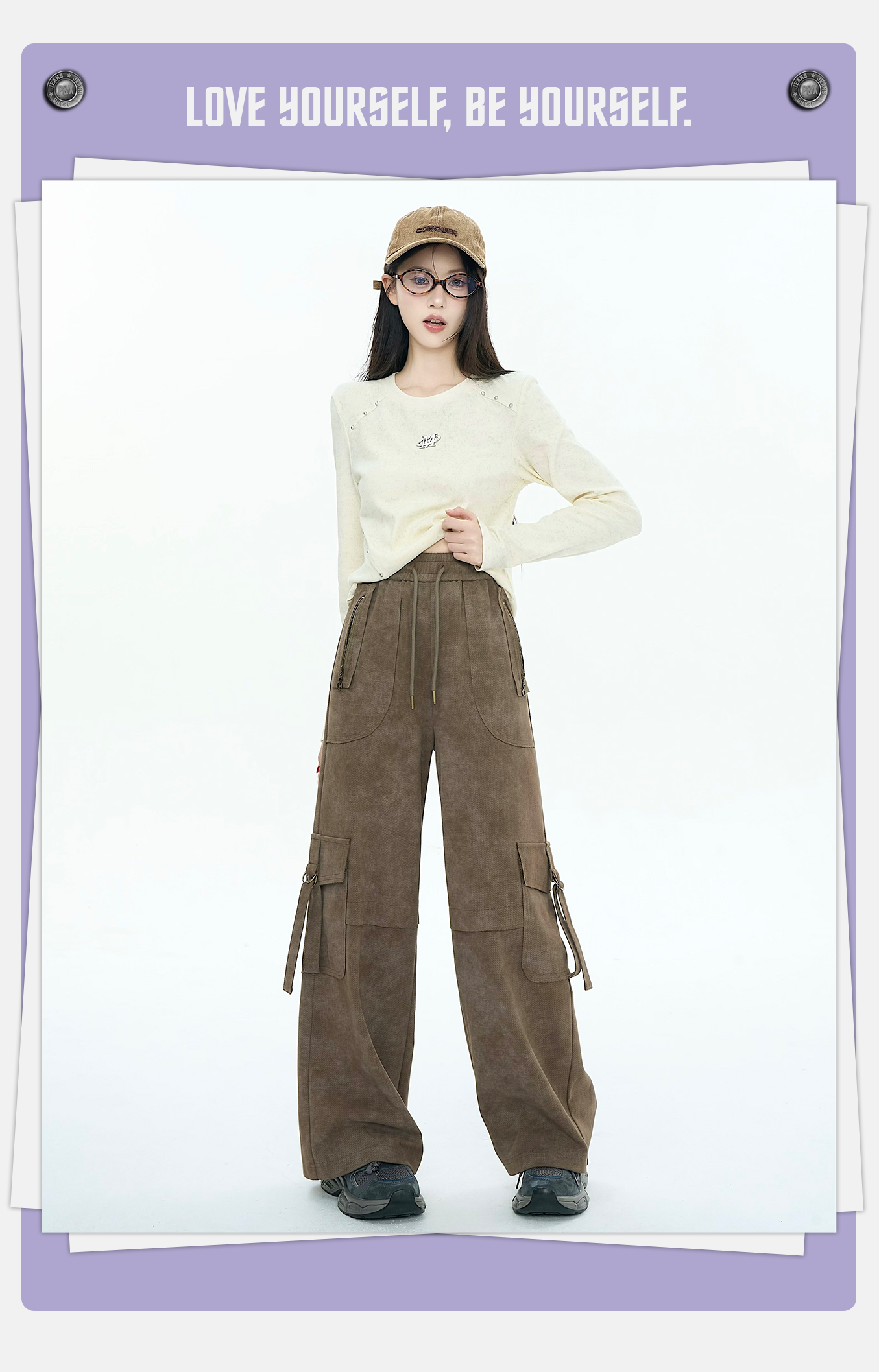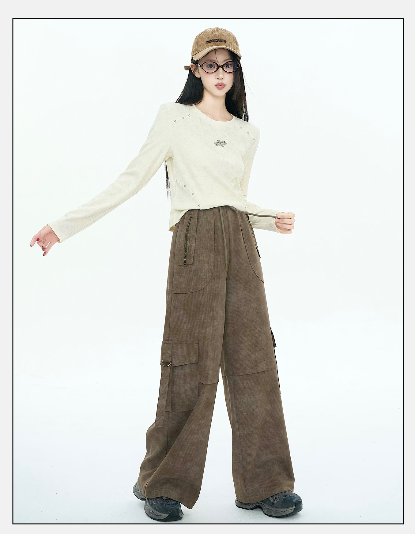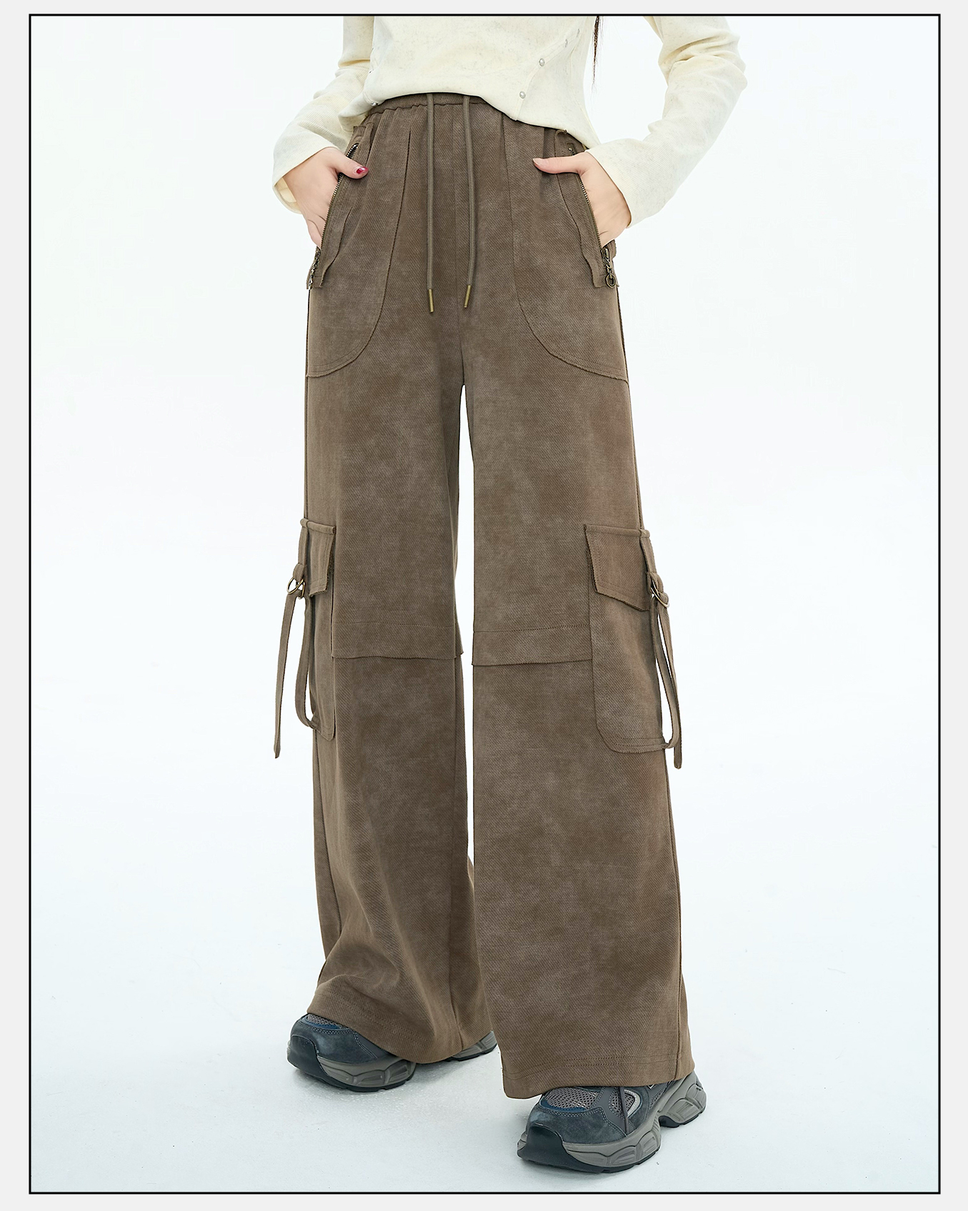 P&X设计师女装2025秋季大理石纹裤工装休闲长裤825309170 咖色