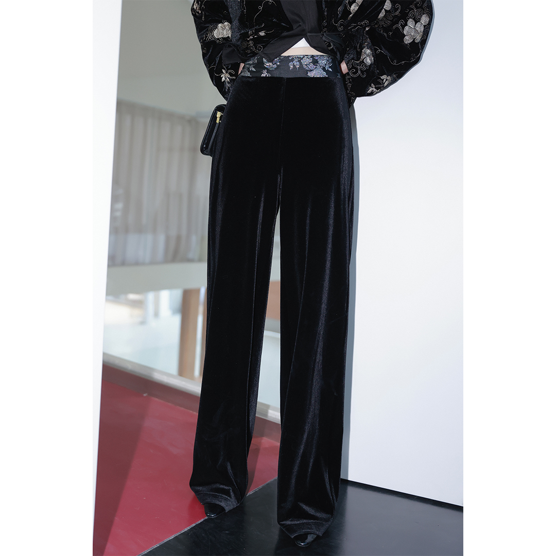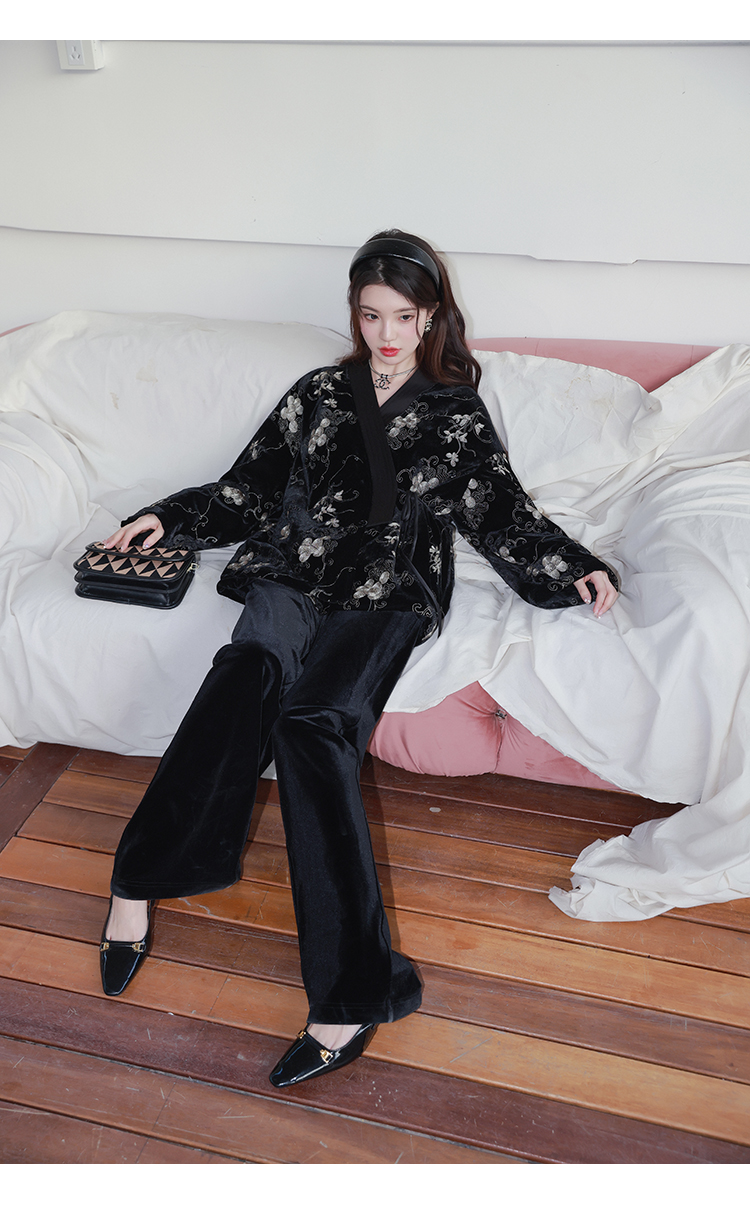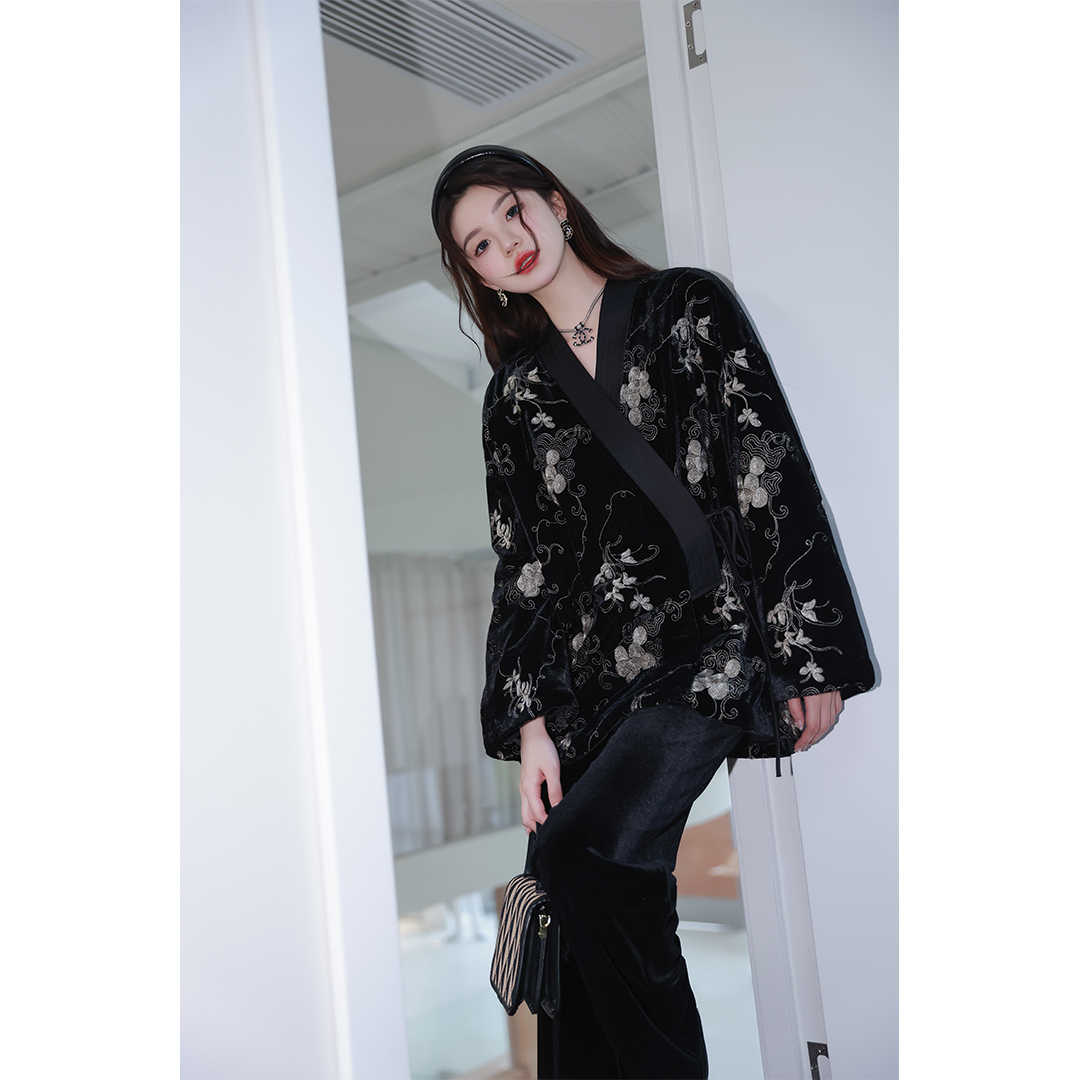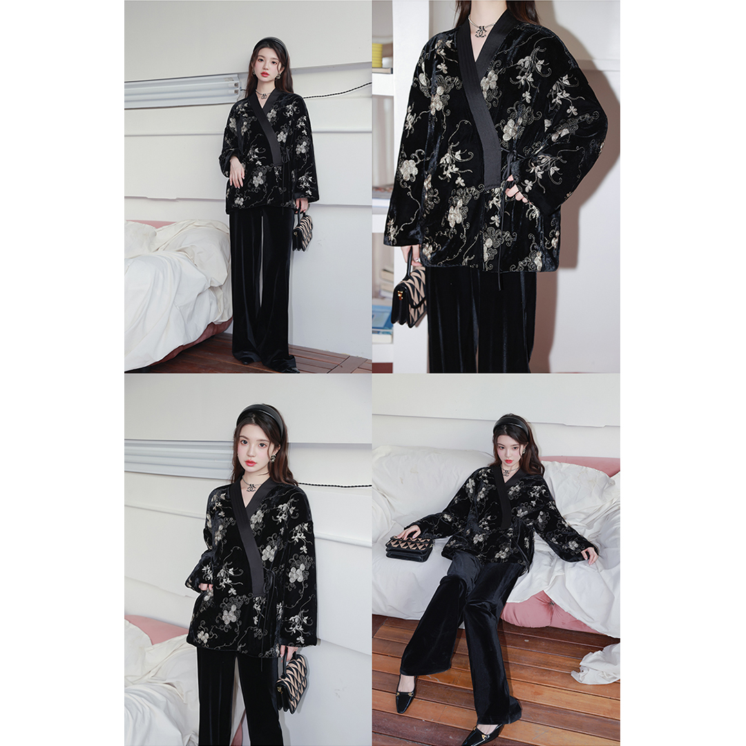清仓捡漏 LIN CHAO ZHANG 新中式小暗黑刺绣丝绒外套+丝绒阔腿裤