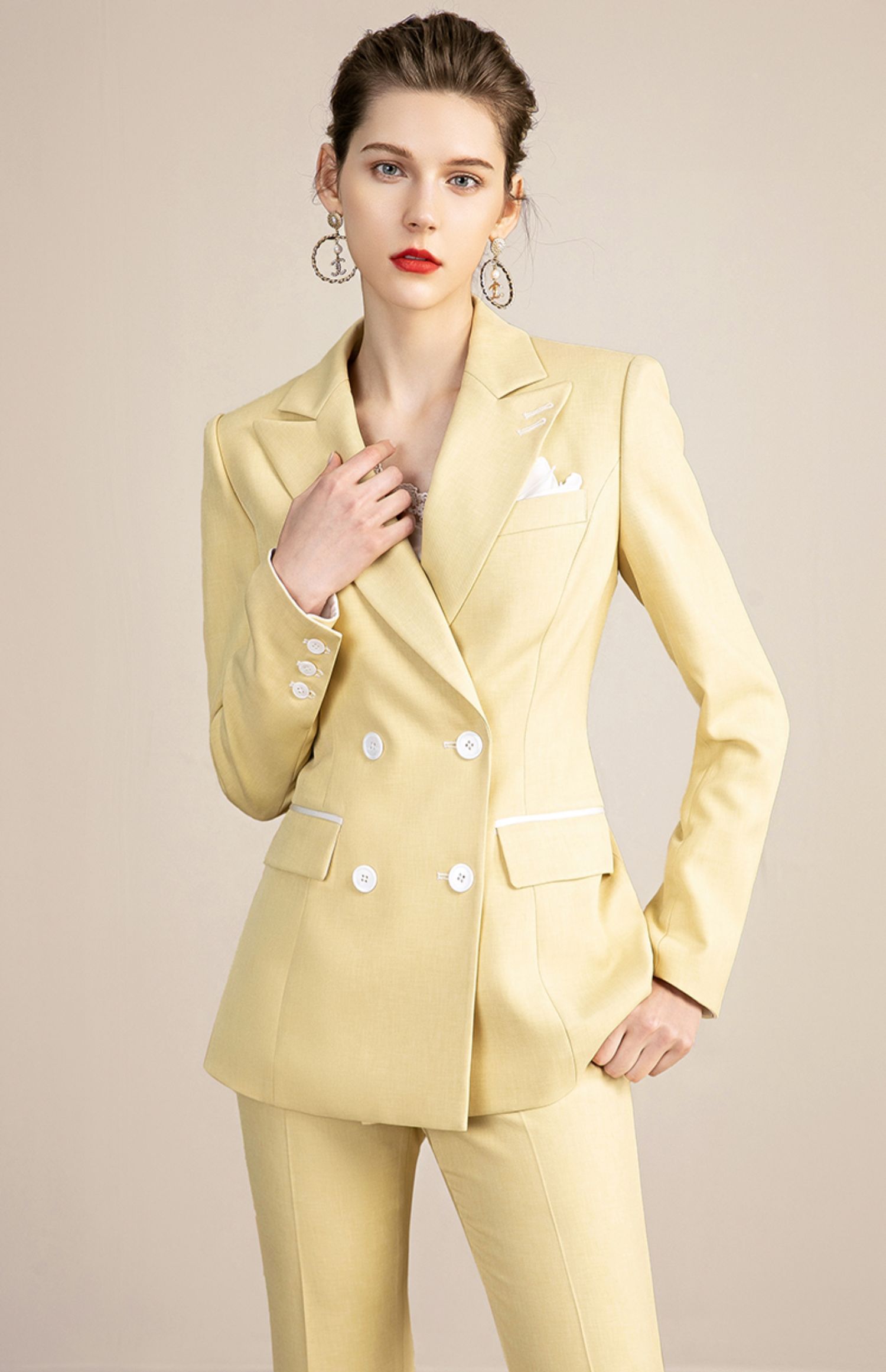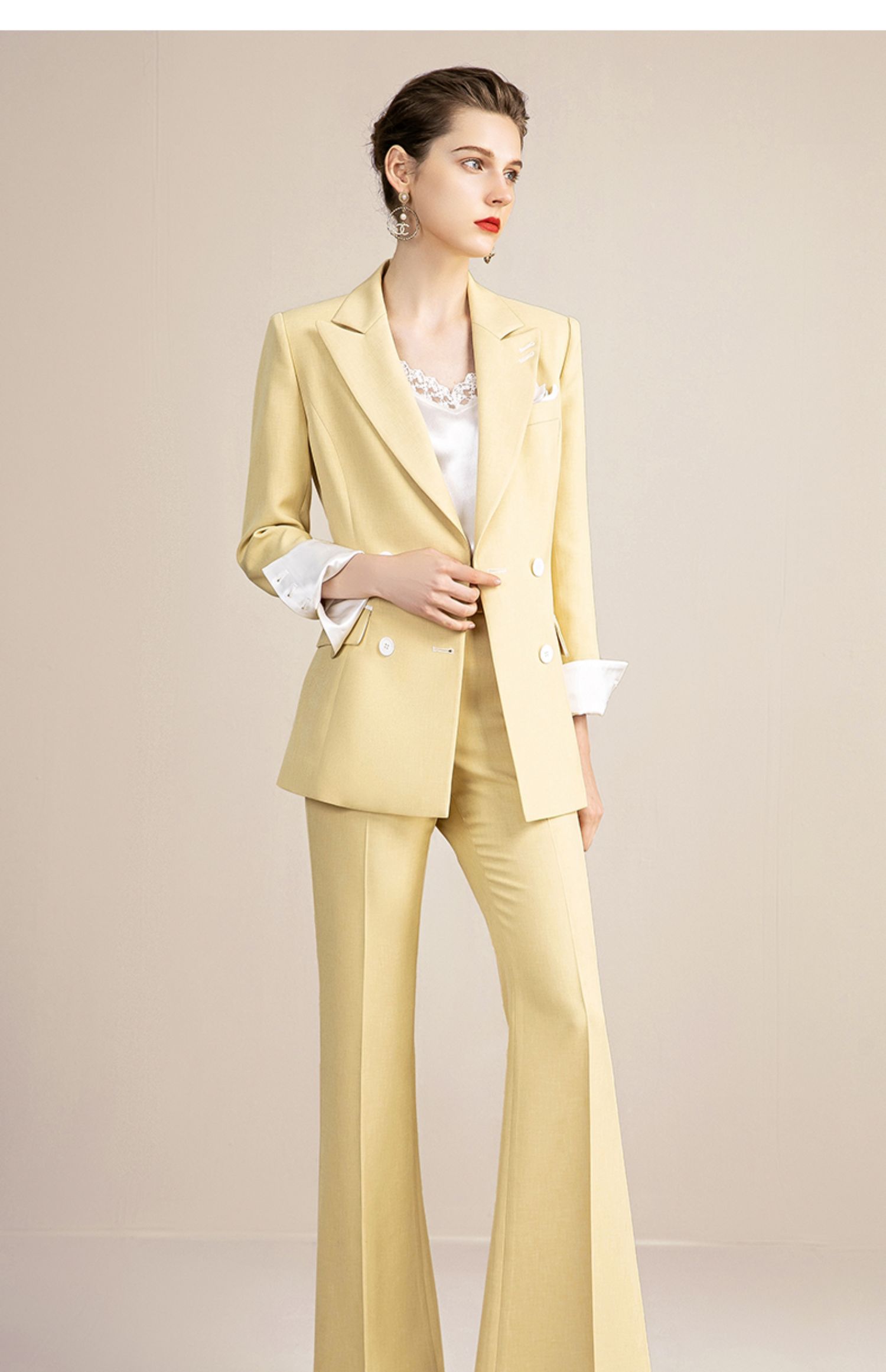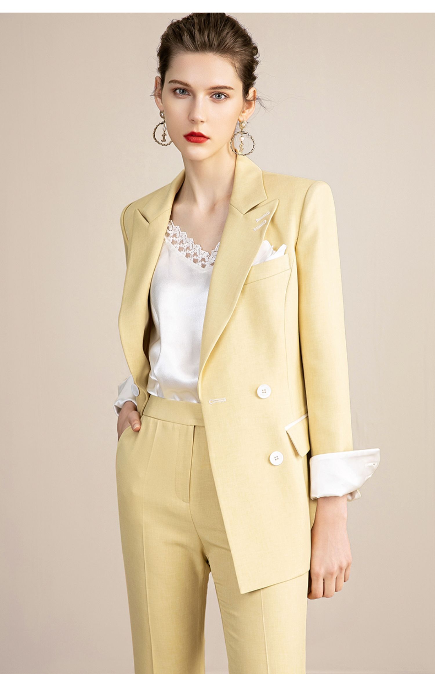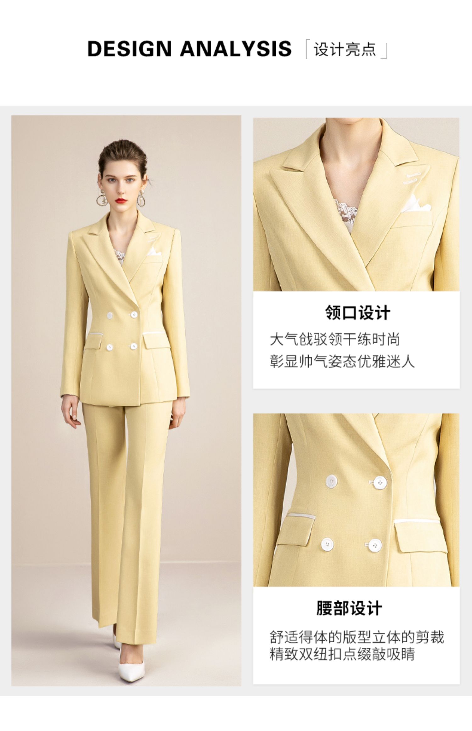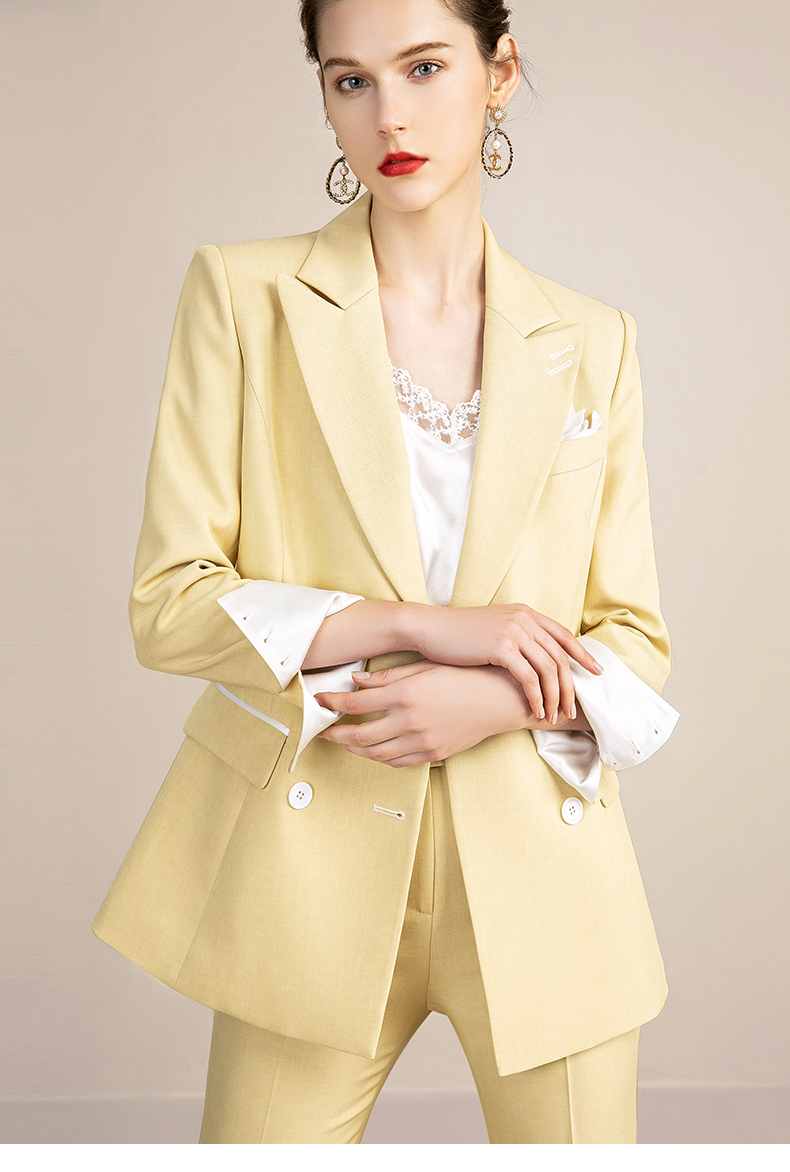 IWY/高端黄色西装套装女韩版休闲美容院工装干练职业装OL 213129C1+P3