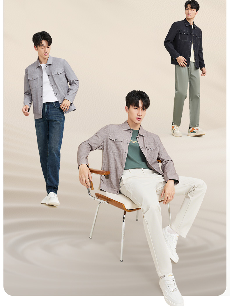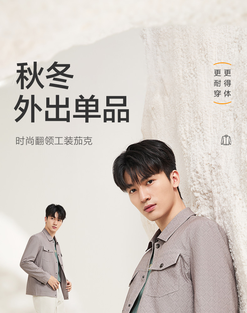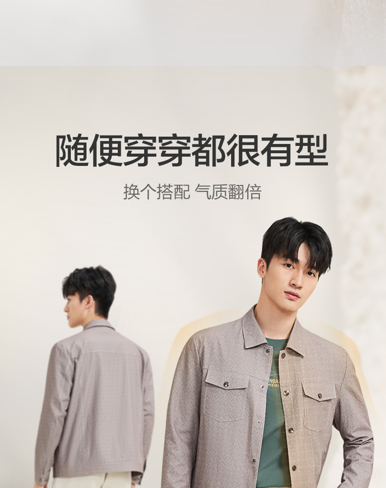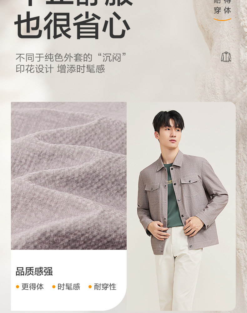 【工装满印茄克】柒牌夹克外套男2025新款商务休闲翻领印花茄克129K70420