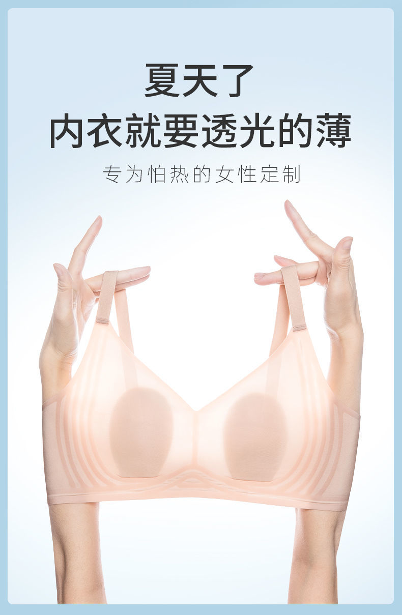 黛唯梵 七夕节限定两件装!!【弧度减小,轻薄自然】2022年夏季超薄内衣,冰凉果冻面膜大胸显小胸兔耳朵水晶杯无痕文胸