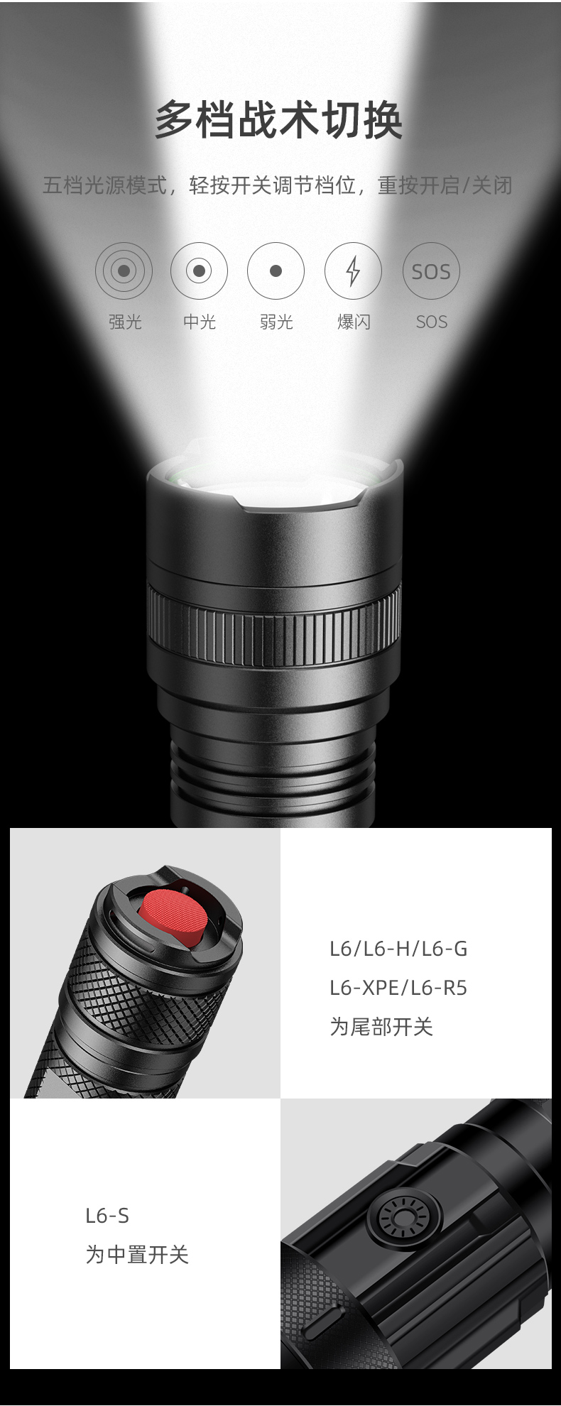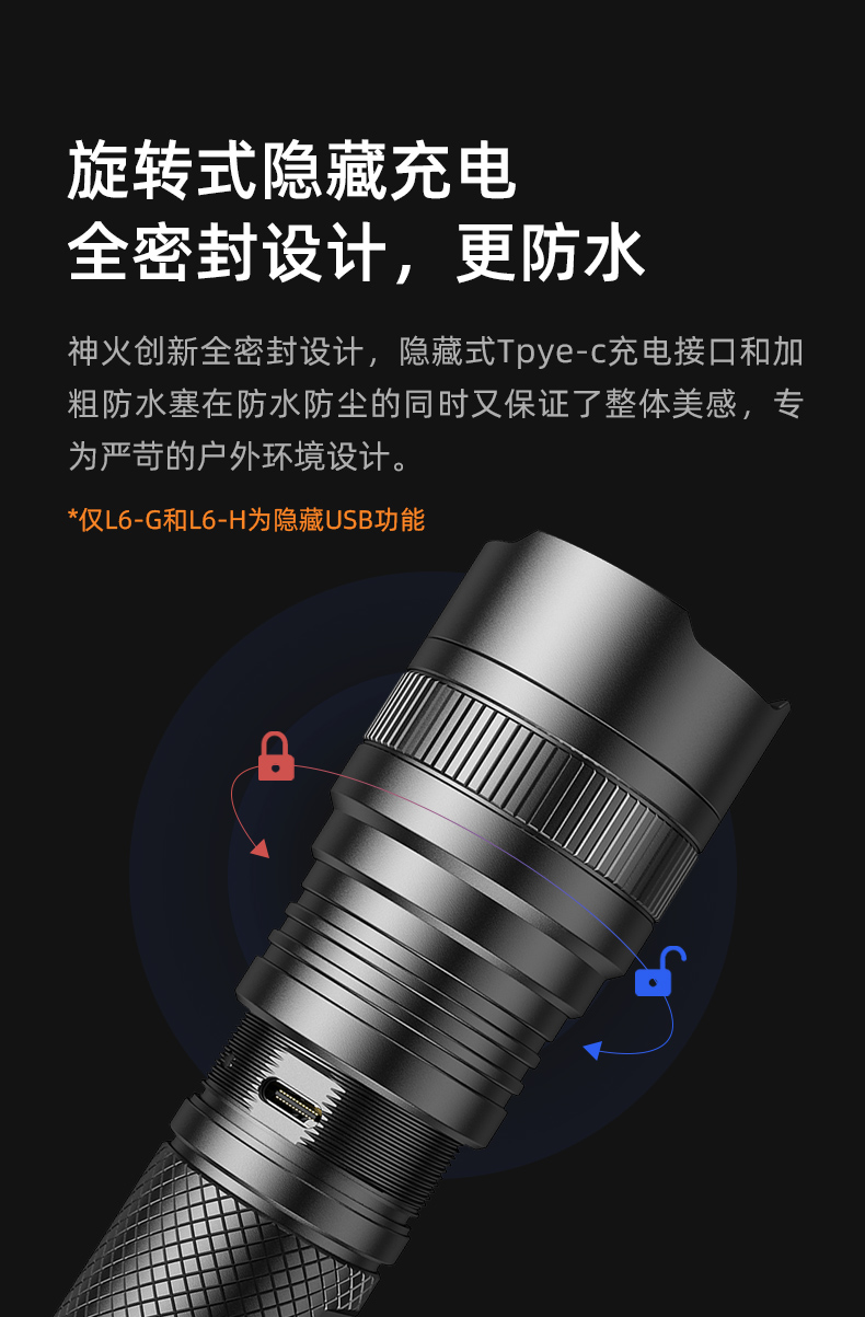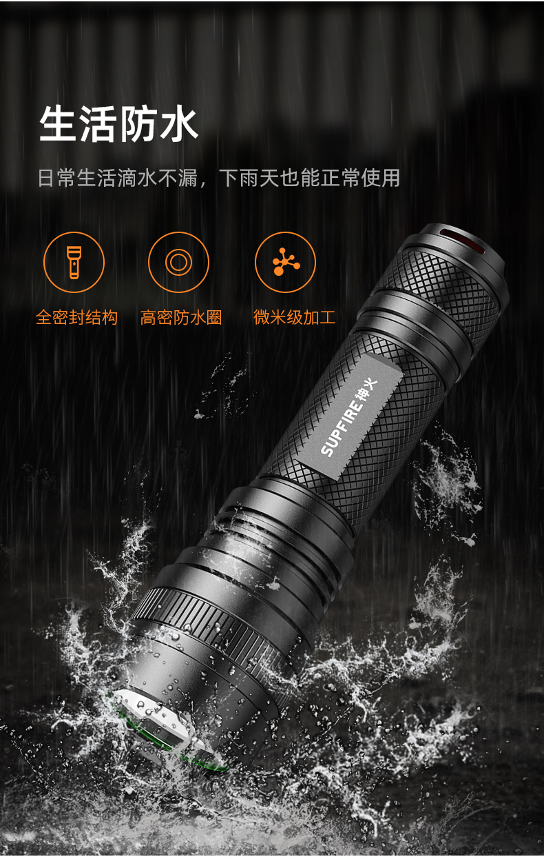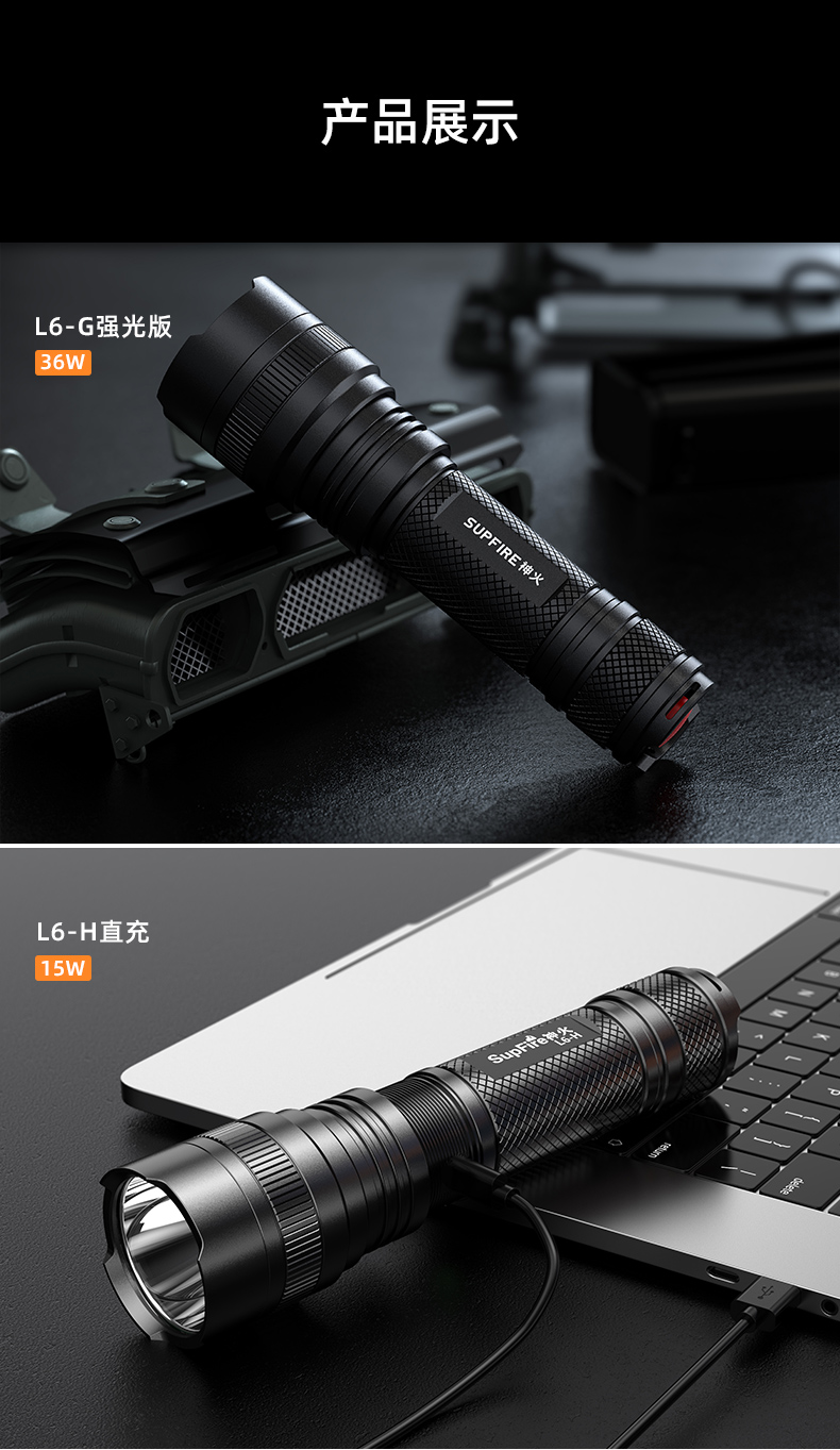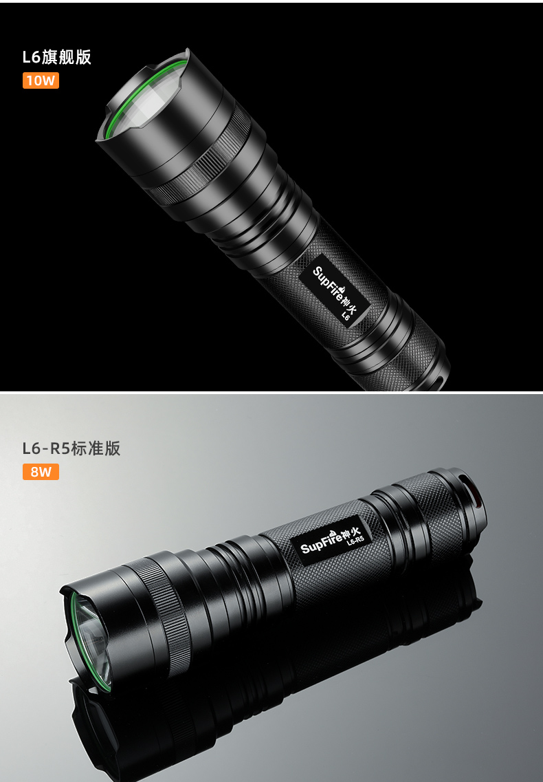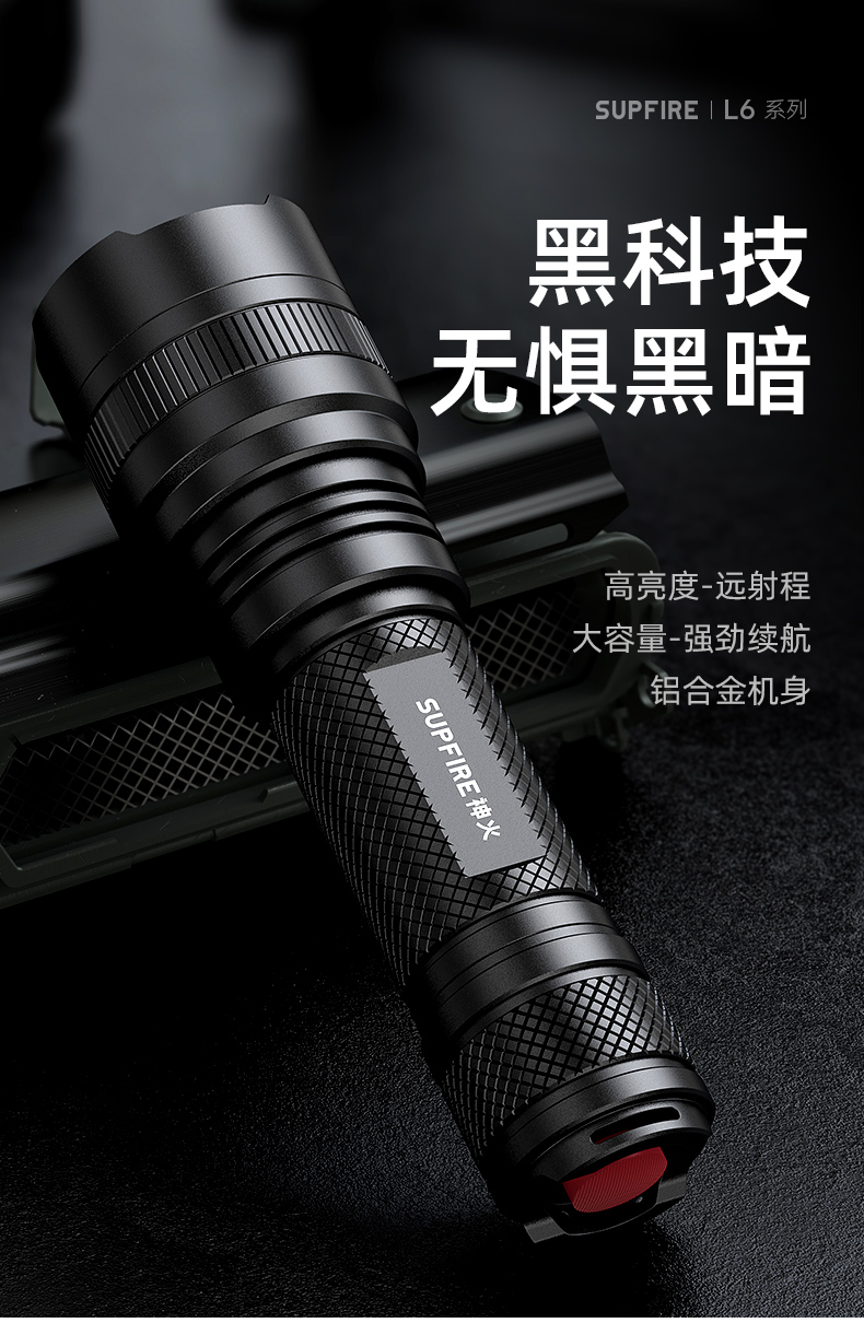 SUPERFIRE神火L6手电筒强光远射可充电超亮户外防水便携防身led手电