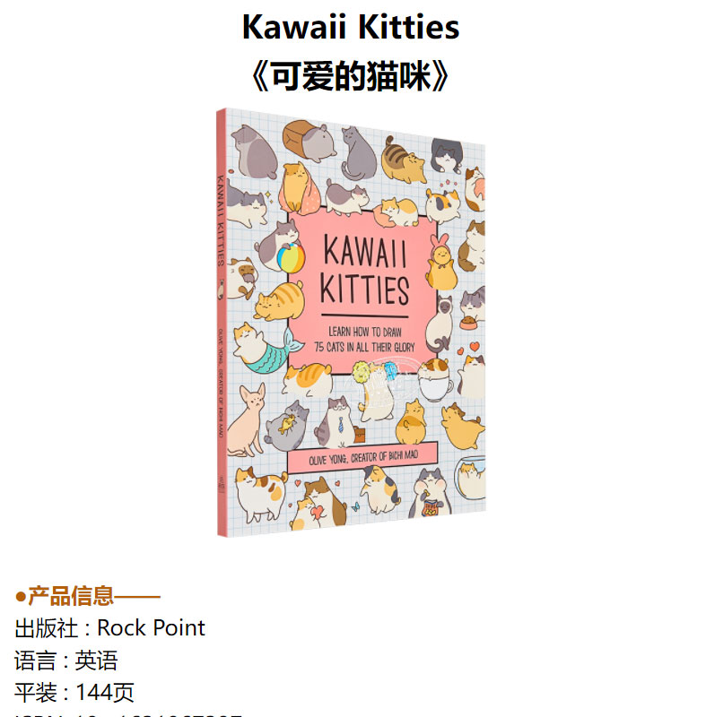 预售 【中商原版】Kawaii Kitties 进口艺术 可爱的猫咪 学习如何绘画75只猫的风采