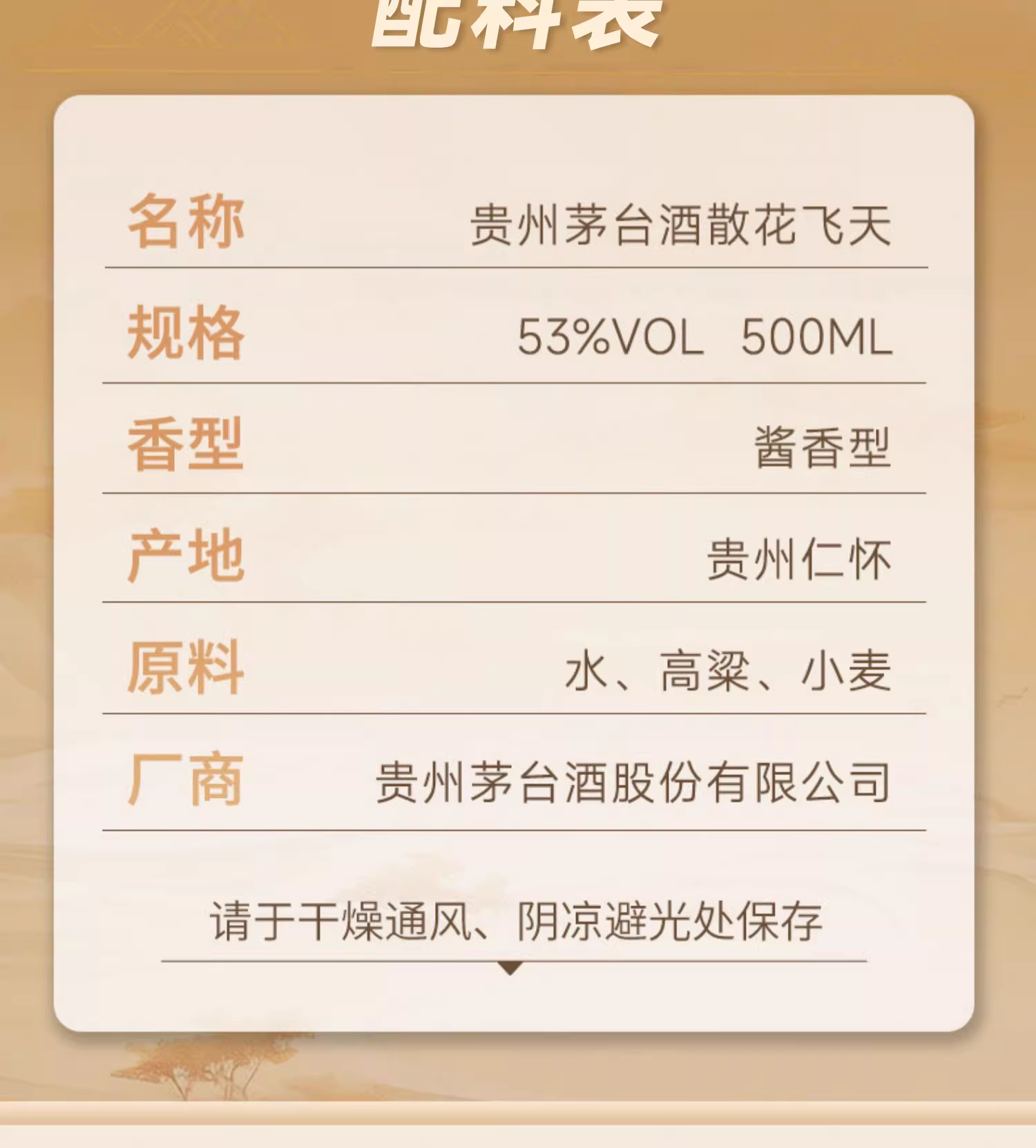 53度贵州茅台酒(散花飞天)500ml 单瓶