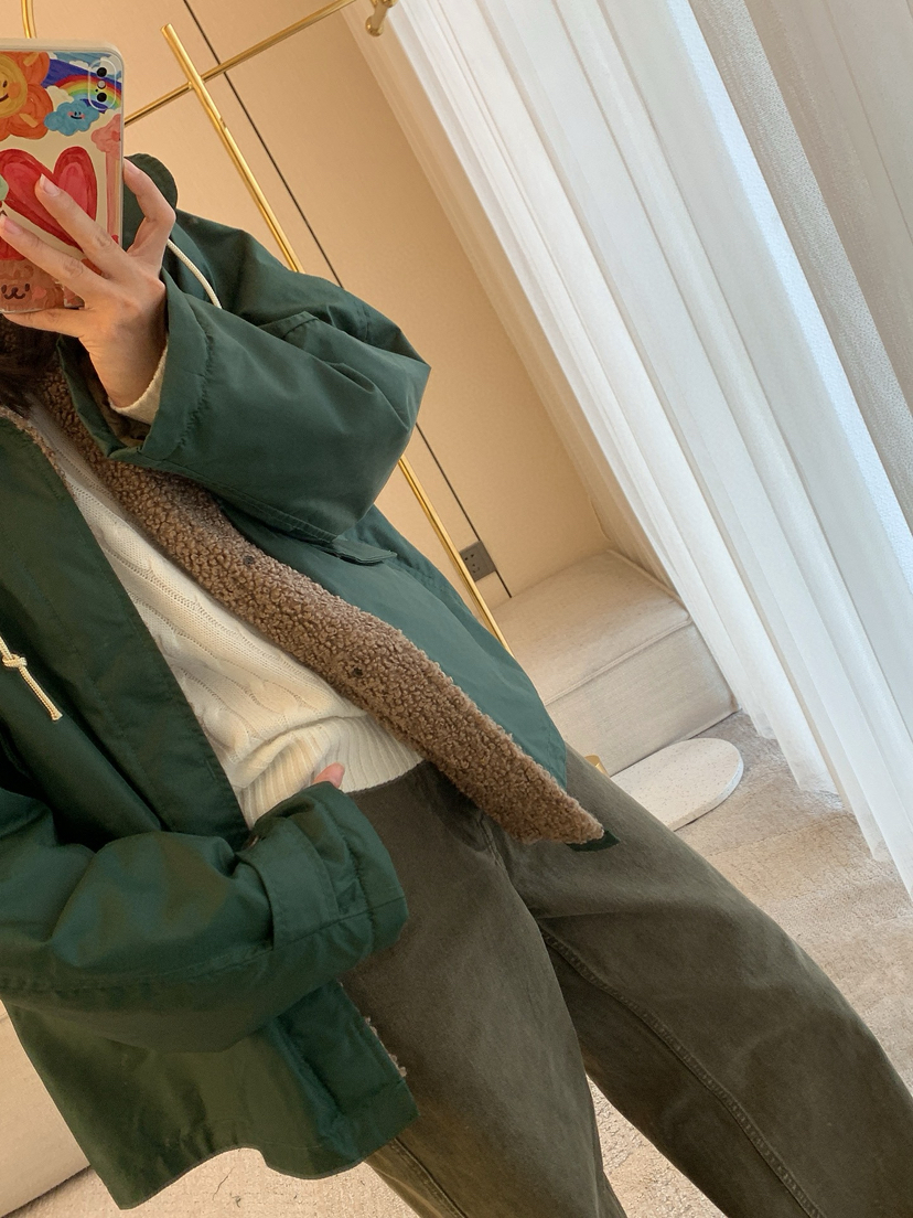 好看好穿好舒适更是好保暖!内外干净利落,隐藏式扣眼设计,形成流畅的线条,细节处真看不出是反面。