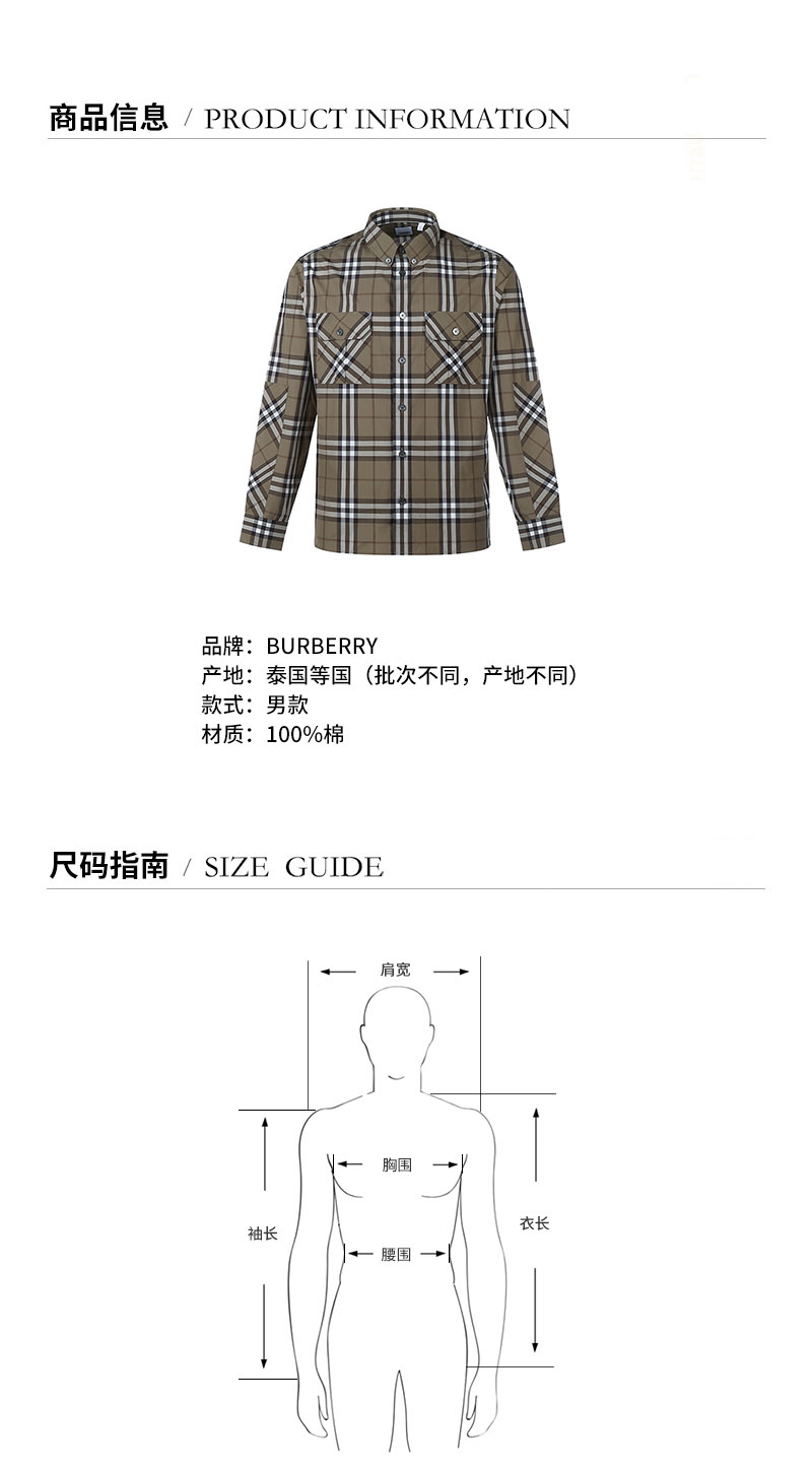 BURBERRY/博柏利【21秋冬新款】男士长袖衬衫 男款棉质长袖衬衫格纹 80442181