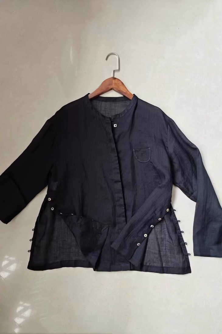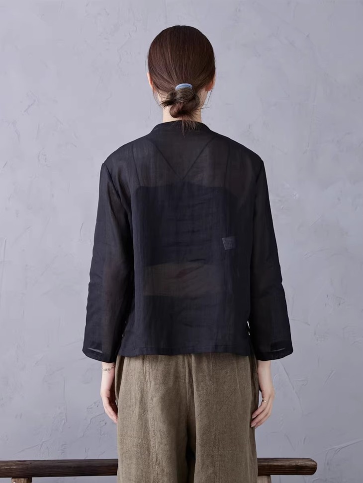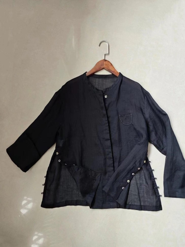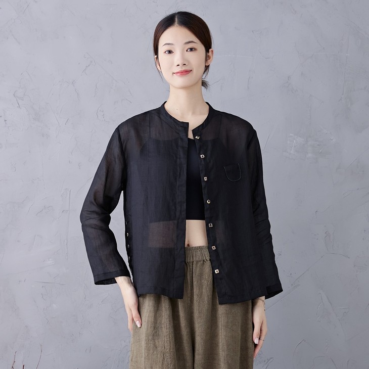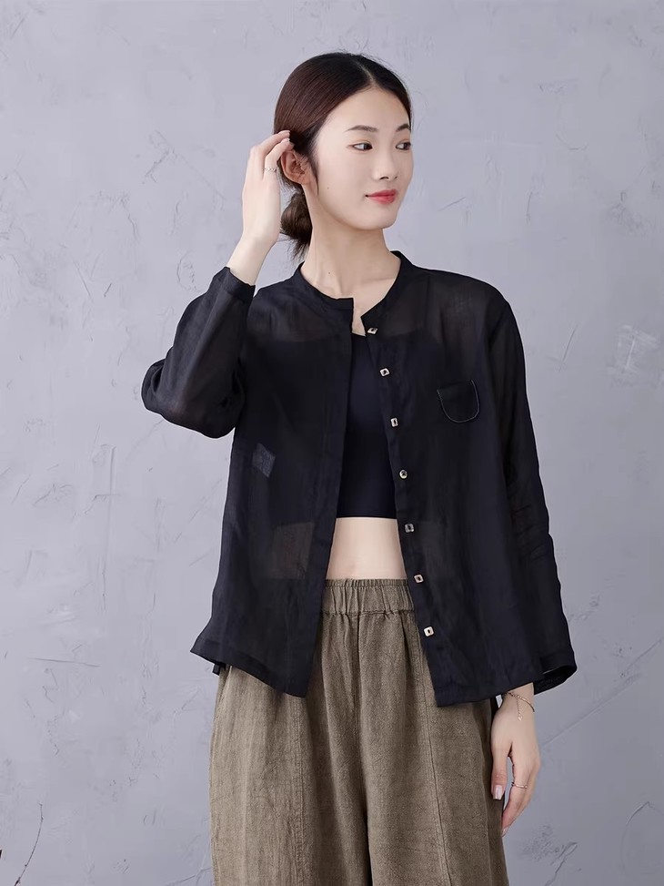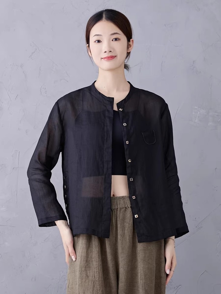 轻柔苎麻衬衣,文艺复古开衫防晒衬衫休闲清透大码中式GYD-A0211