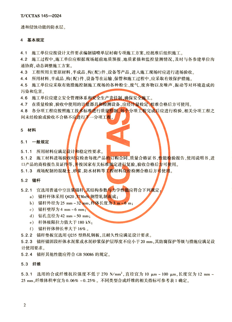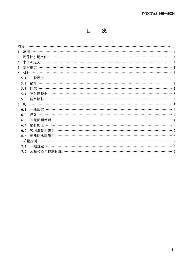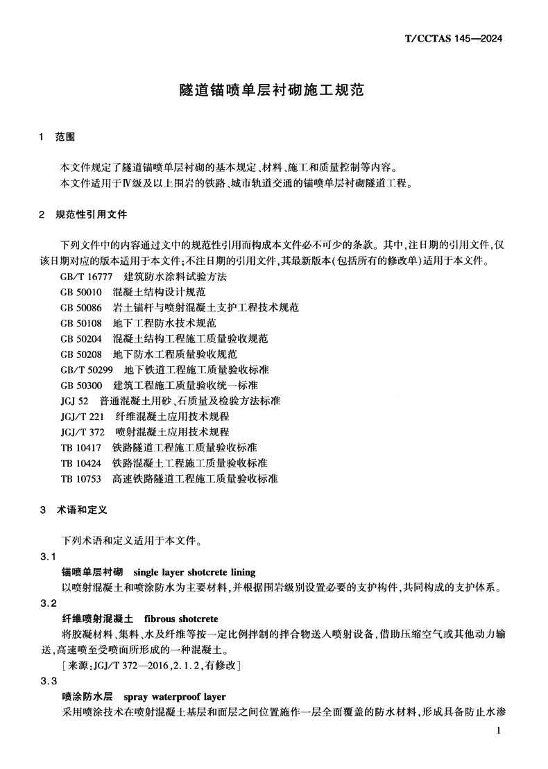 隧道锚喷单层衬砌施工规范T/CCTAS 145—2024