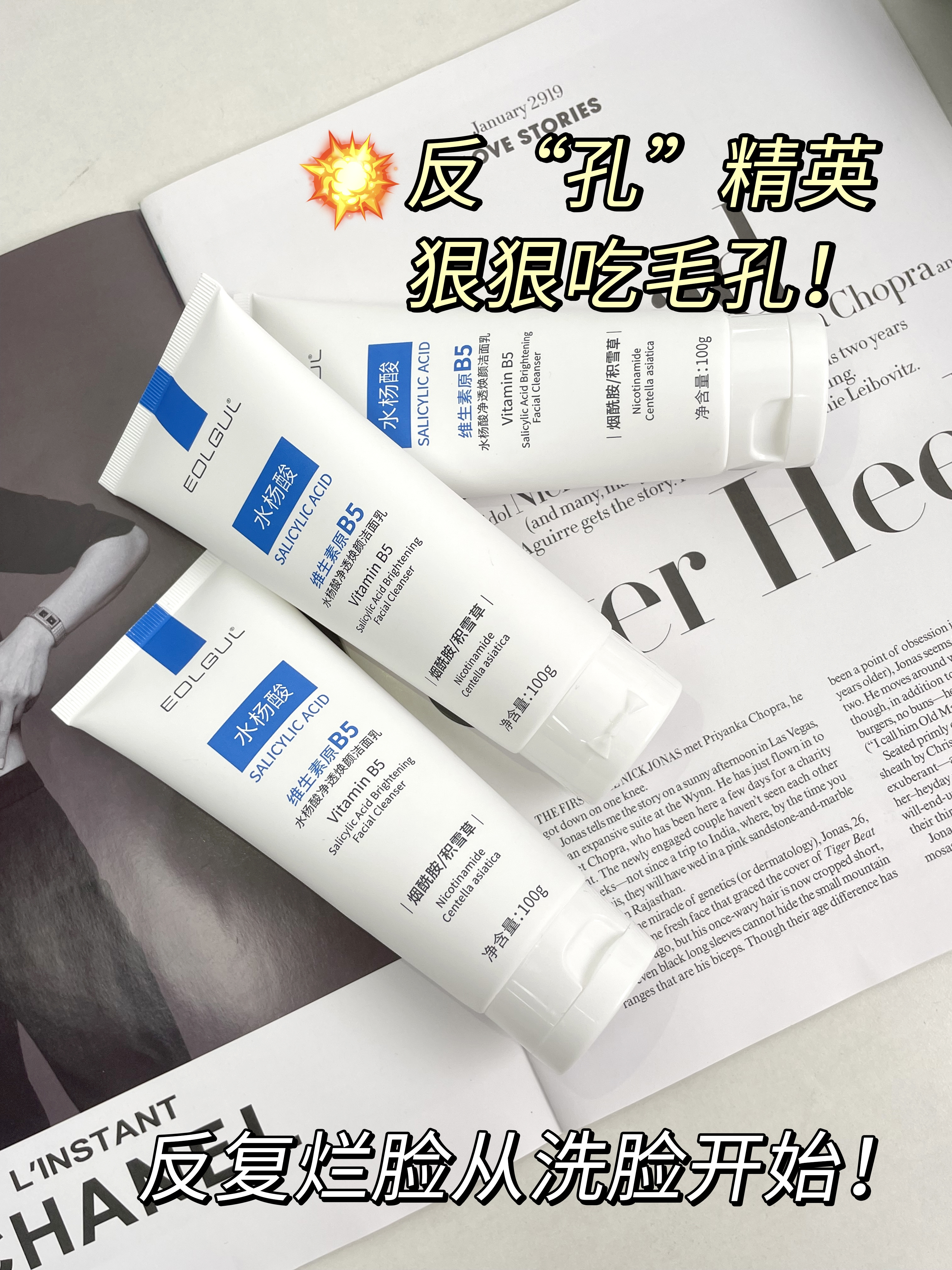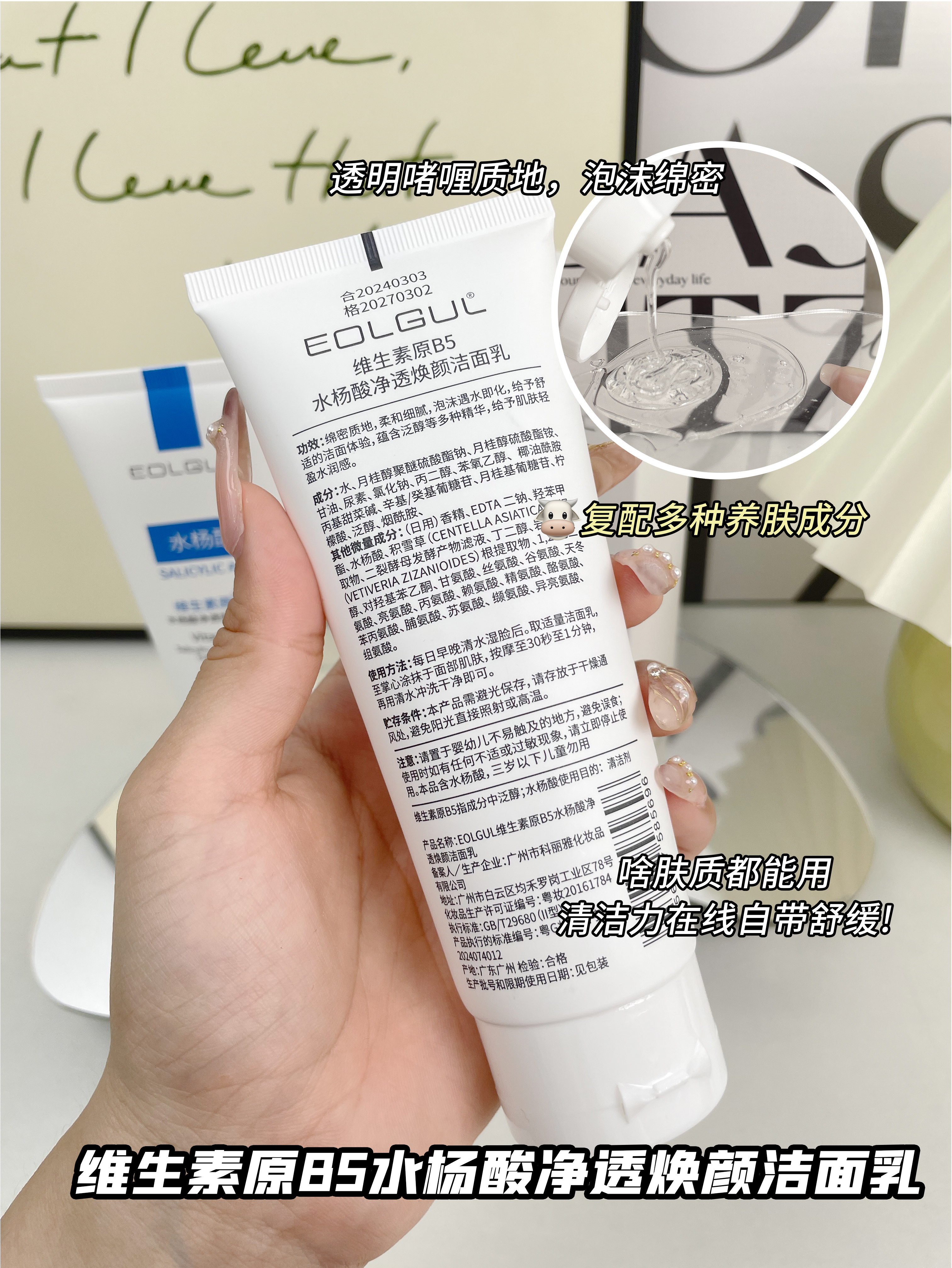 [小滋心选]【活动价¥35.9/3支】EOLGUL维生素原B5水杨酸净透焕颜洁面乳100g