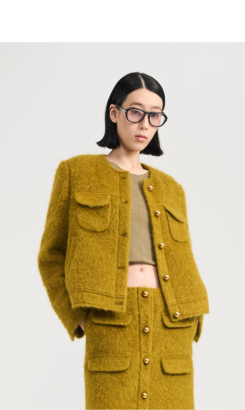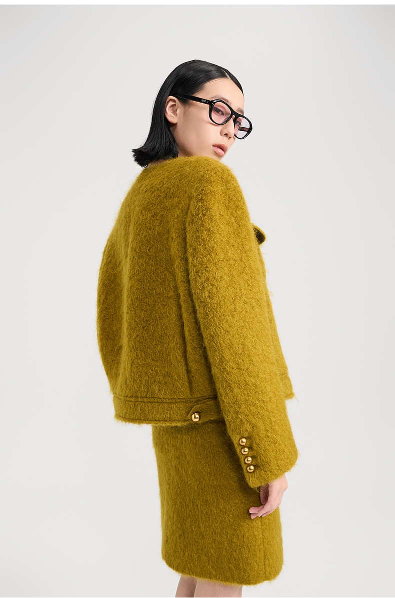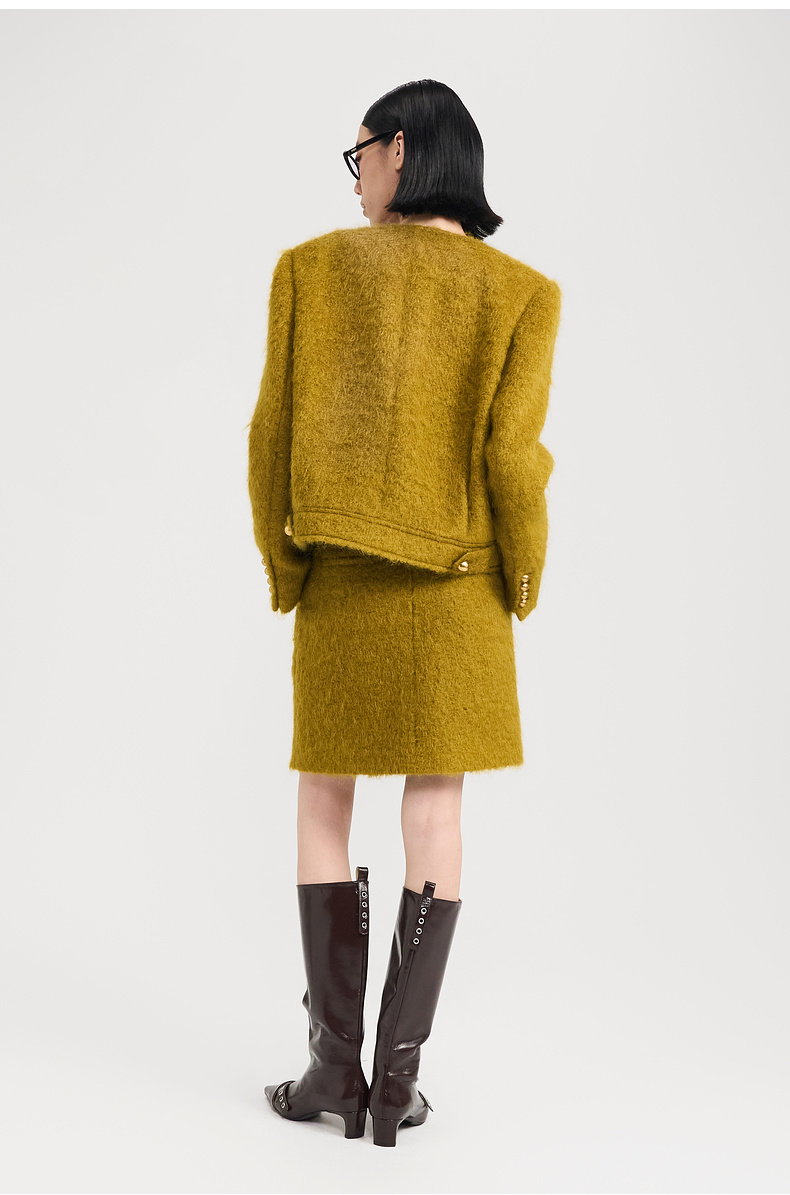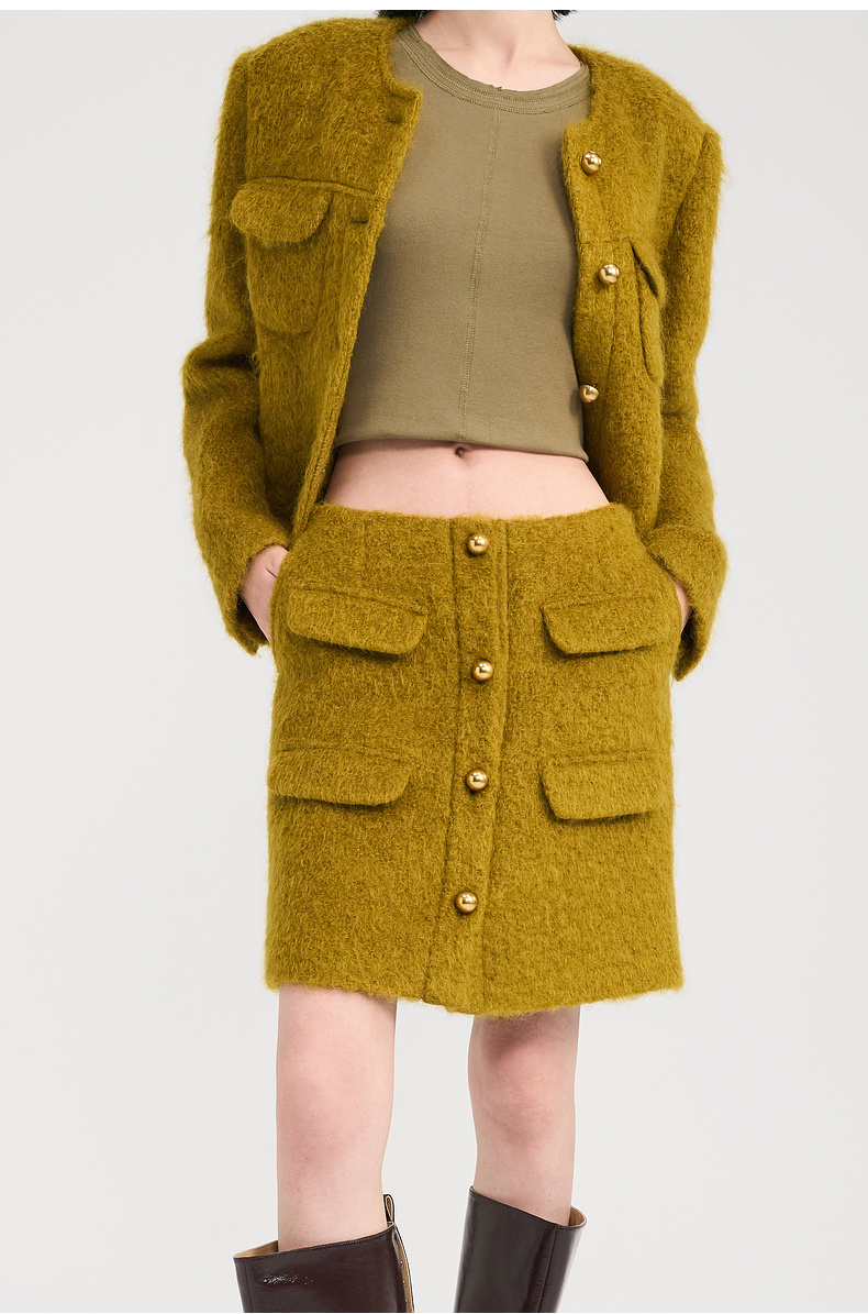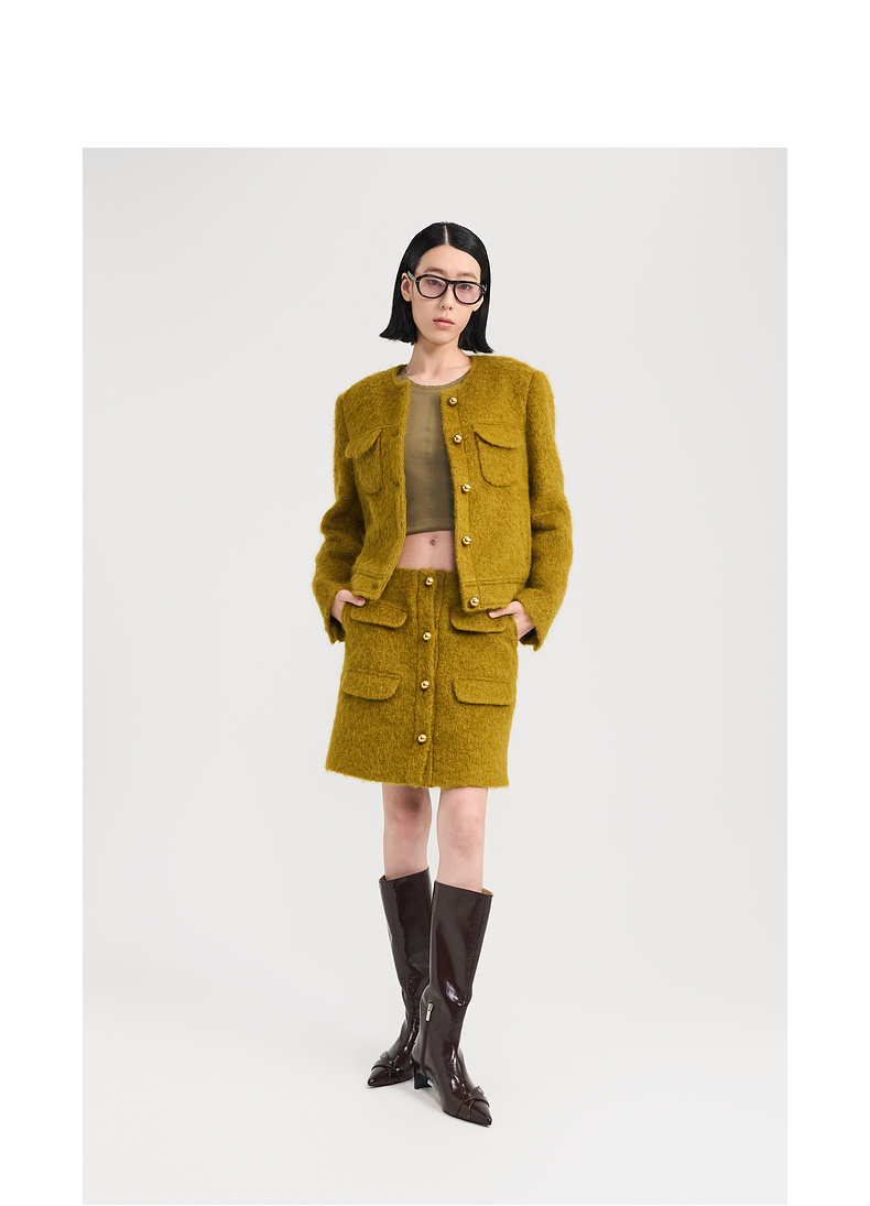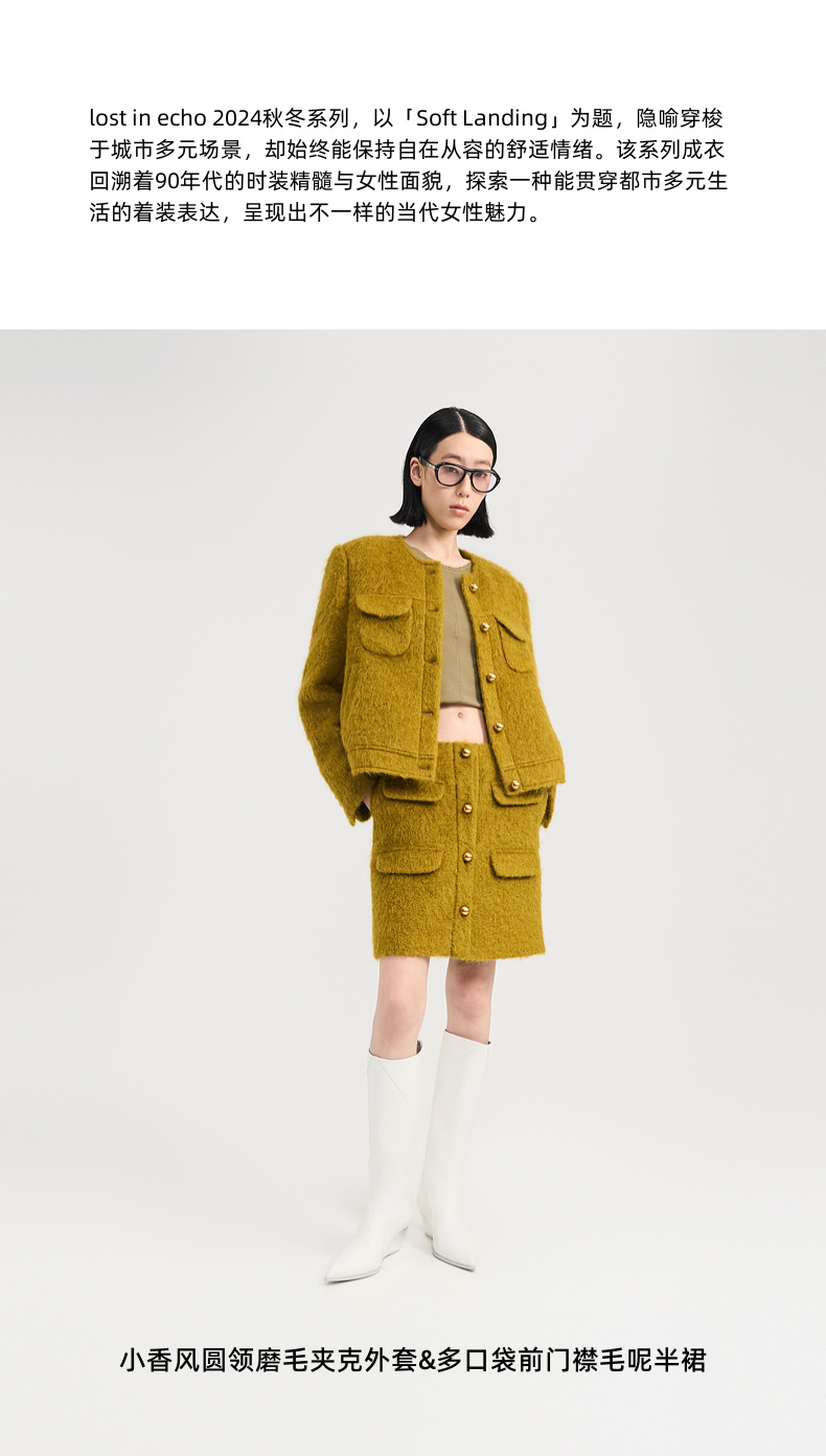 lost in echo2024冬季新款小香风圆领夹克外套毛呢半身裙短裙套装