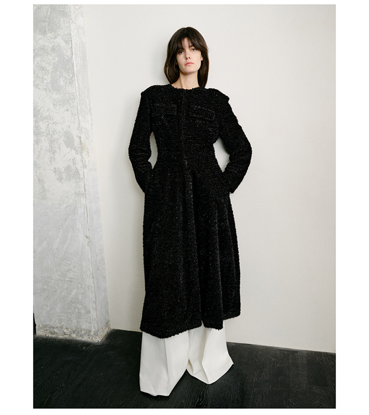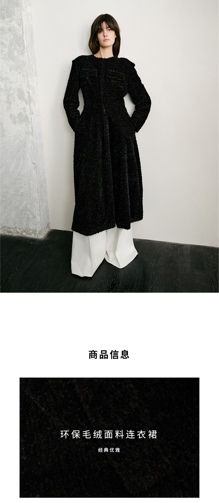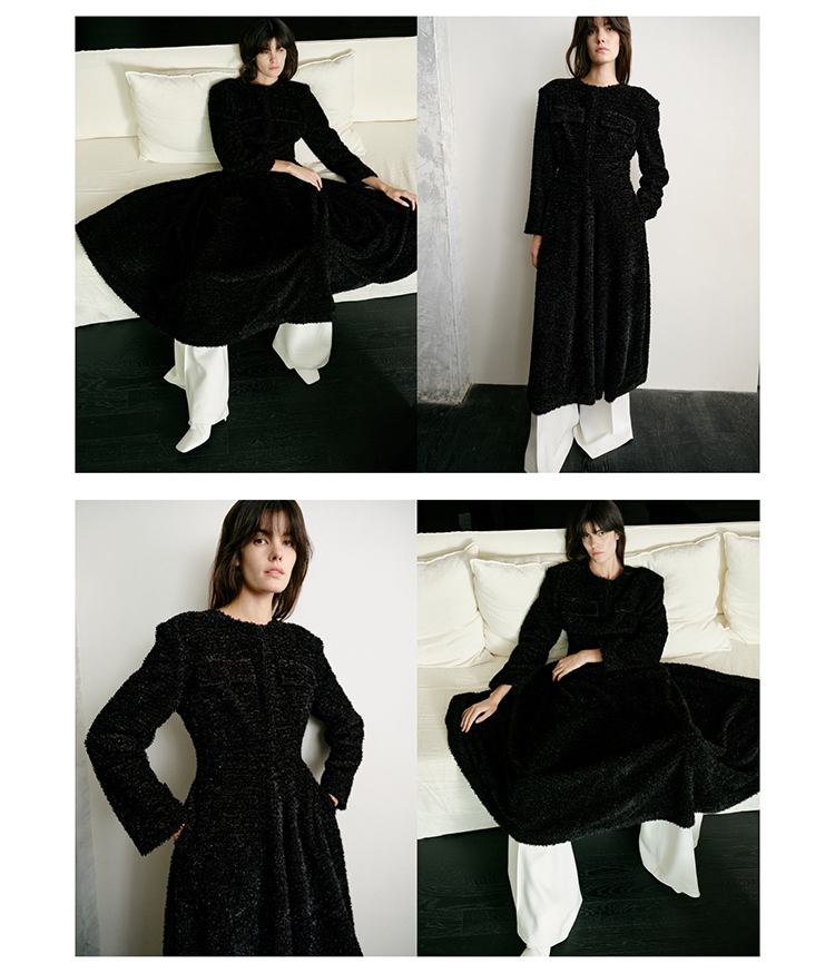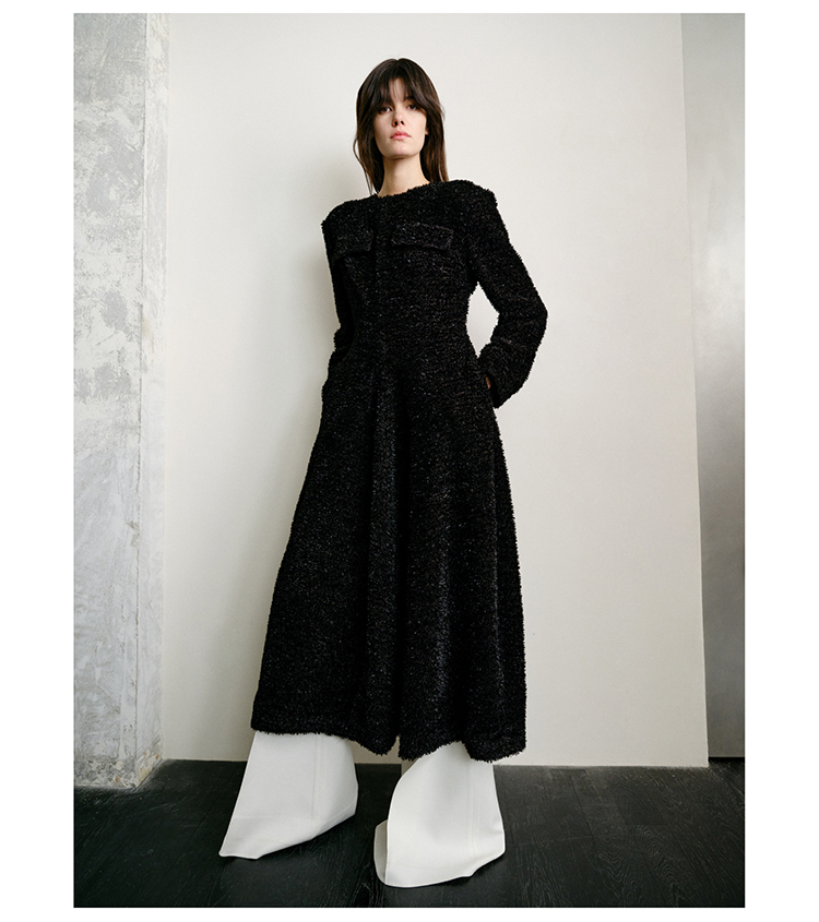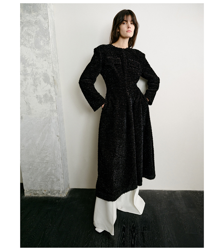 HIDEMI 节日系列极简设计感前后两穿纽扣式宽肩收腰长款多穿式连衣裙大衣外套