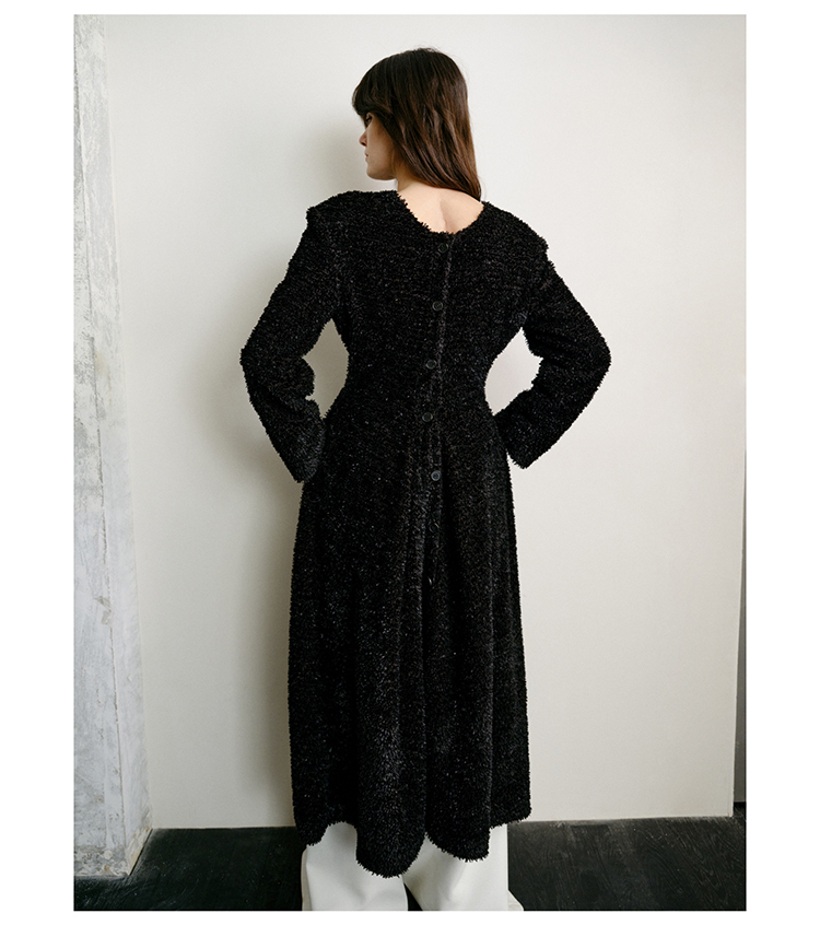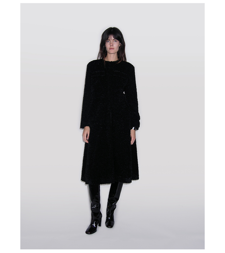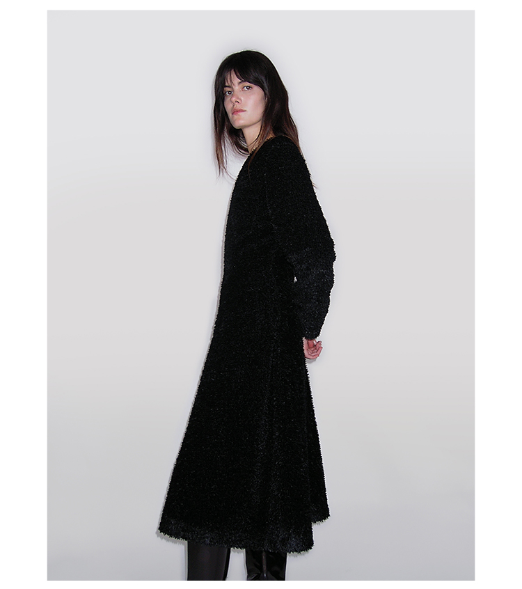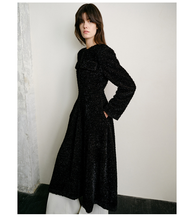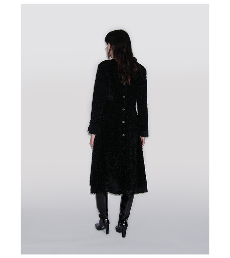 HIDEMI 节日系列极简设计感前后两穿纽扣式宽肩收腰长款多穿式连衣裙大衣外套