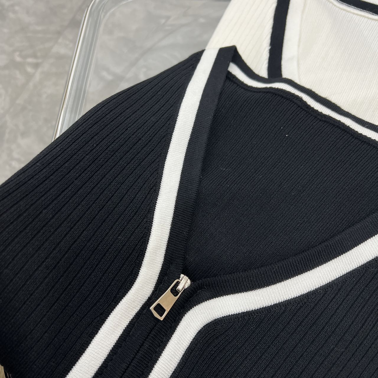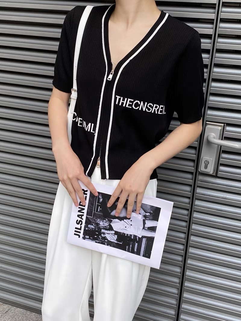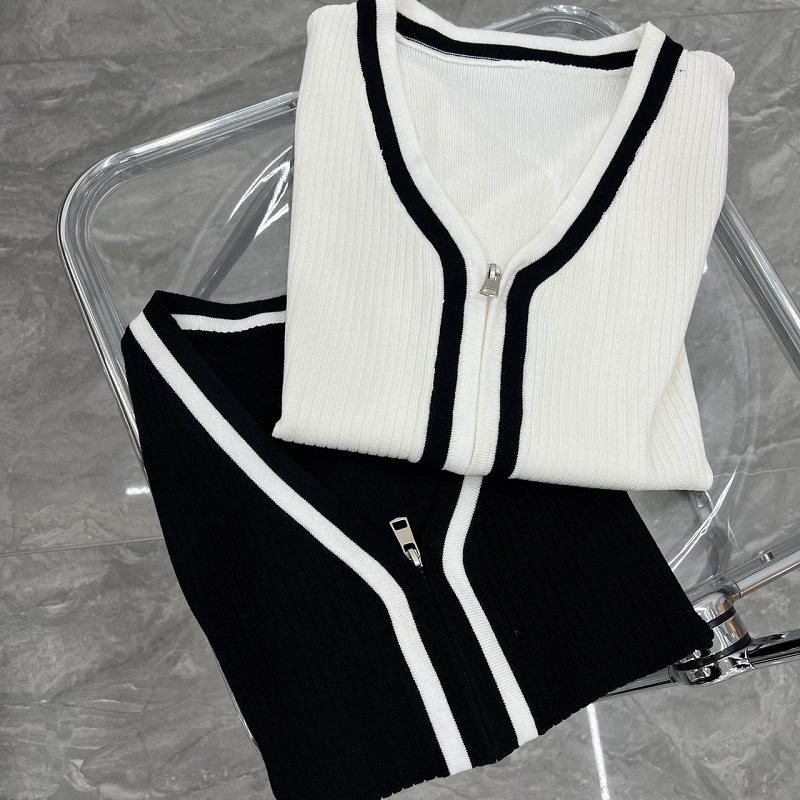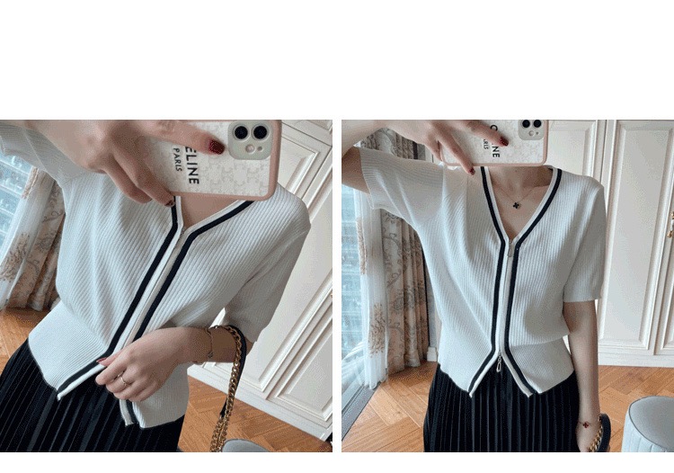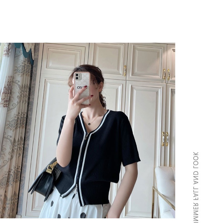 选用轻薄的针织料,柔软度和透气性都敲击好,V领不挑人随意搭配,就特别青春活力!门襟拼色上,经典的黑白不过时,又透露着高级的味道!