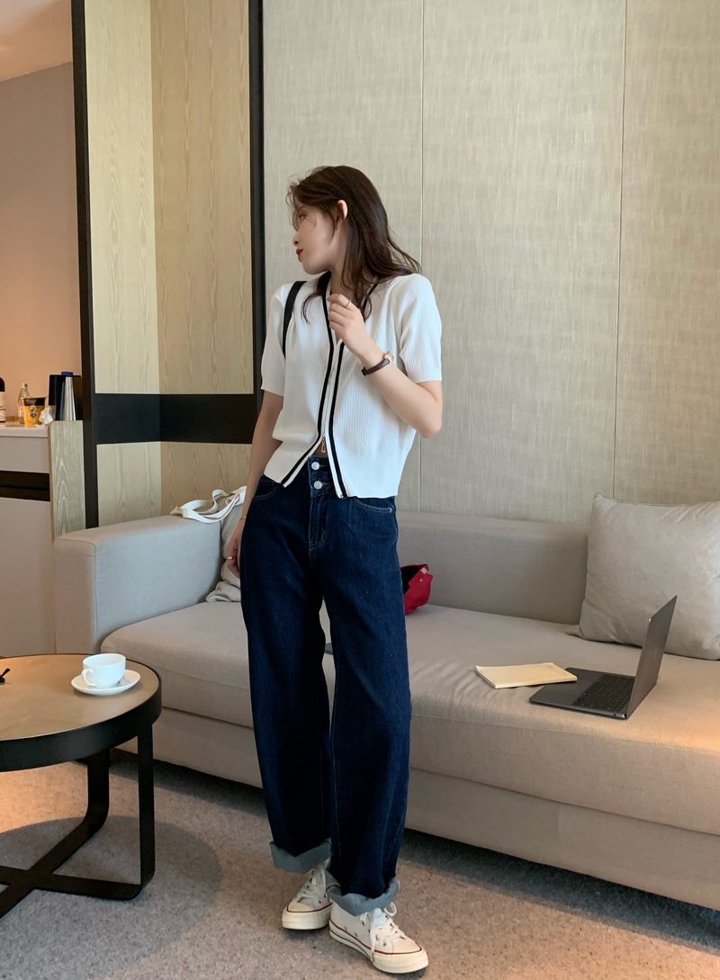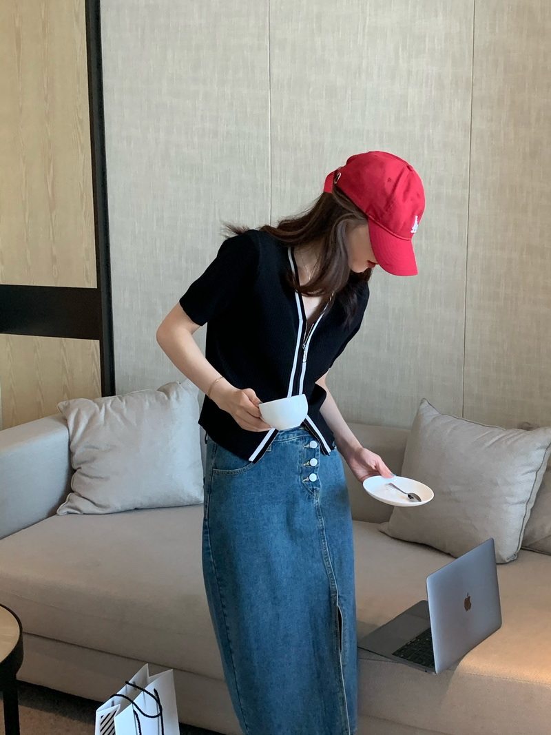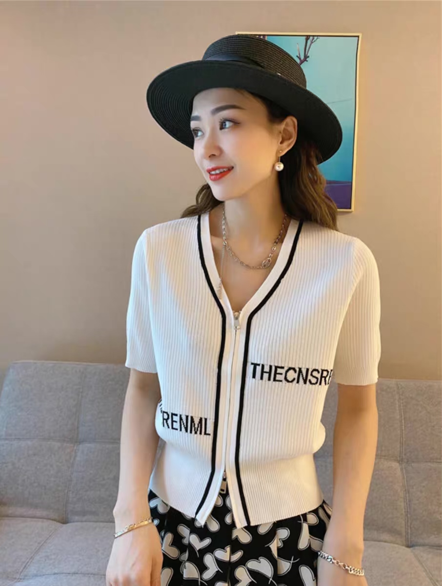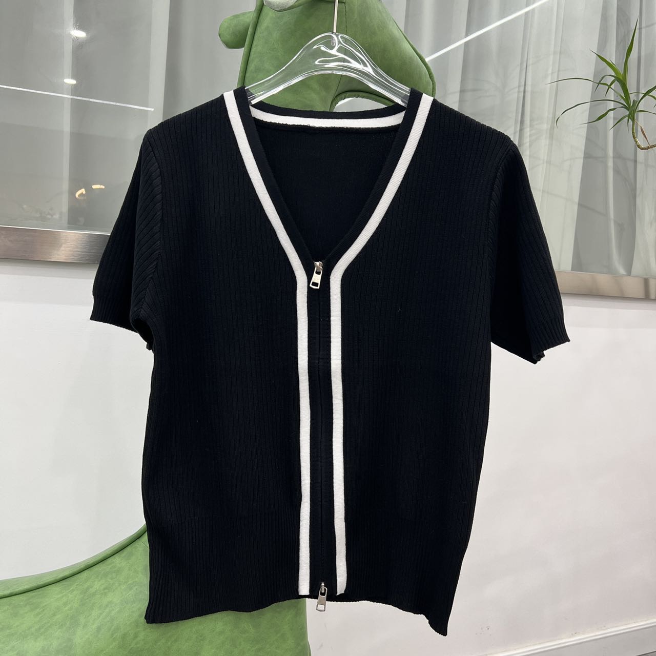选用轻薄的针织料,柔软度和透气性都敲击好,V领不挑人随意搭配,就特别青春活力!门襟拼色上,经典的黑白不过时,又透露着高级的味道!