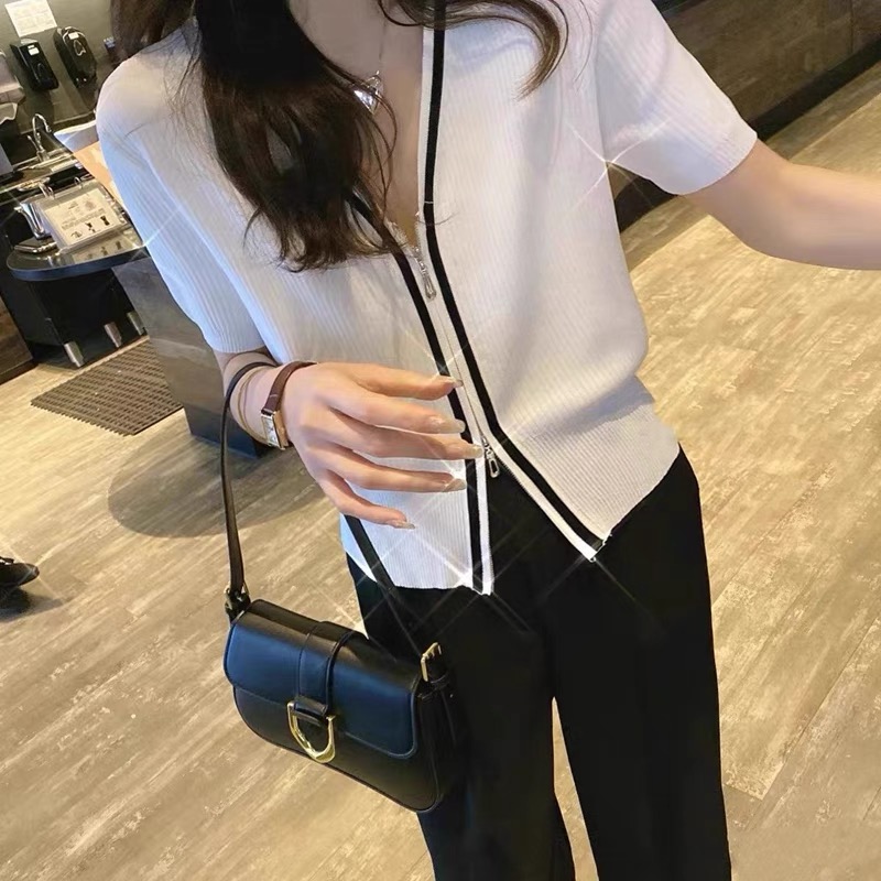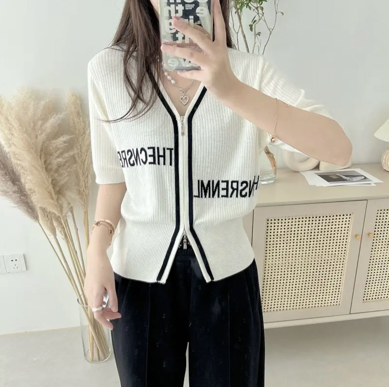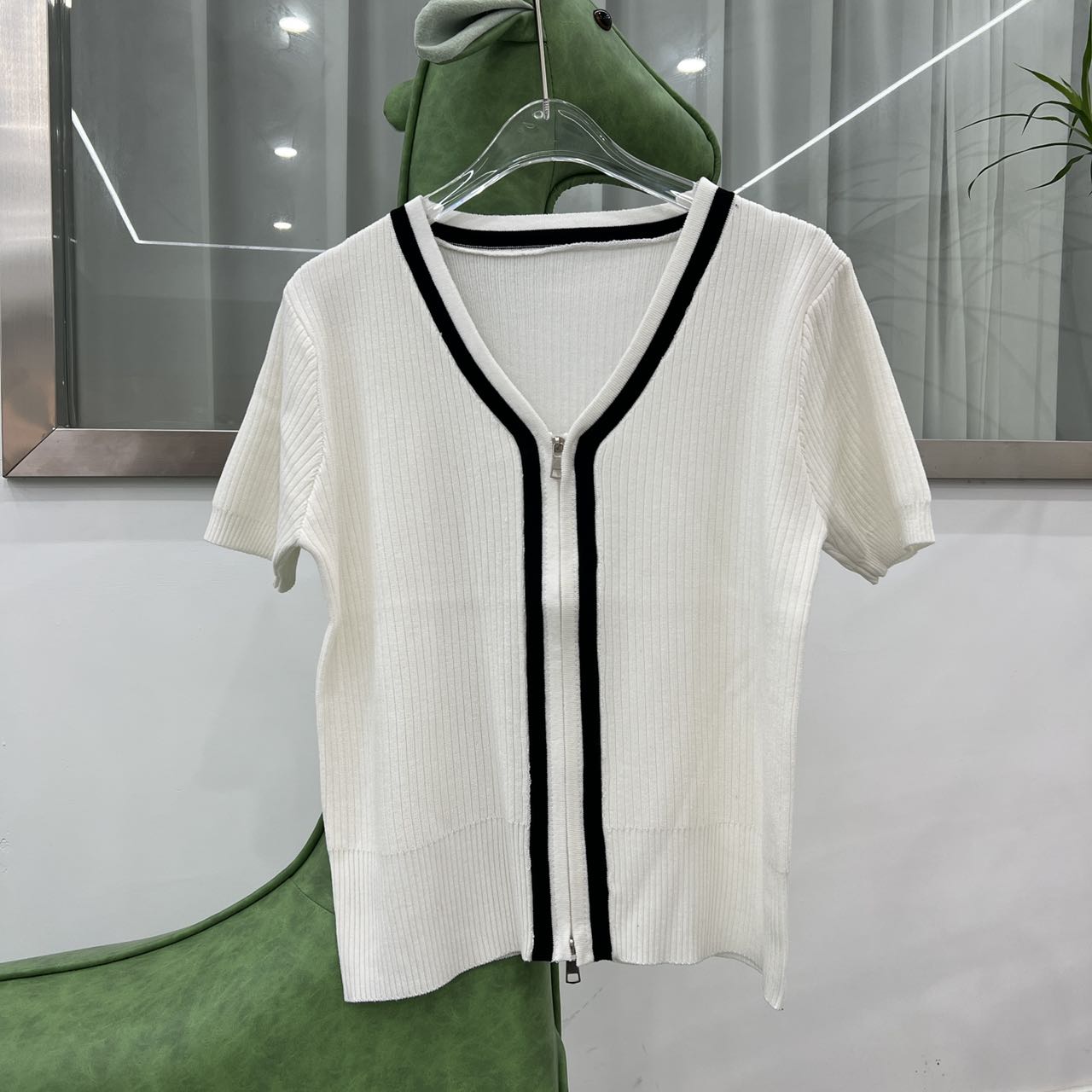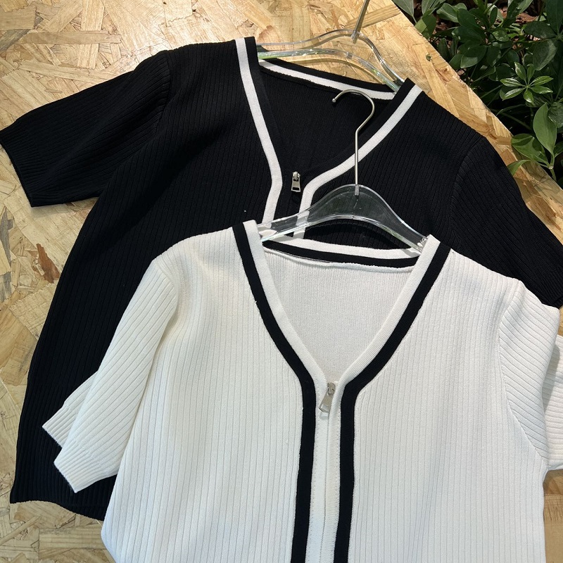 【品名】岚可可V领撞色双头拉链冰丝短袖