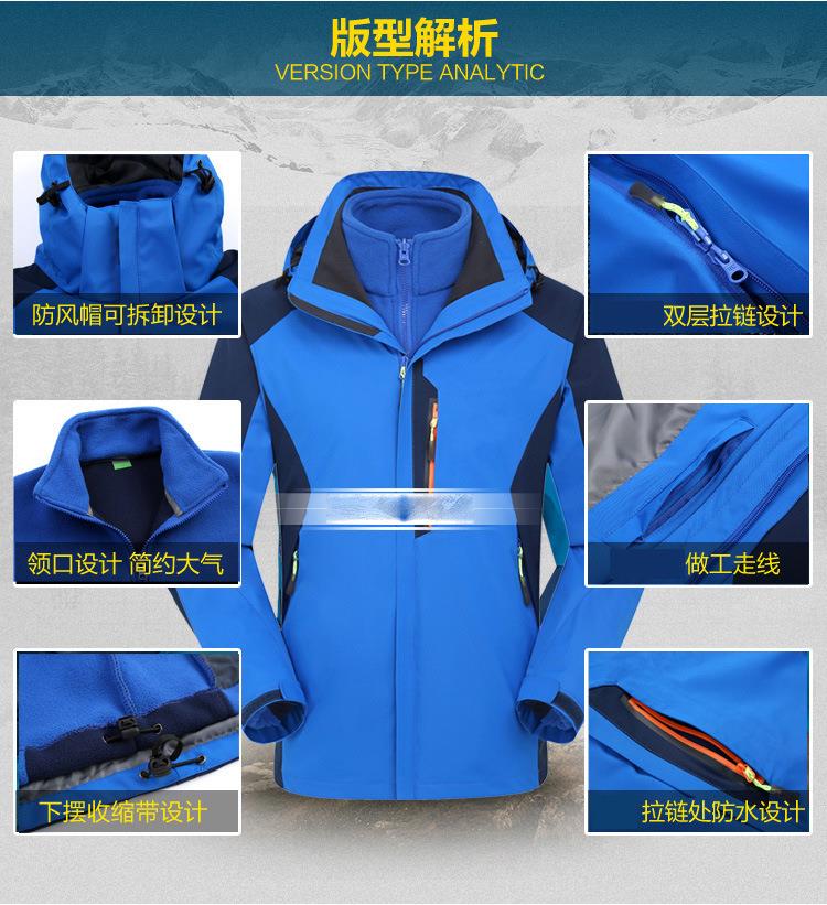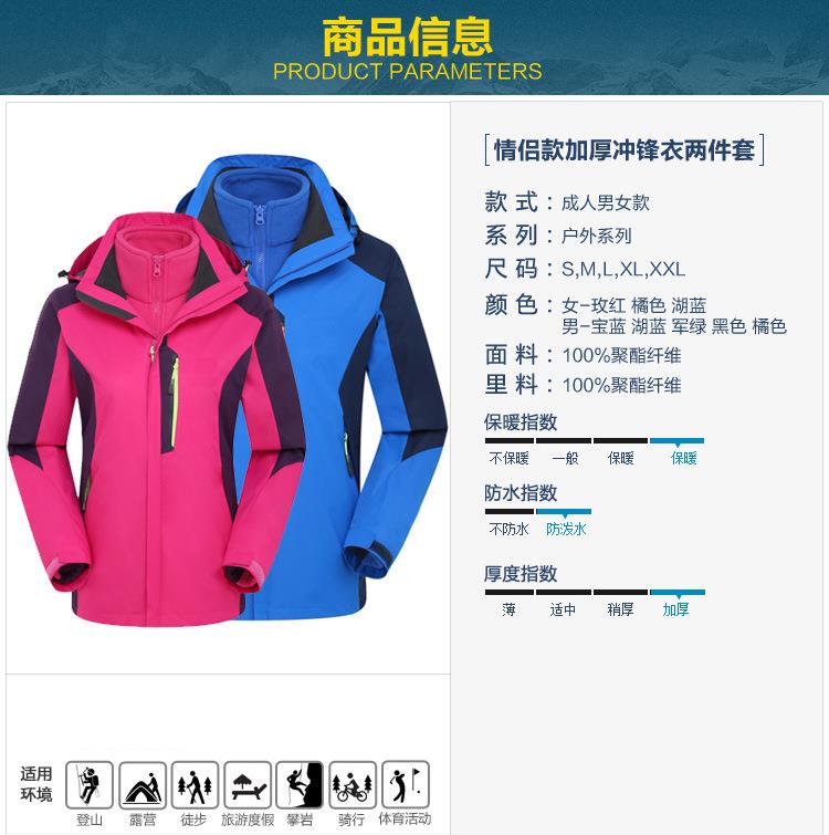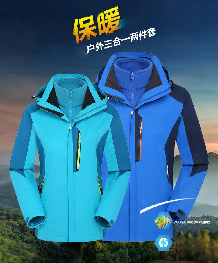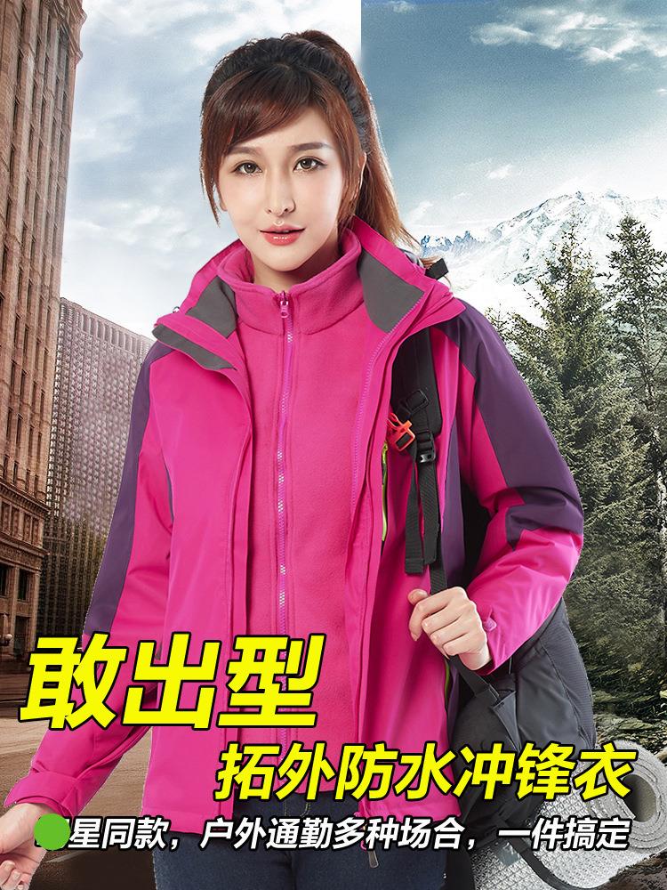 冬季新款户外冲锋衣男女士两件套可拆卸抓绒衣防风防水登山服