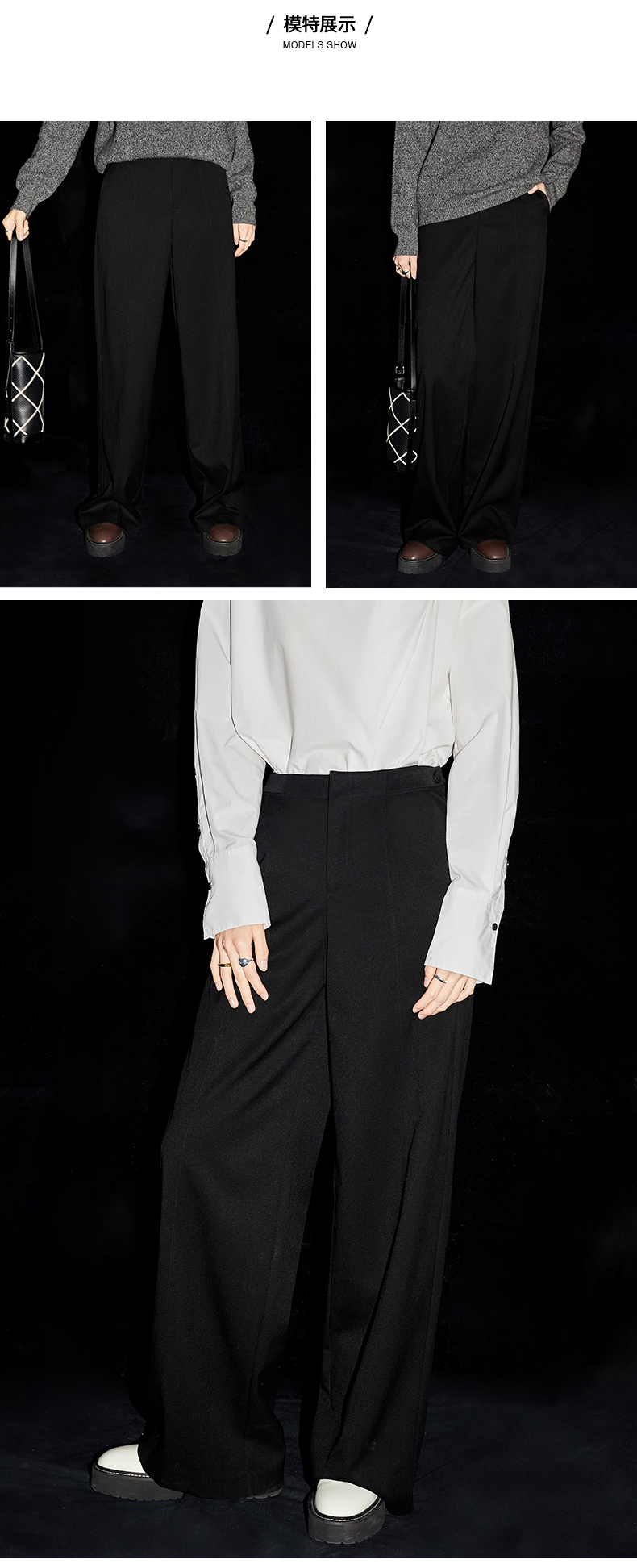 HIDEMI 简约腰部纽扣可调节设计感宽松长裤