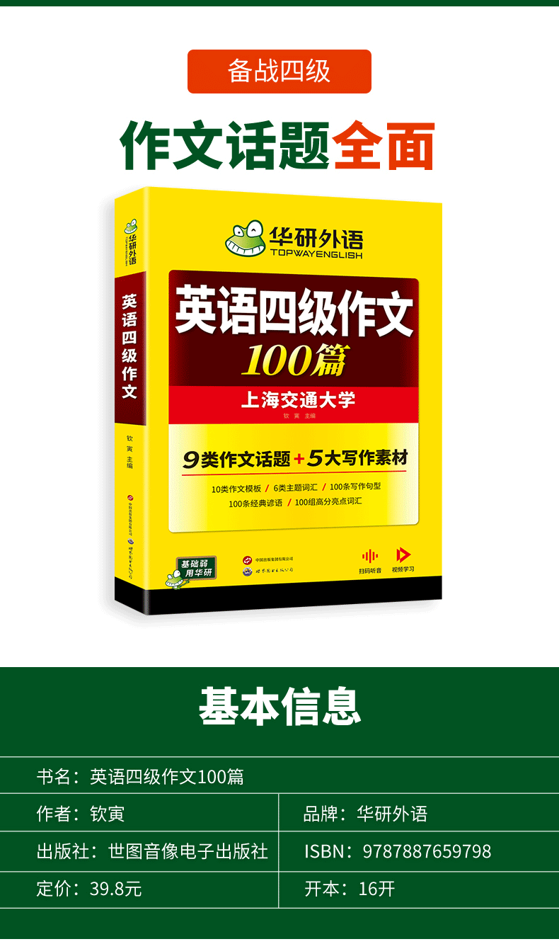 4.英语四级作文话题全面,范文易于模仿背诵;