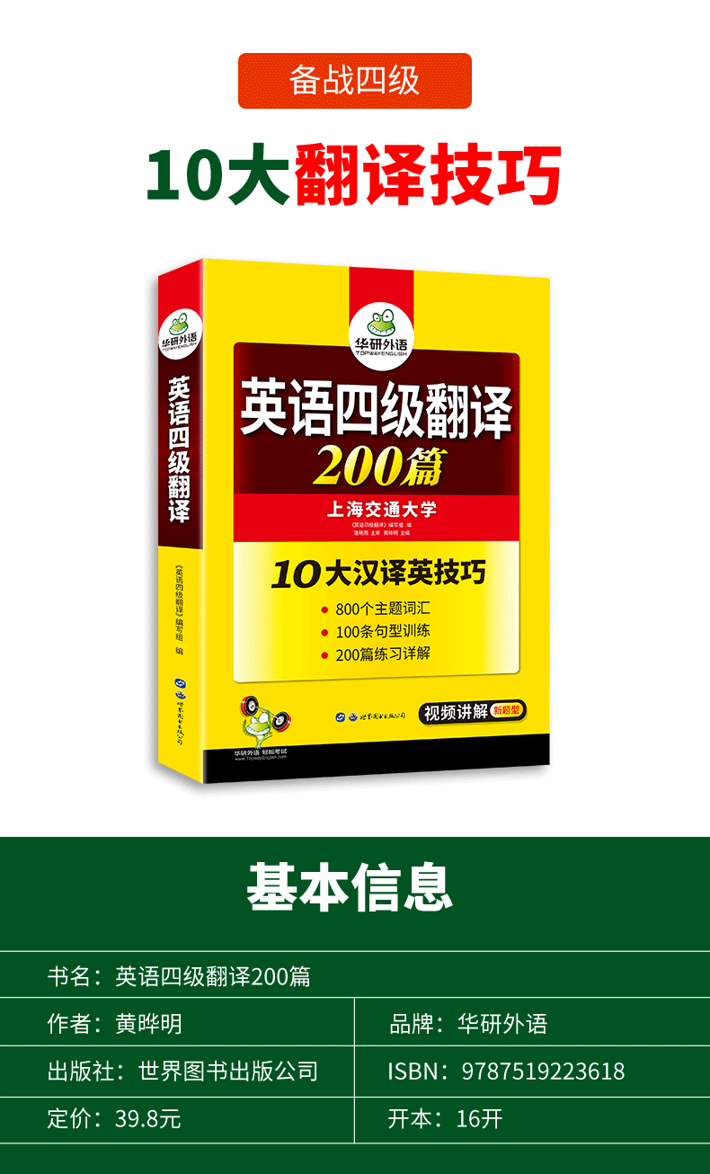 4.大开本,方便阅读与训练英语四级翻译试题;