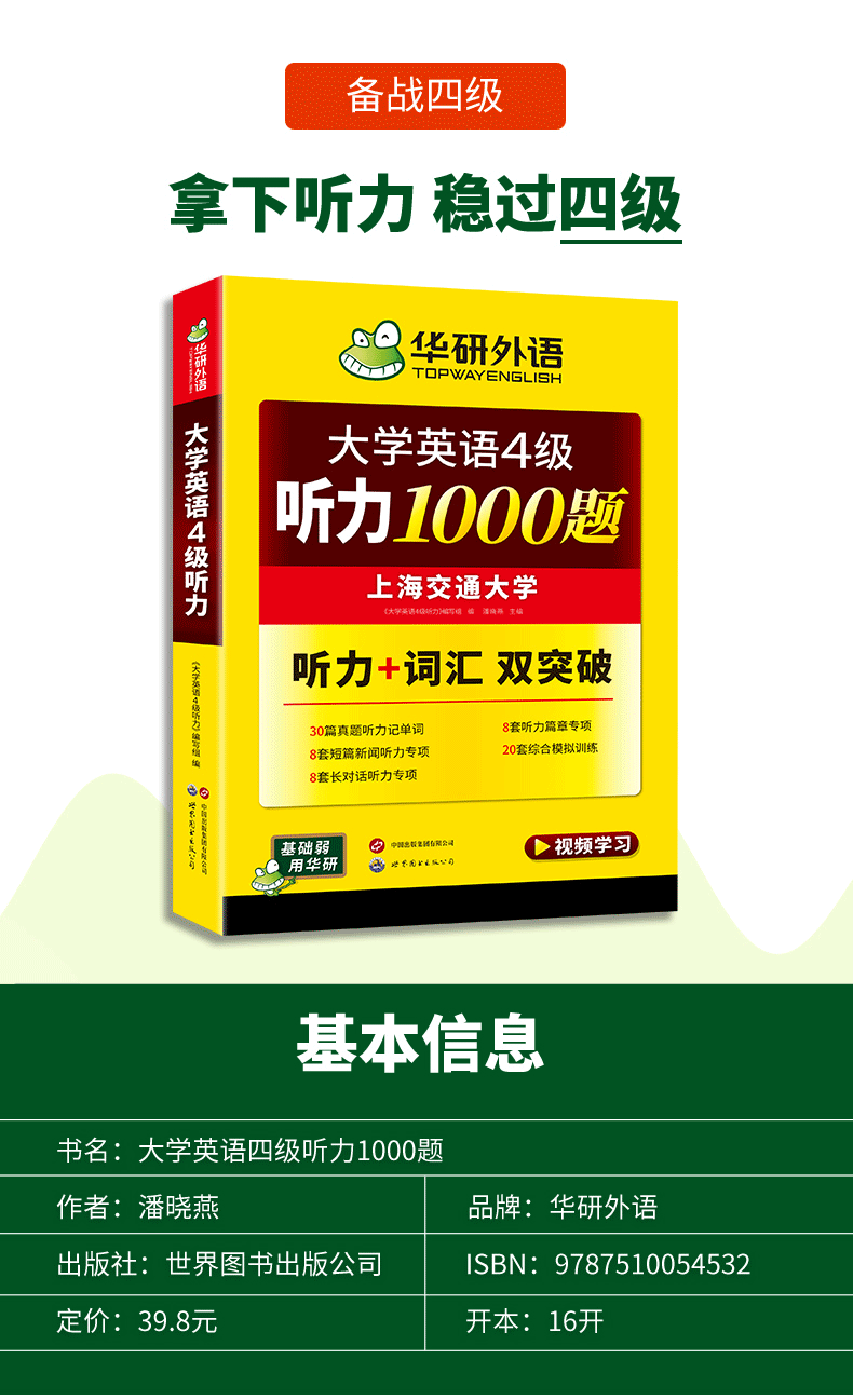 2.由英语四、六级命题与阅卷中心——上海交通大学名师主编,命中率高;