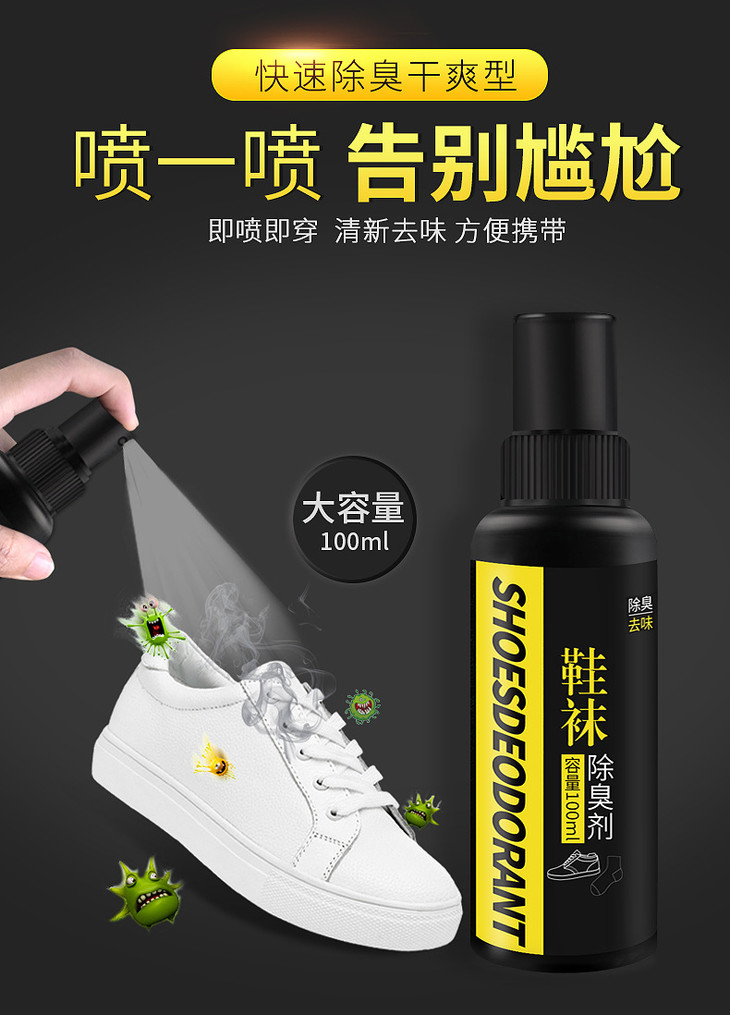 【快速除臭】鞋袜除臭剂 喷一喷 告别尴尬 鞋子脚汗喷雾除鞋臭去脚臭粉喷剂脚臭鞋臭克星 100ml 方便携带