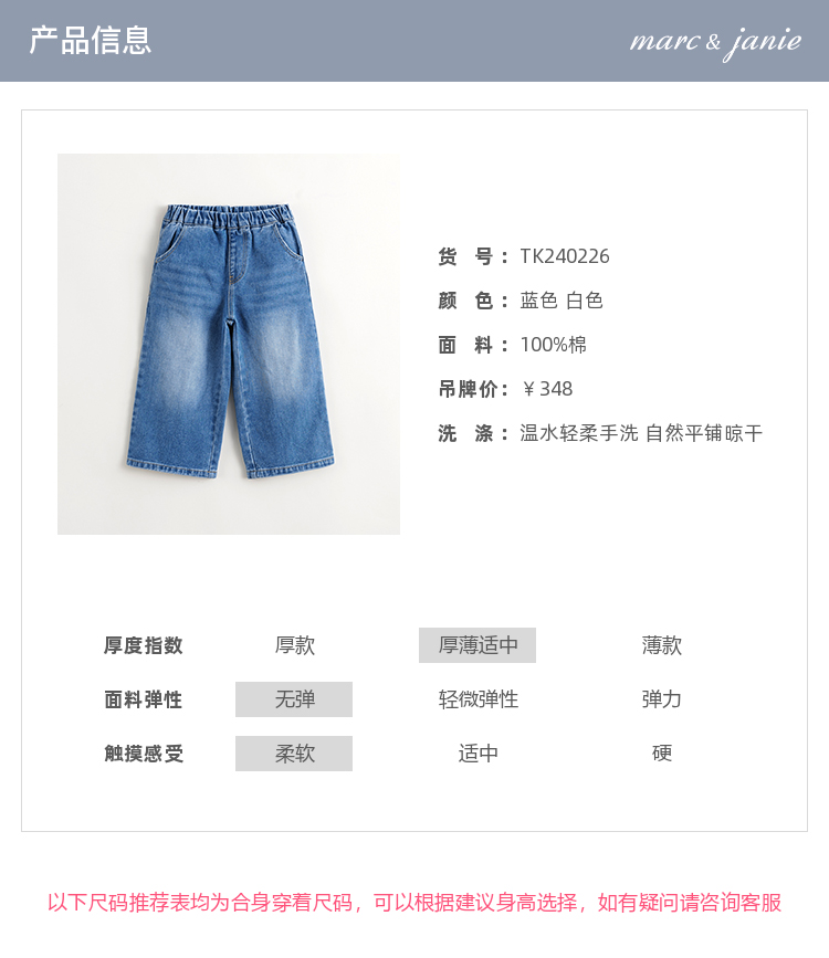 马克珍妮女童时尚百搭直筒牛仔裤儿童纯棉裤子2024春装新款240226