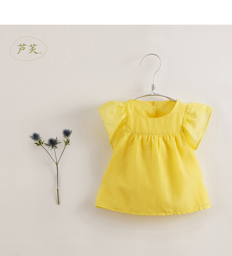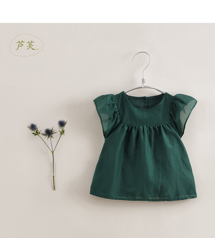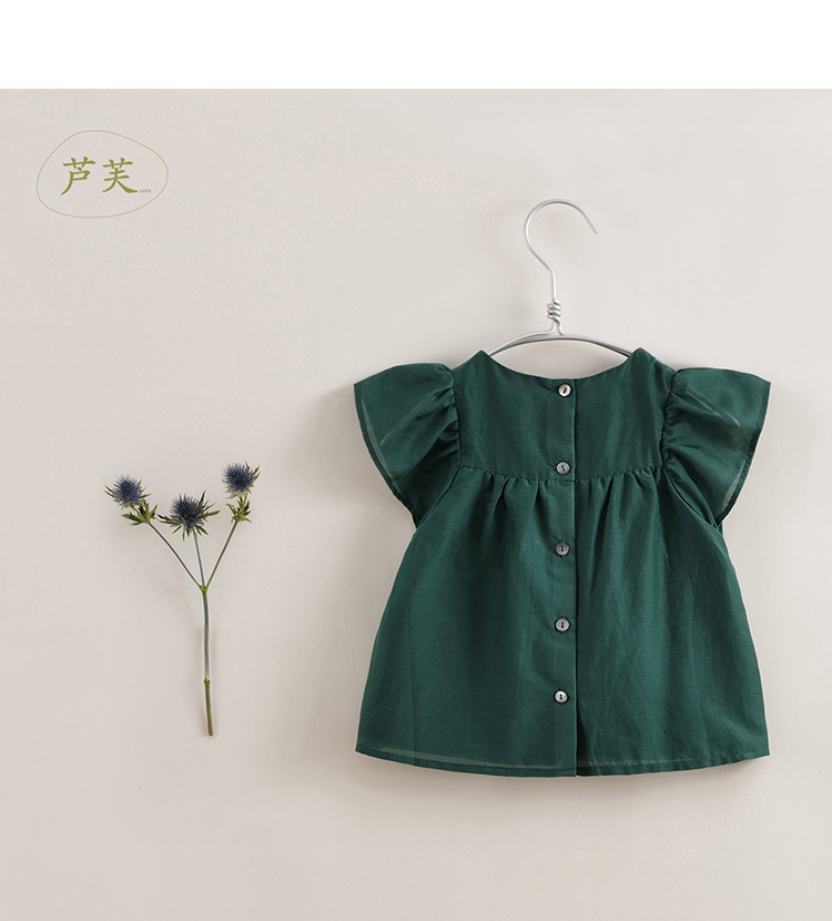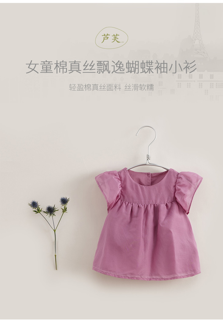 【马克珍妮 芦芙】夏装新款 女童棉真丝飘逸蝴蝶袖小衫230732
