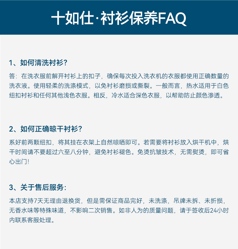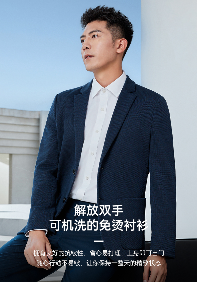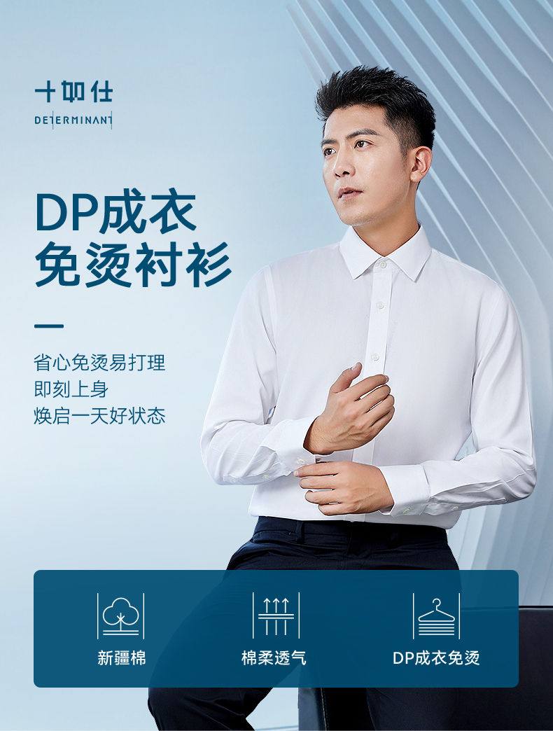 十如仕小方领牛津纺免烫长袖衬衫-201-03