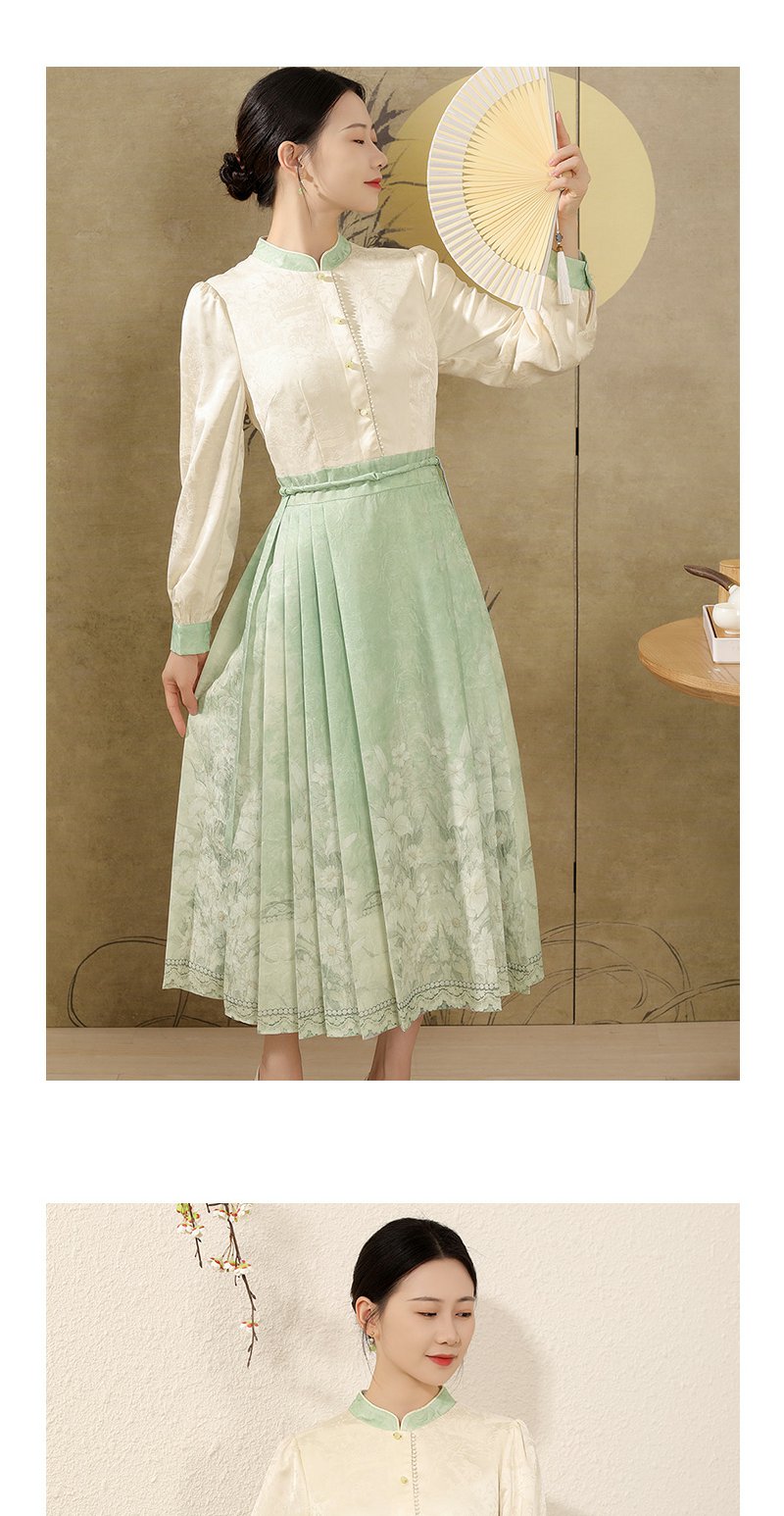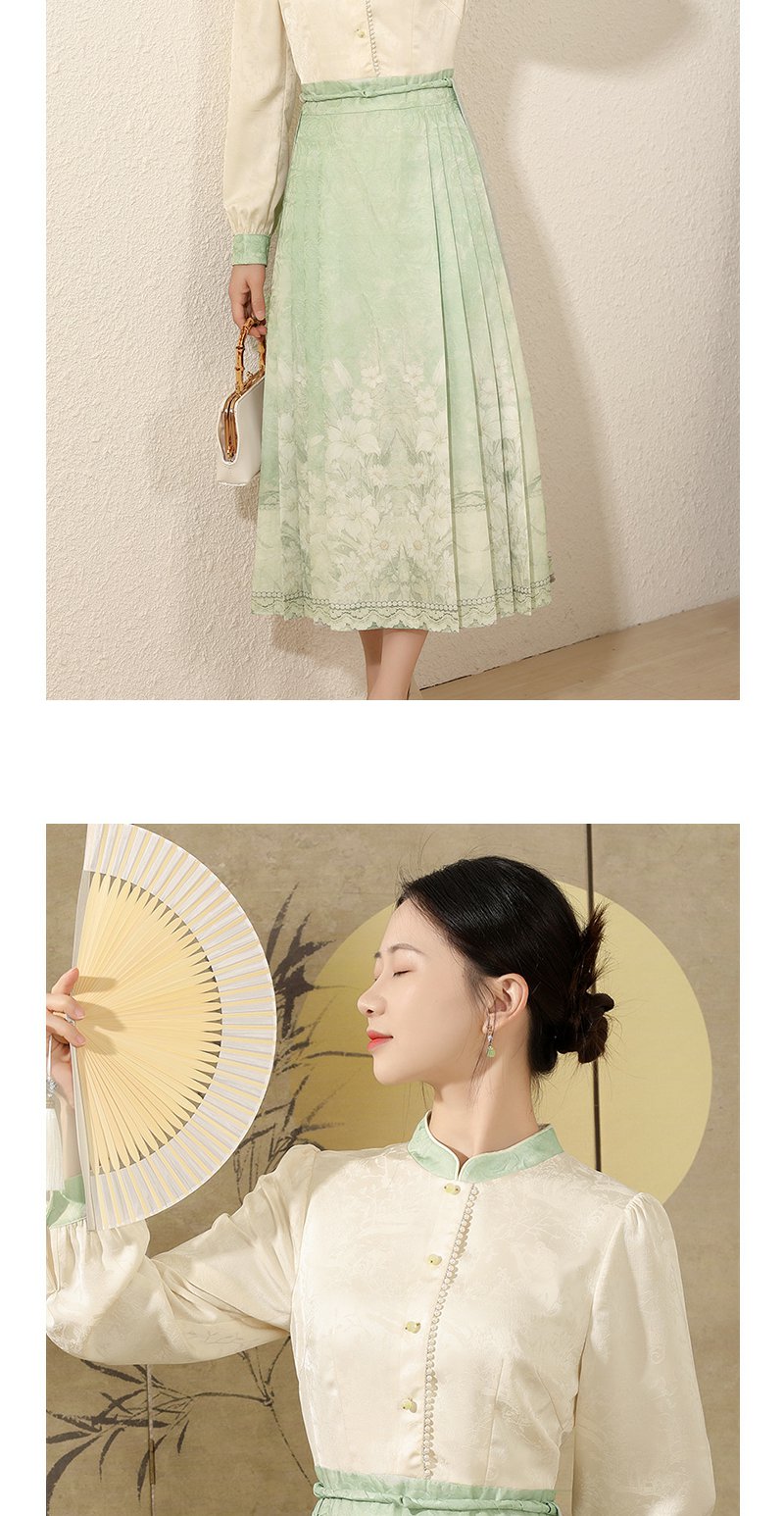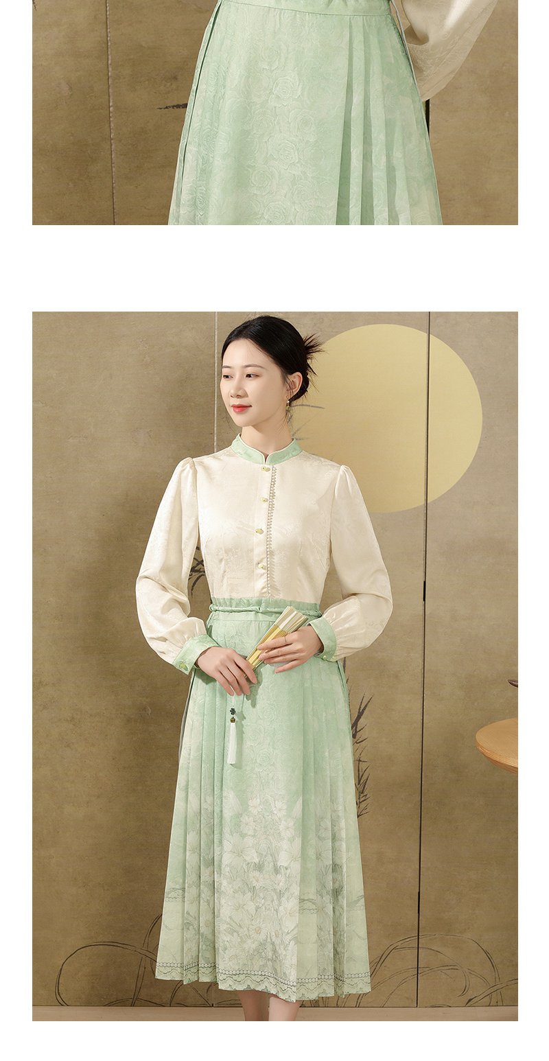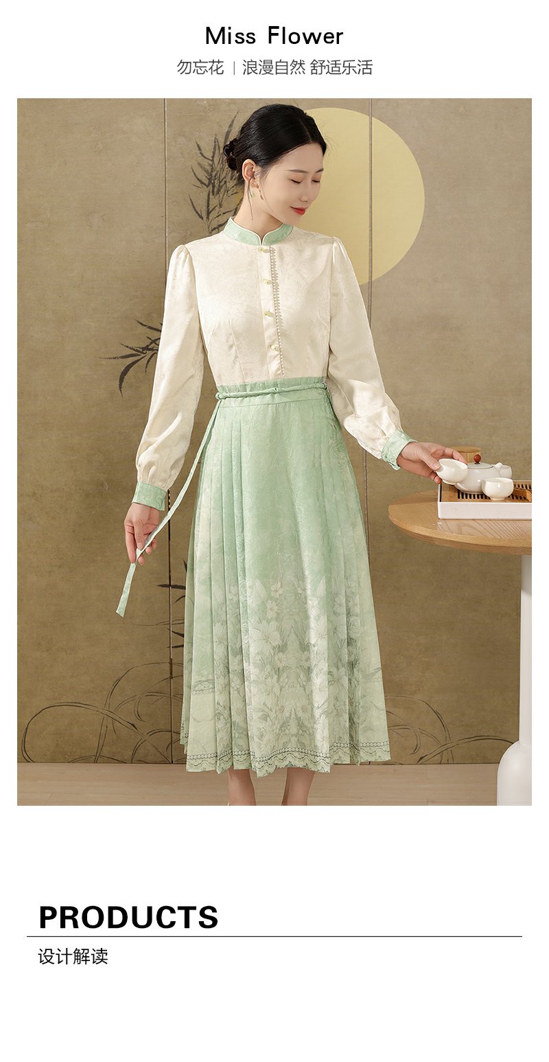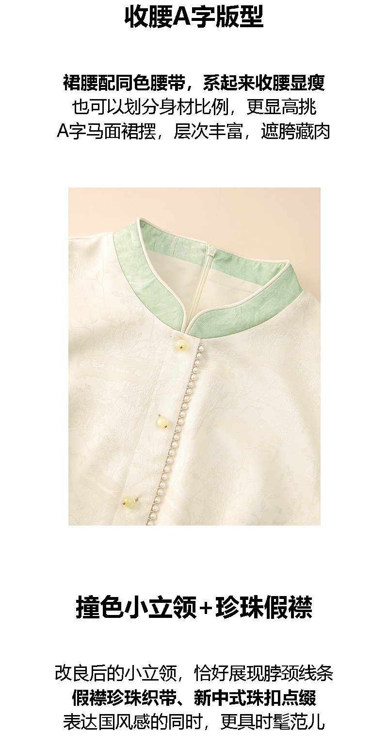 绿色新中式马面裙春季国风连衣裙绝美小裙子