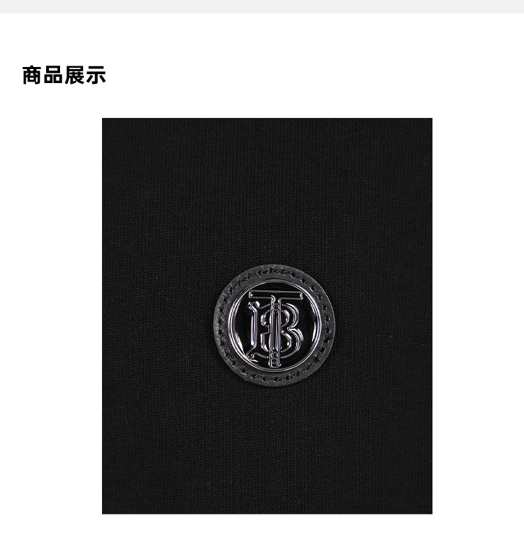 BURBERRY 博柏利 TB专属标识图案嵌花棉质运动衫 男士圆领长袖T恤 黑色 8041700 A1189