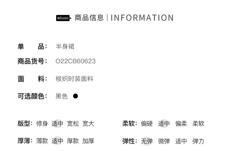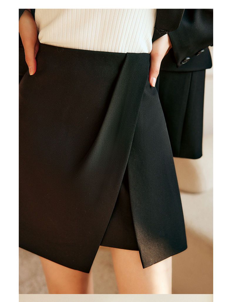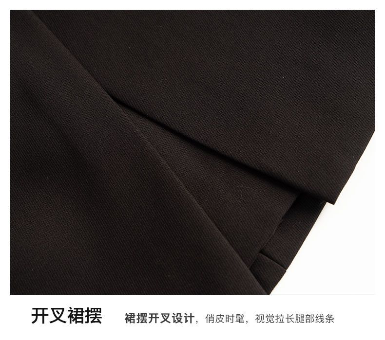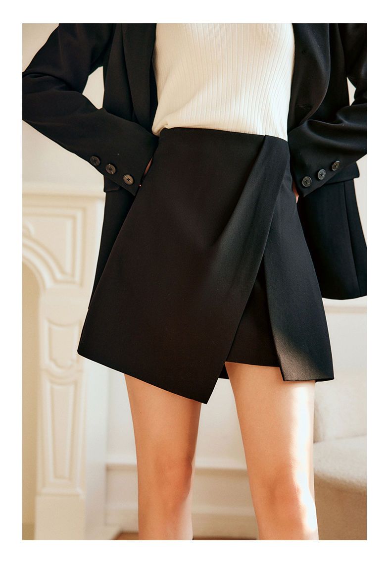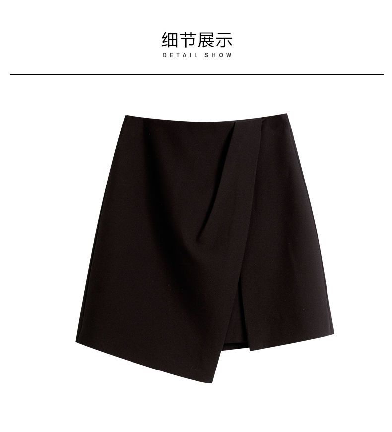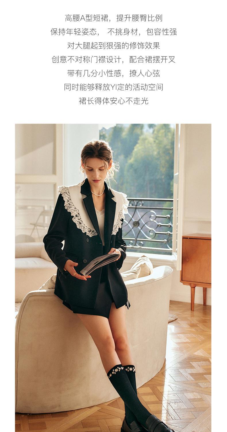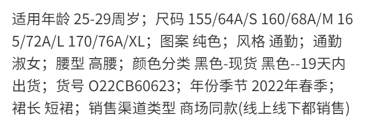 欧芮儿黑色半身裙女春季2022新款高腰显瘦时尚气质开叉短款a字裙