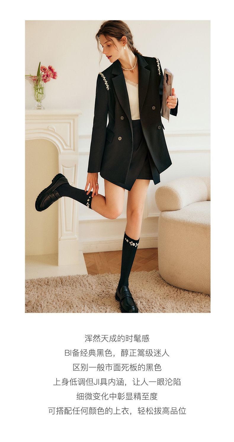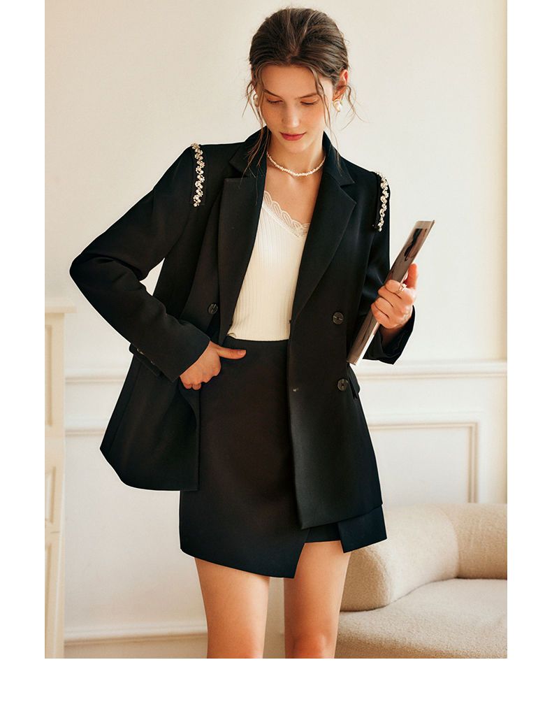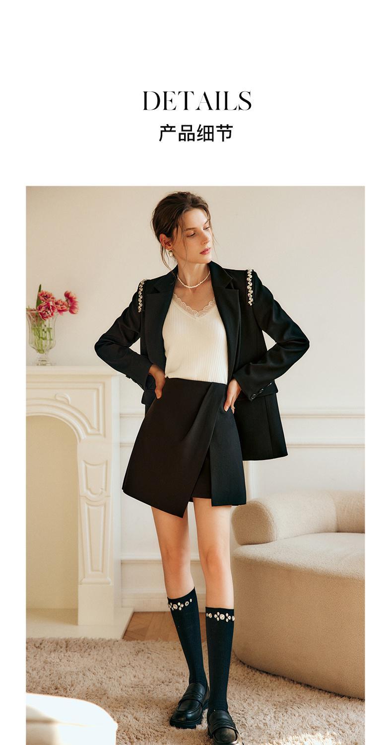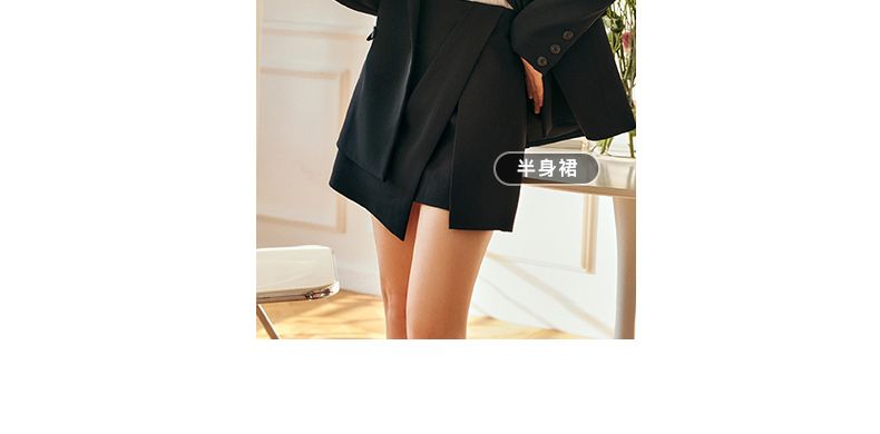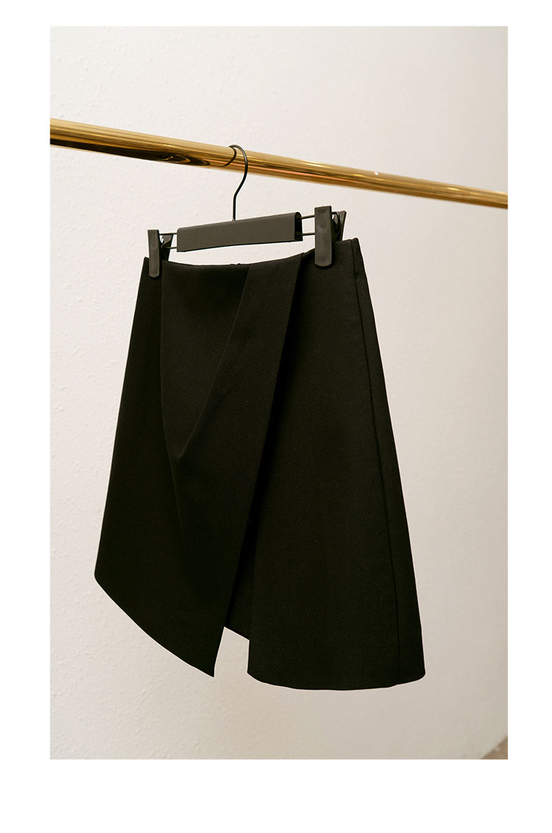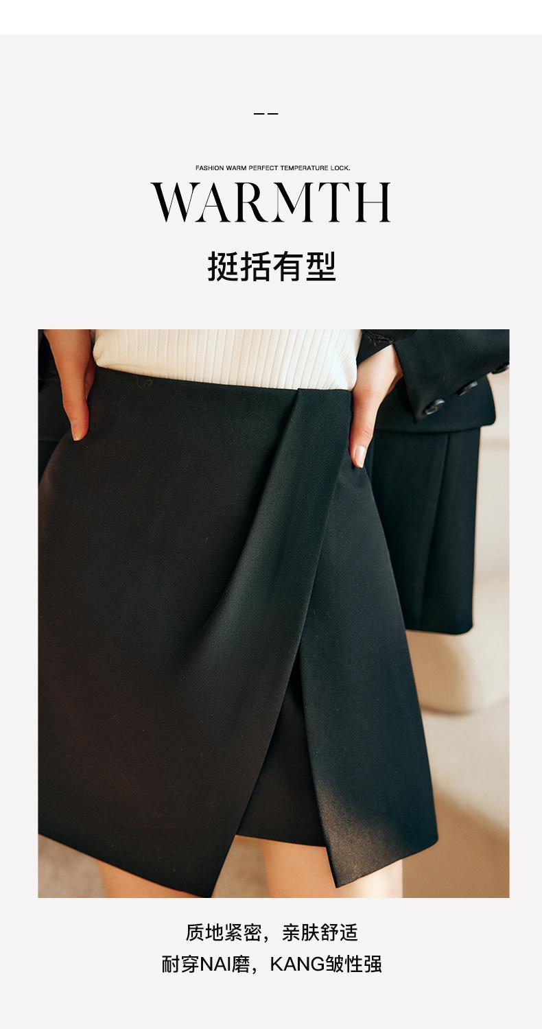 欧芮儿黑色半身裙女春季2022新款高腰显瘦时尚气质开叉短款a字裙