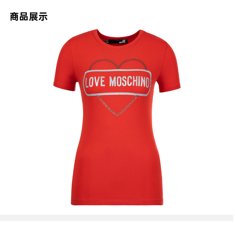 LOVE MOSCHINO 莫斯奇诺 女士短袖T恤 字母爱心图案 红色 W4F7 348E 2011 O91
