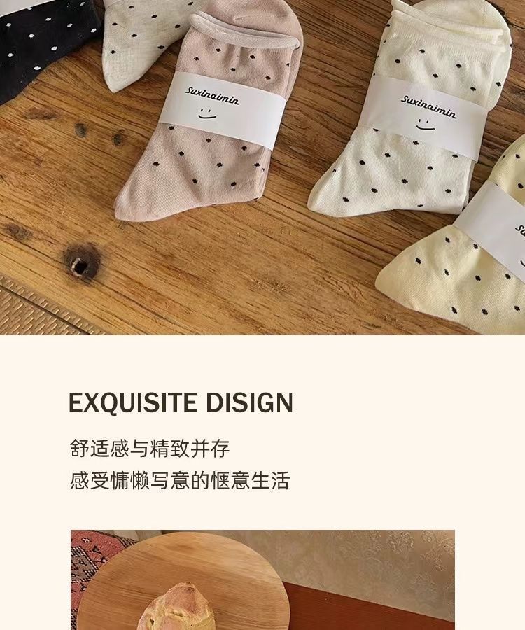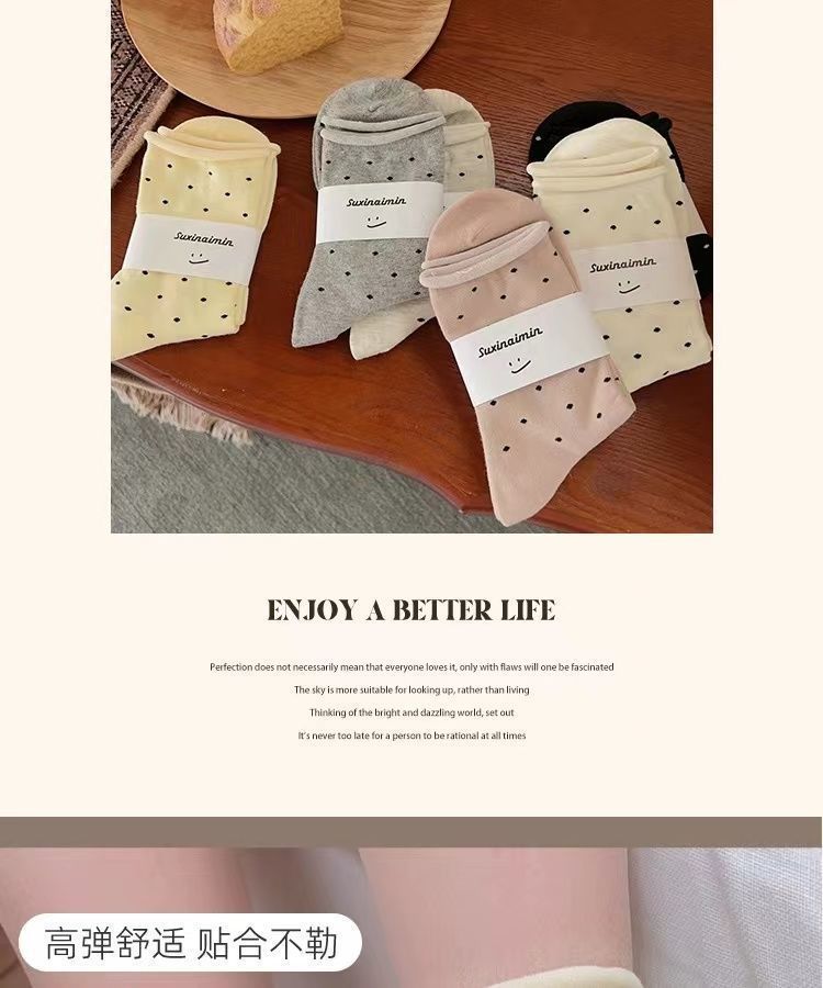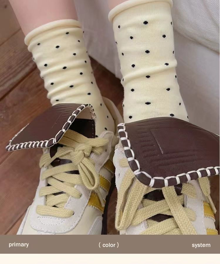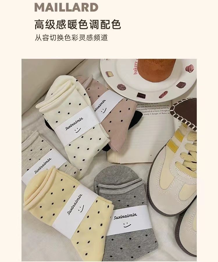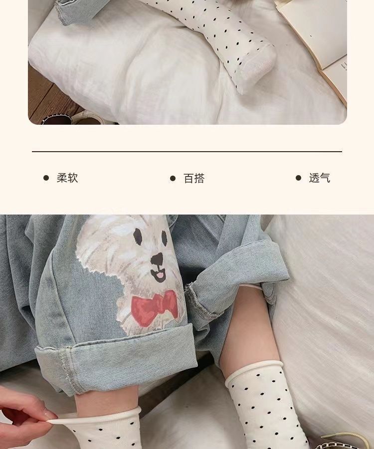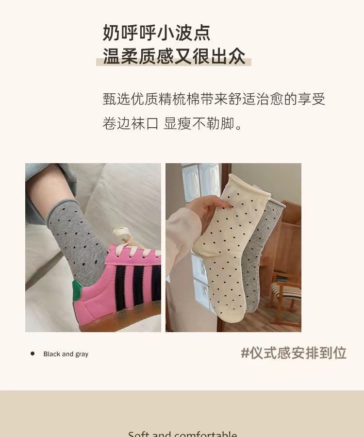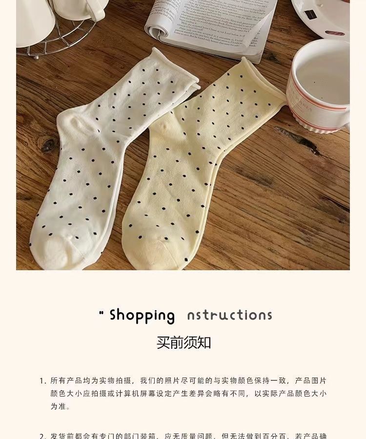 「19.9到手6双!纯色小波点袜」卷边圆点袜子女中筒袜 ins潮春秋日系jk堆堆袜学生春夏中筒袜配饰