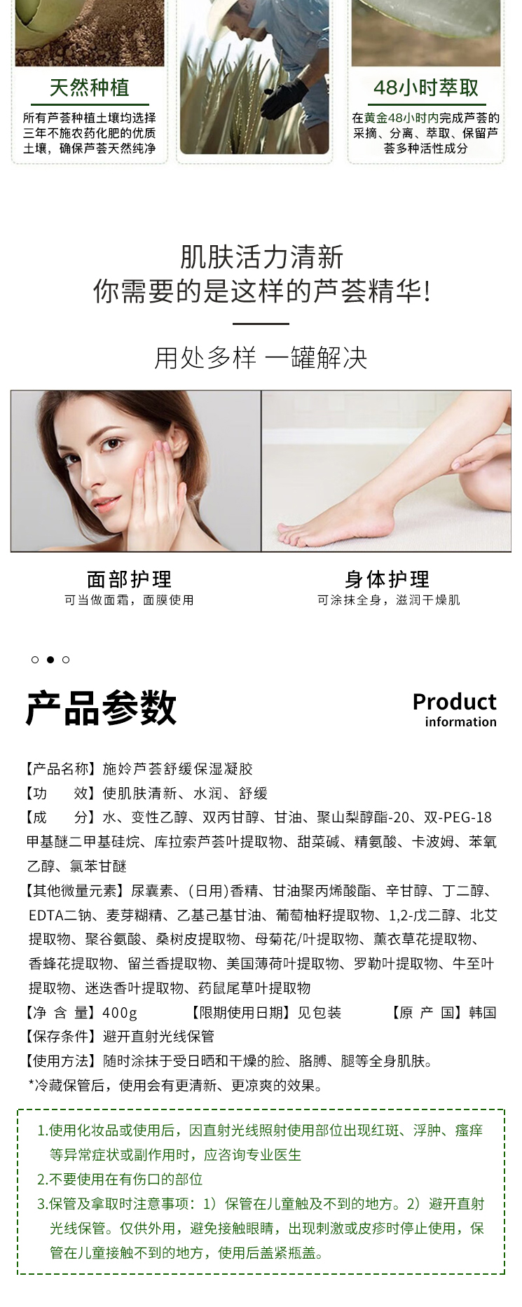 韩国进口施姈芦荟舒缓保湿凝胶400g