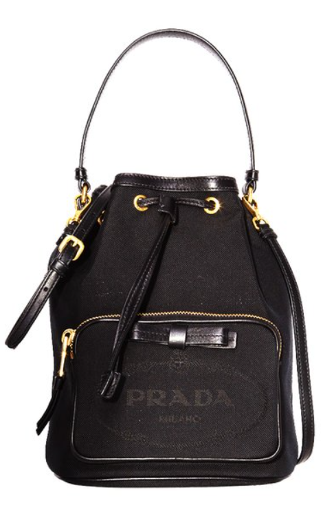 奥莱[PRADA]丝带字母水桶包大号1BH097 NERO LOGO提花JPY带授权招加盟代理