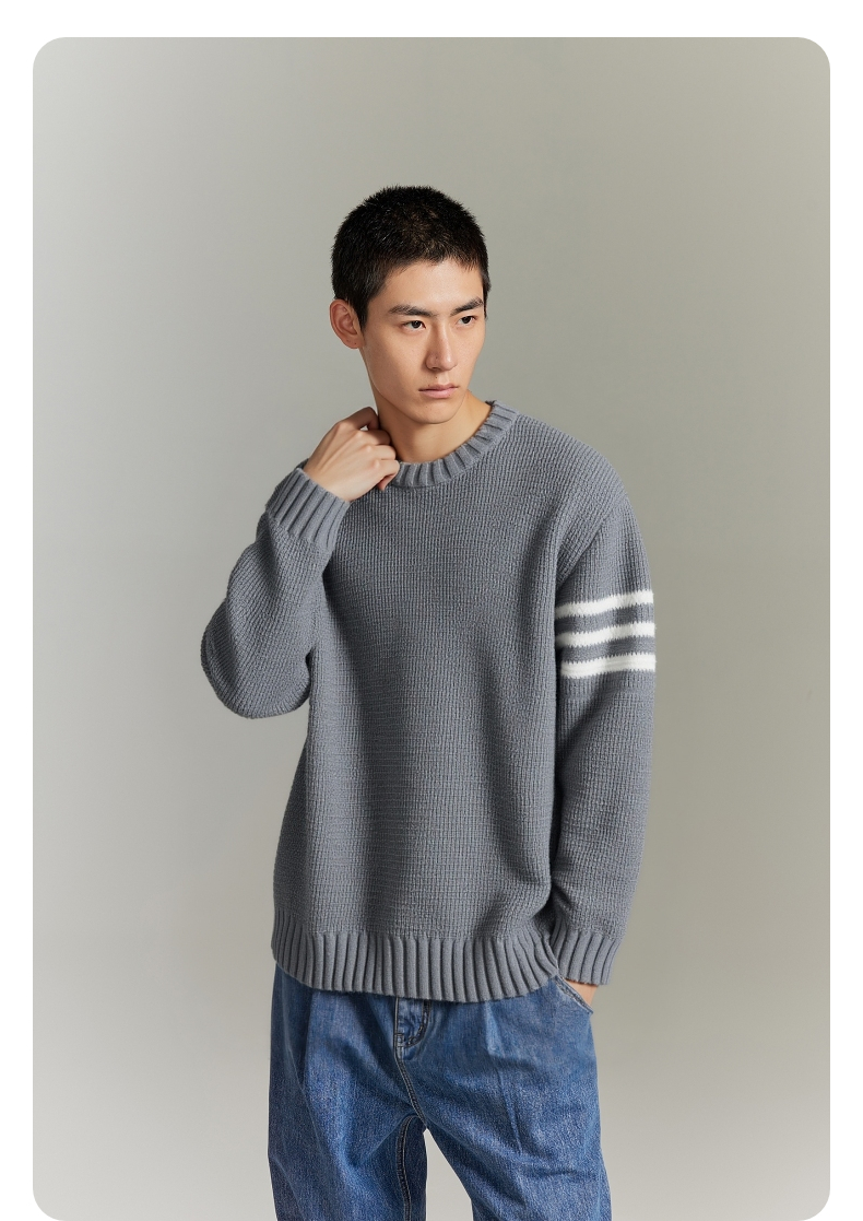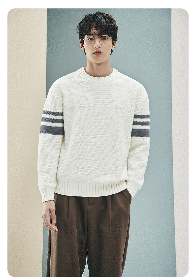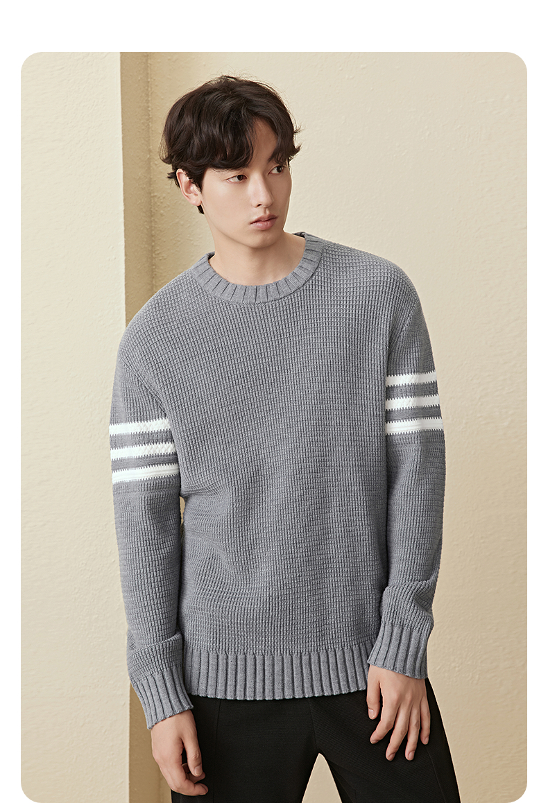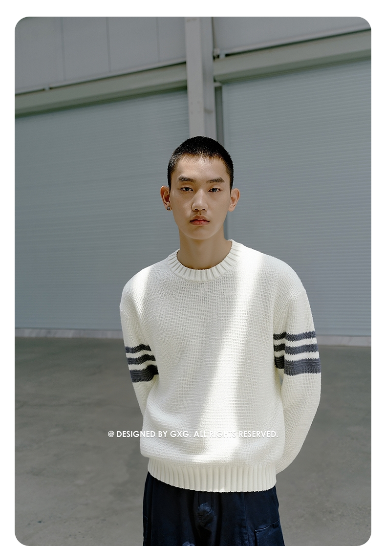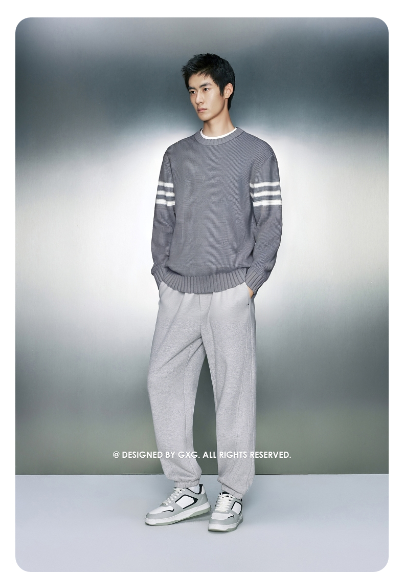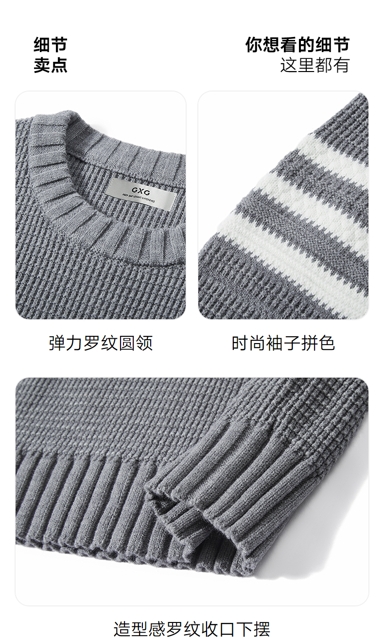 GXG男装 菠萝纹休闲毛衣肩膀条纹撞色通勤毛衫上衣 2025秋季热卖