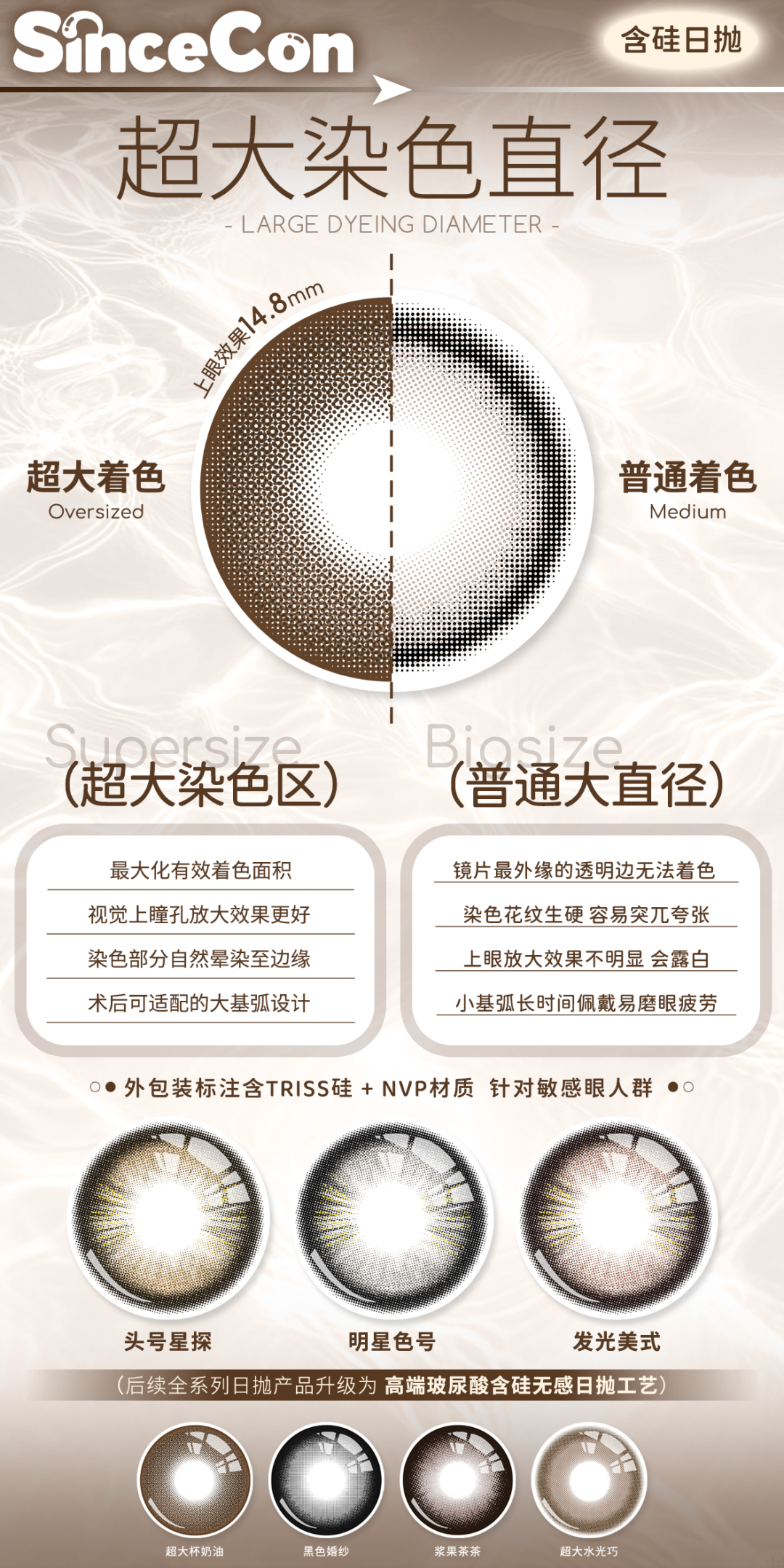 Sincecon日抛·超大杯奶油/黑色婚纱/浆果茶茶·14.5mm超大着色·一盒十片装