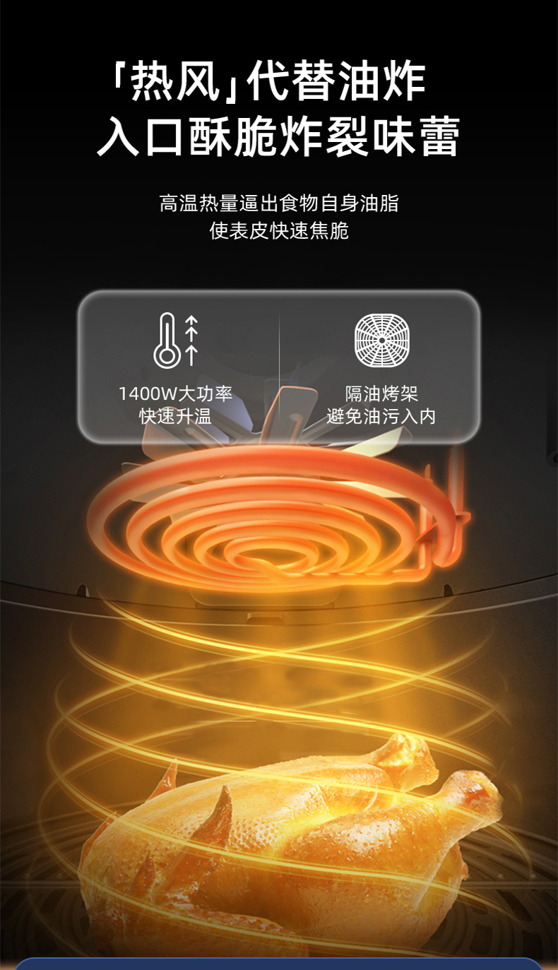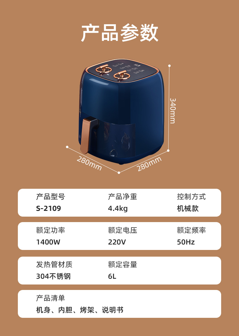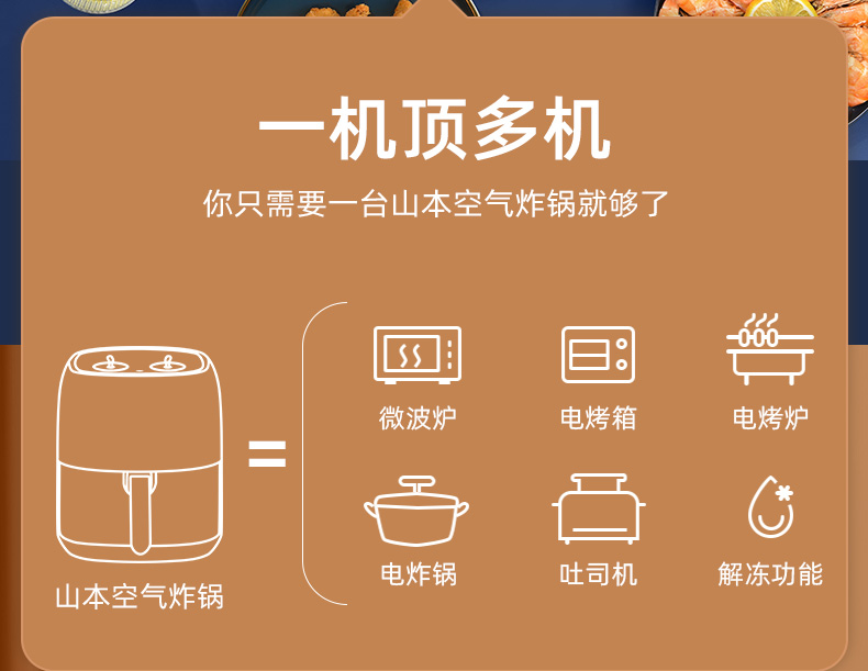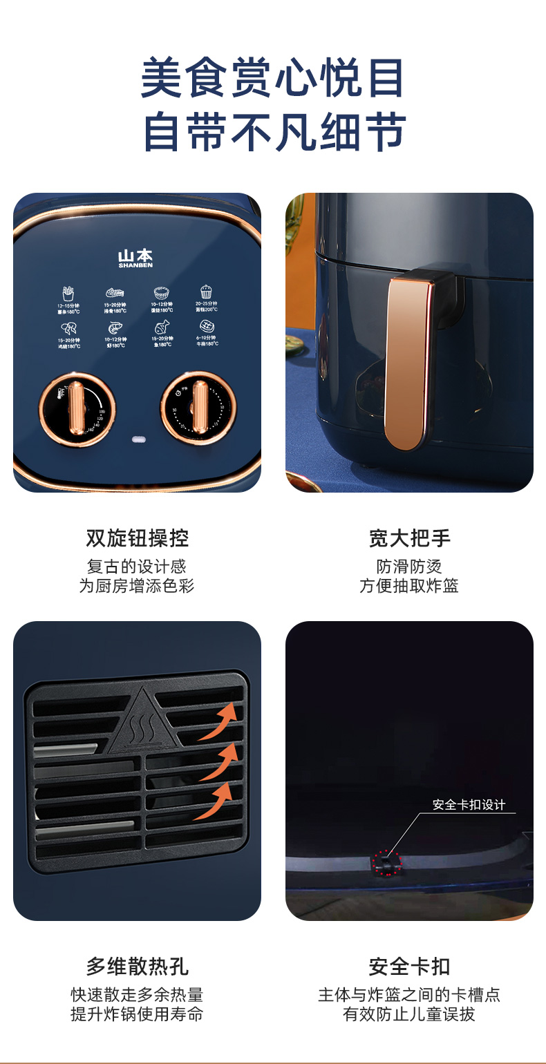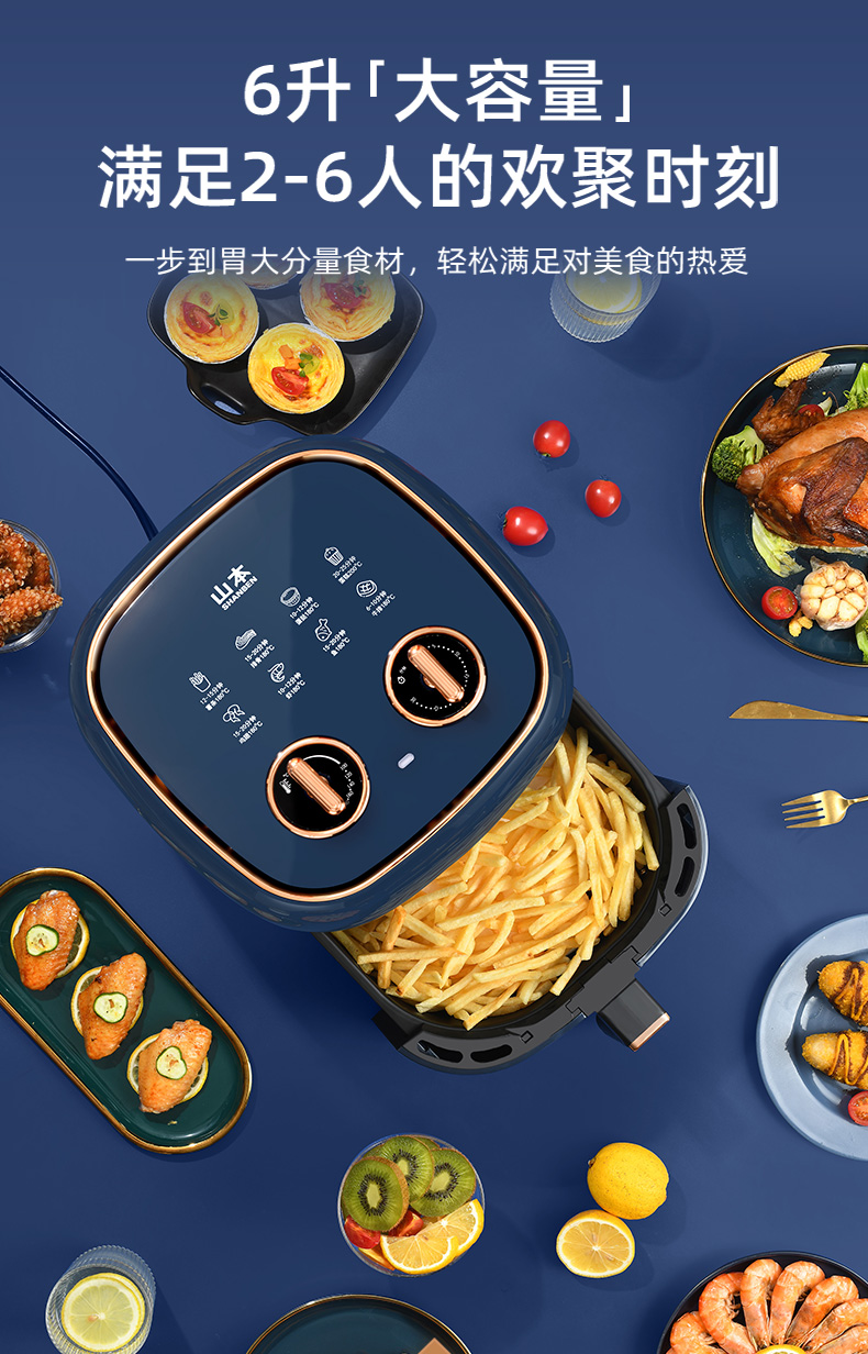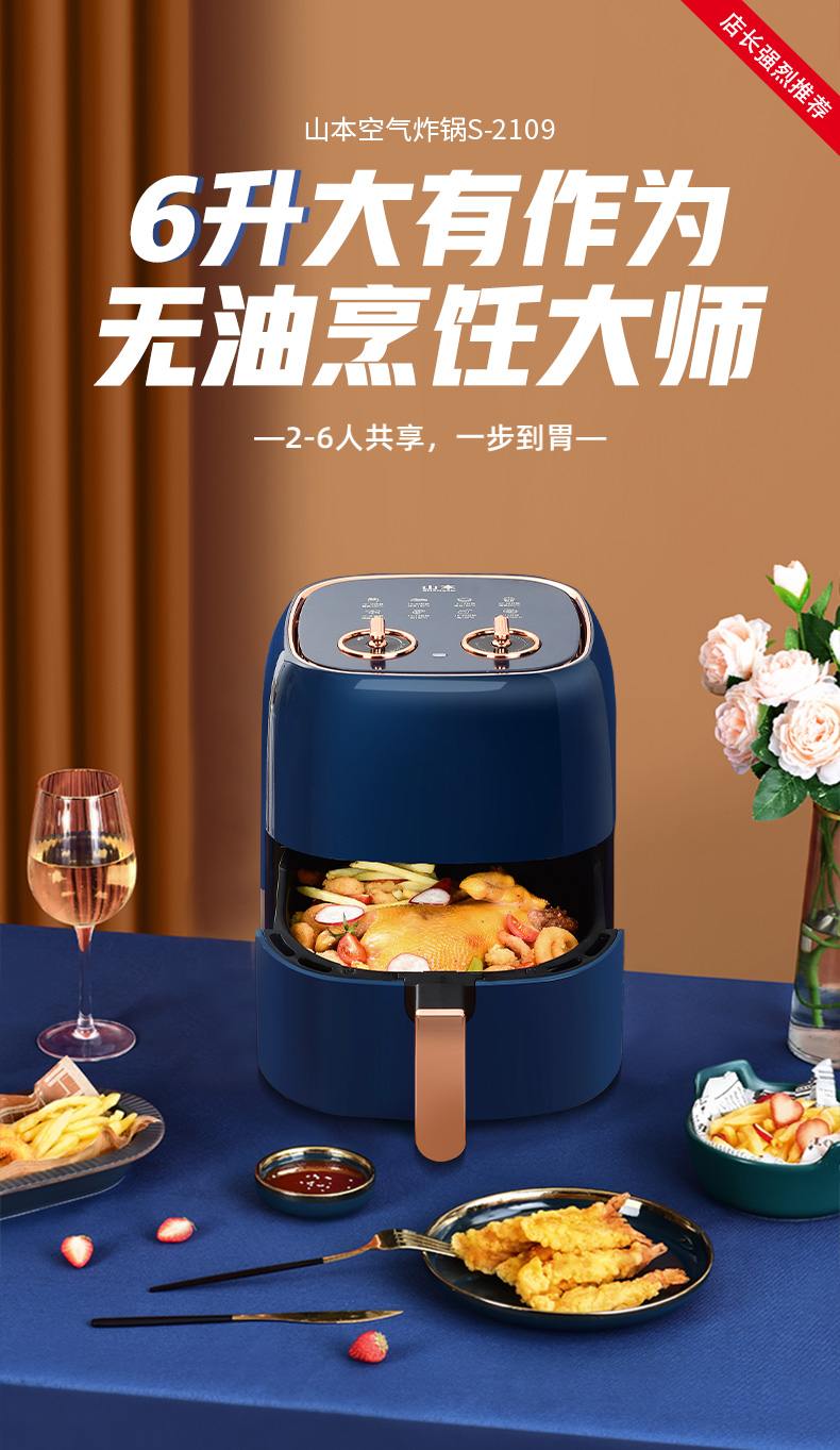 山本(SHANBEN )空气炸锅6L大容量智能家用全自动煎炸锅 多功能无油低脂电炸锅烤箱S-2109