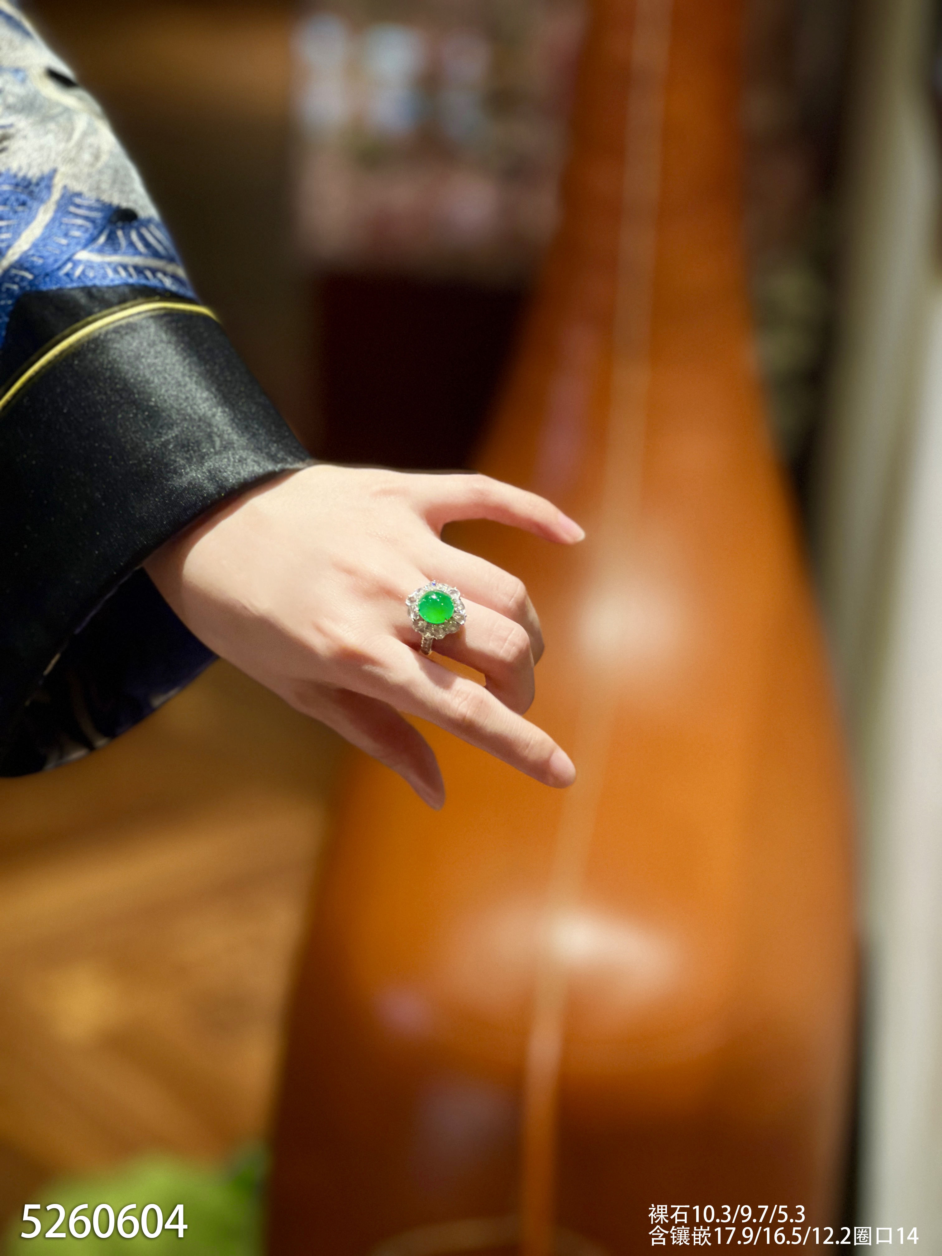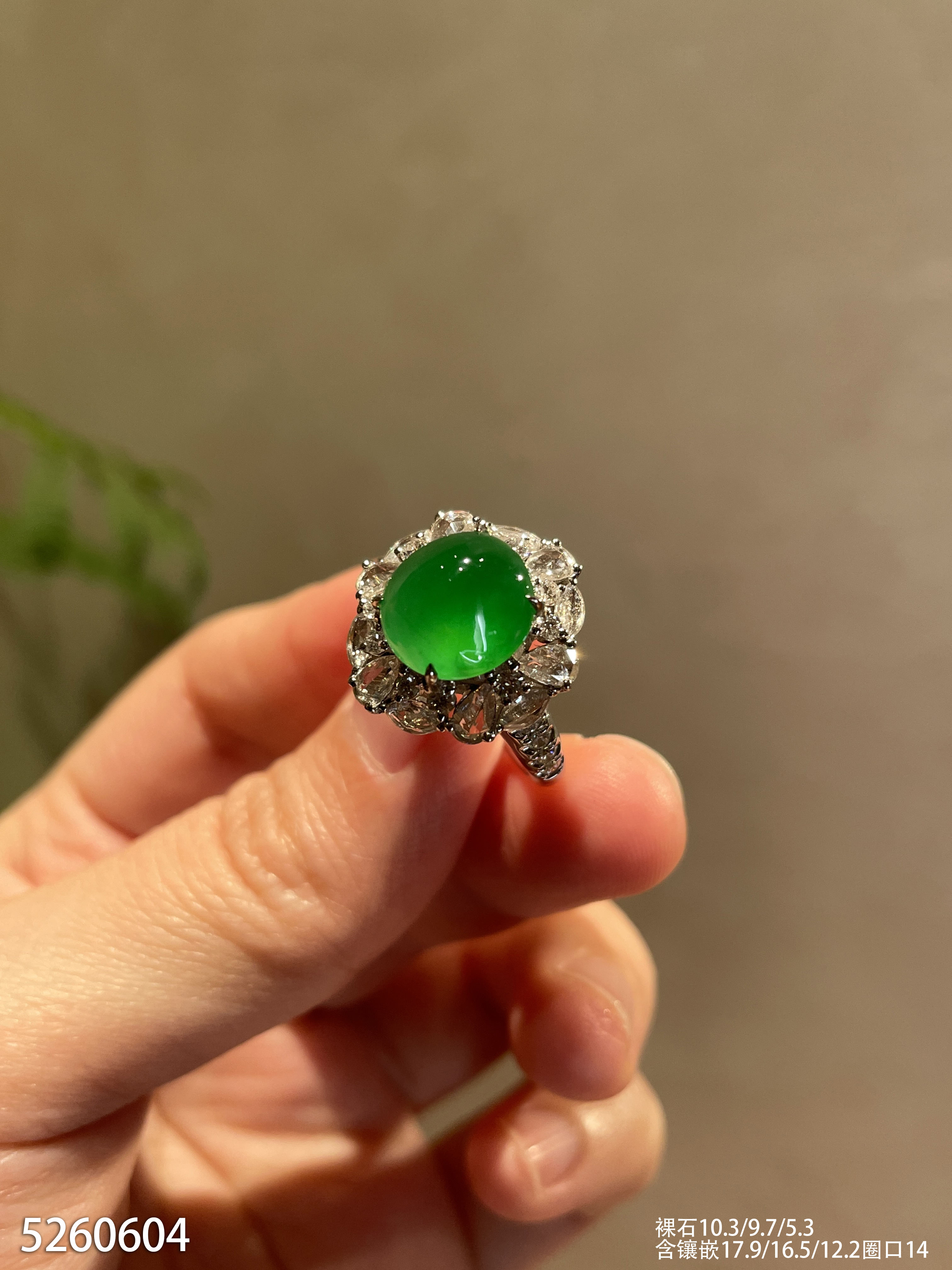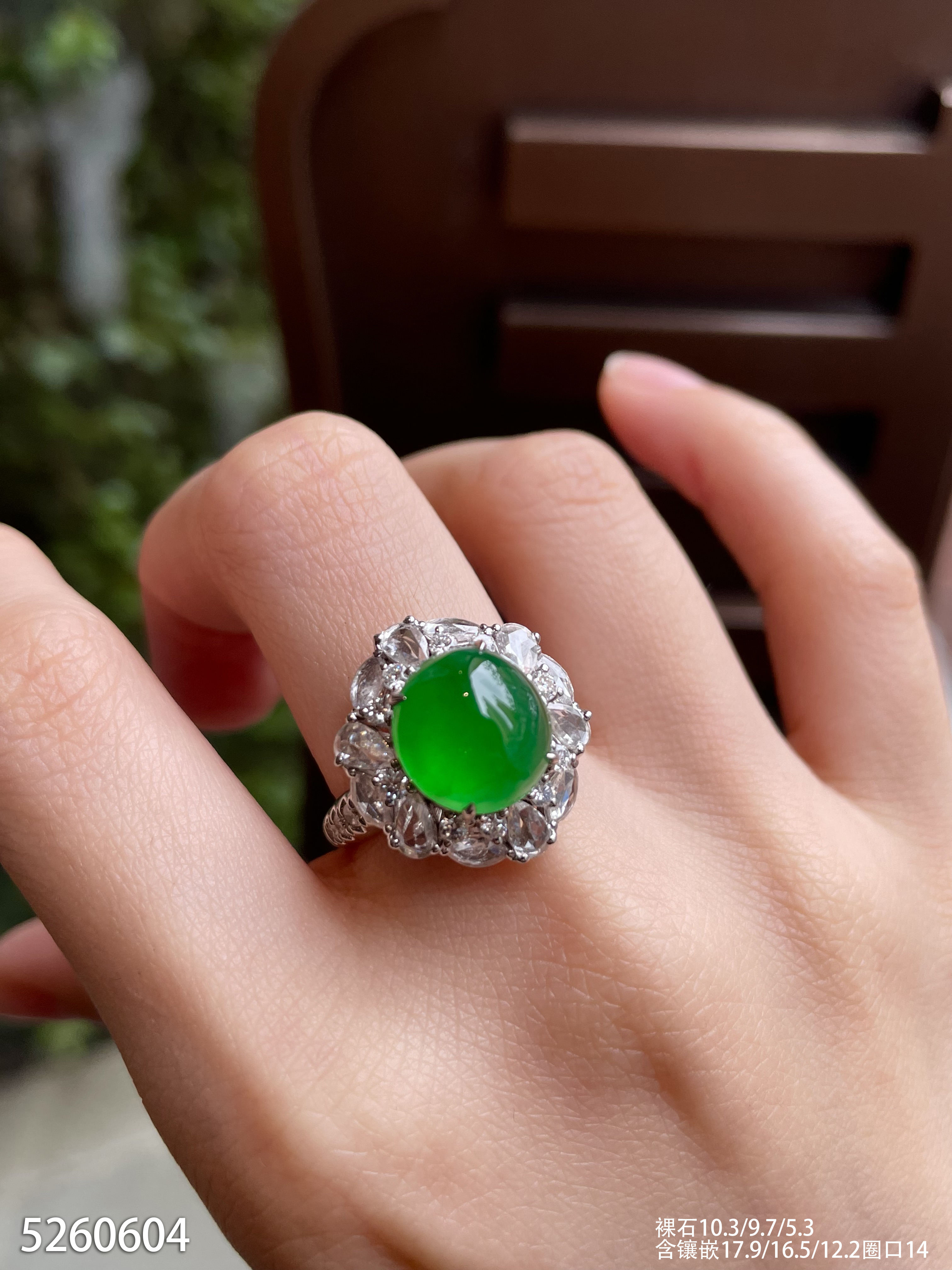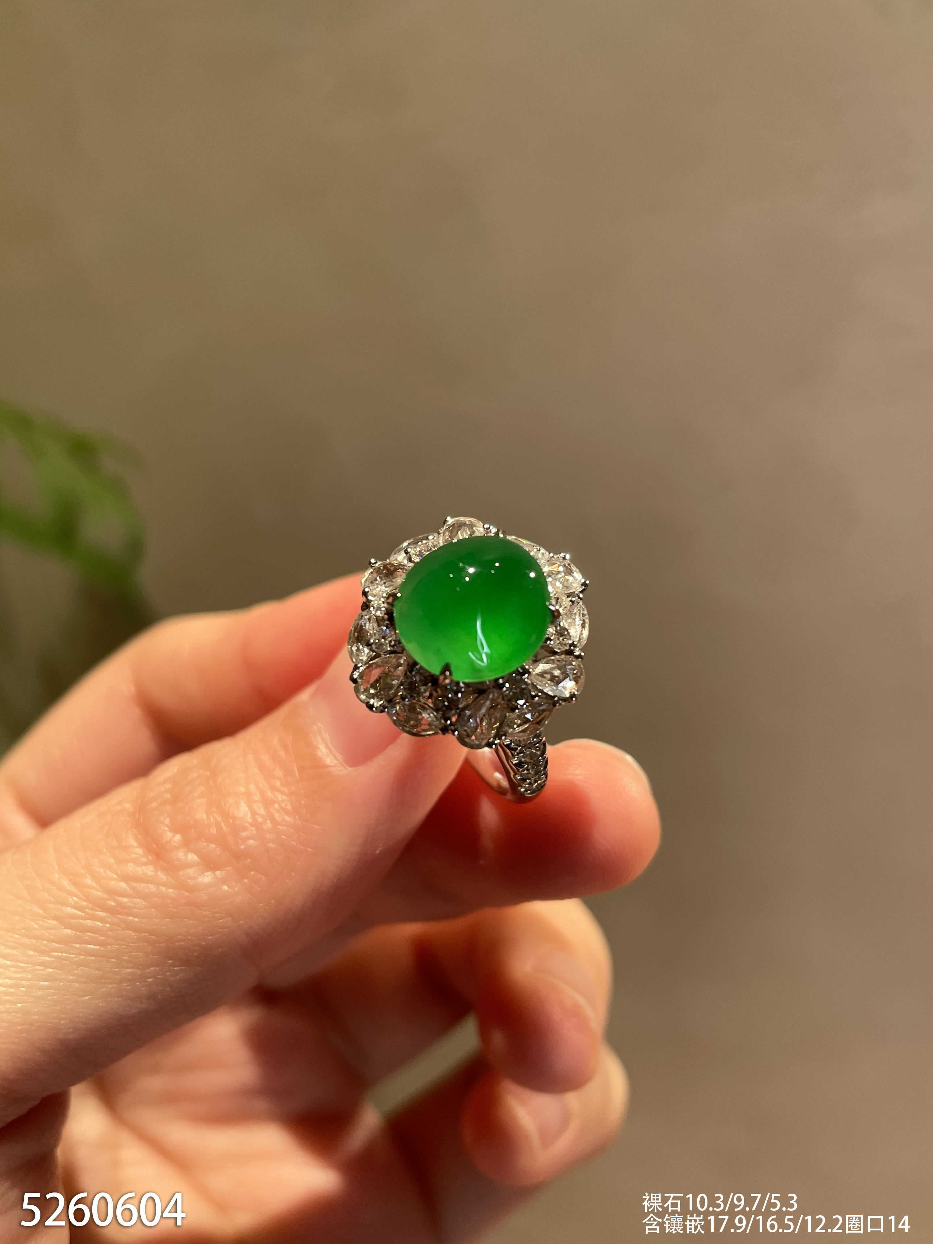 老坑高冰种艳绿蛋面戒指【5260604】具体价格微信咨询