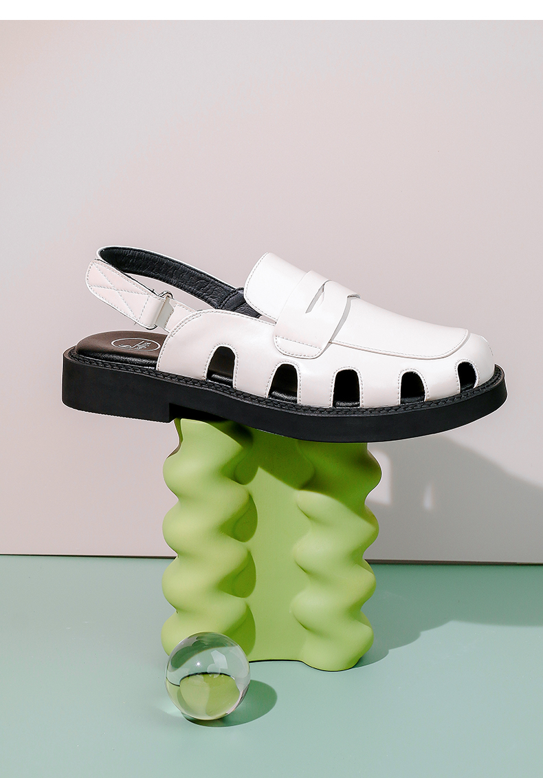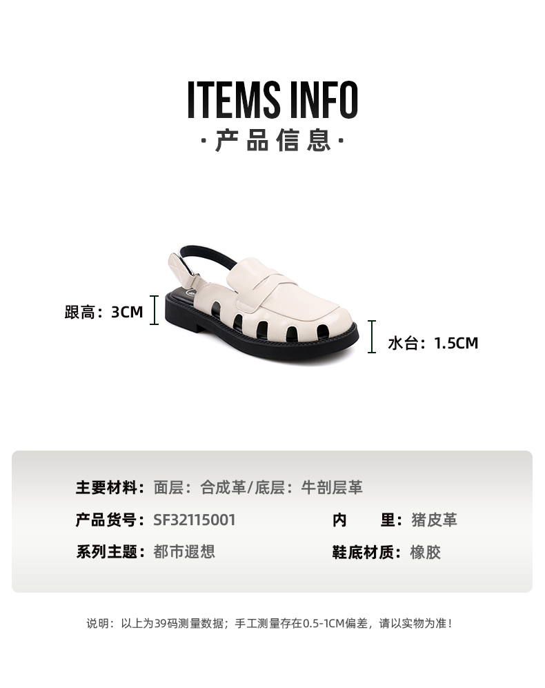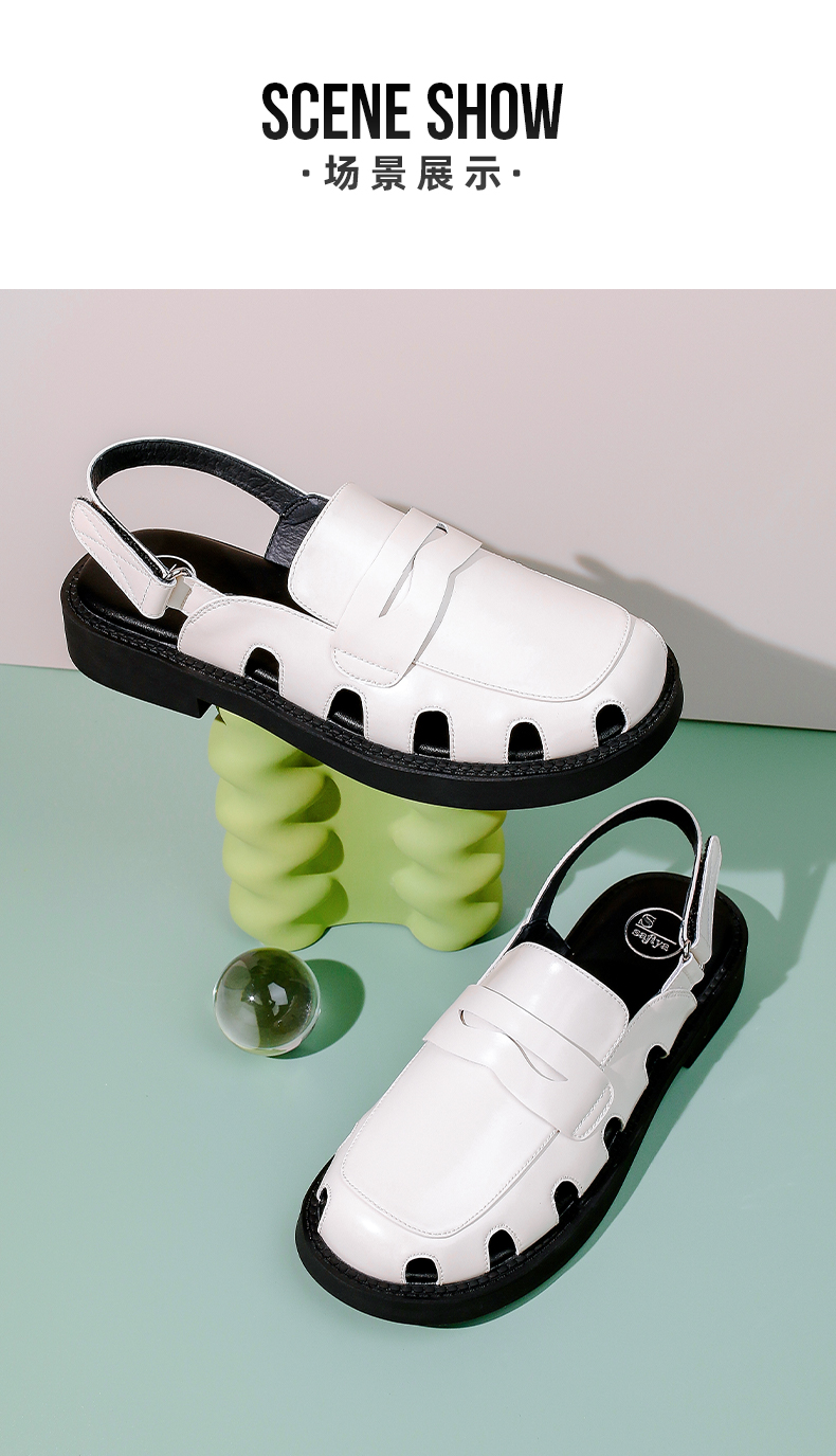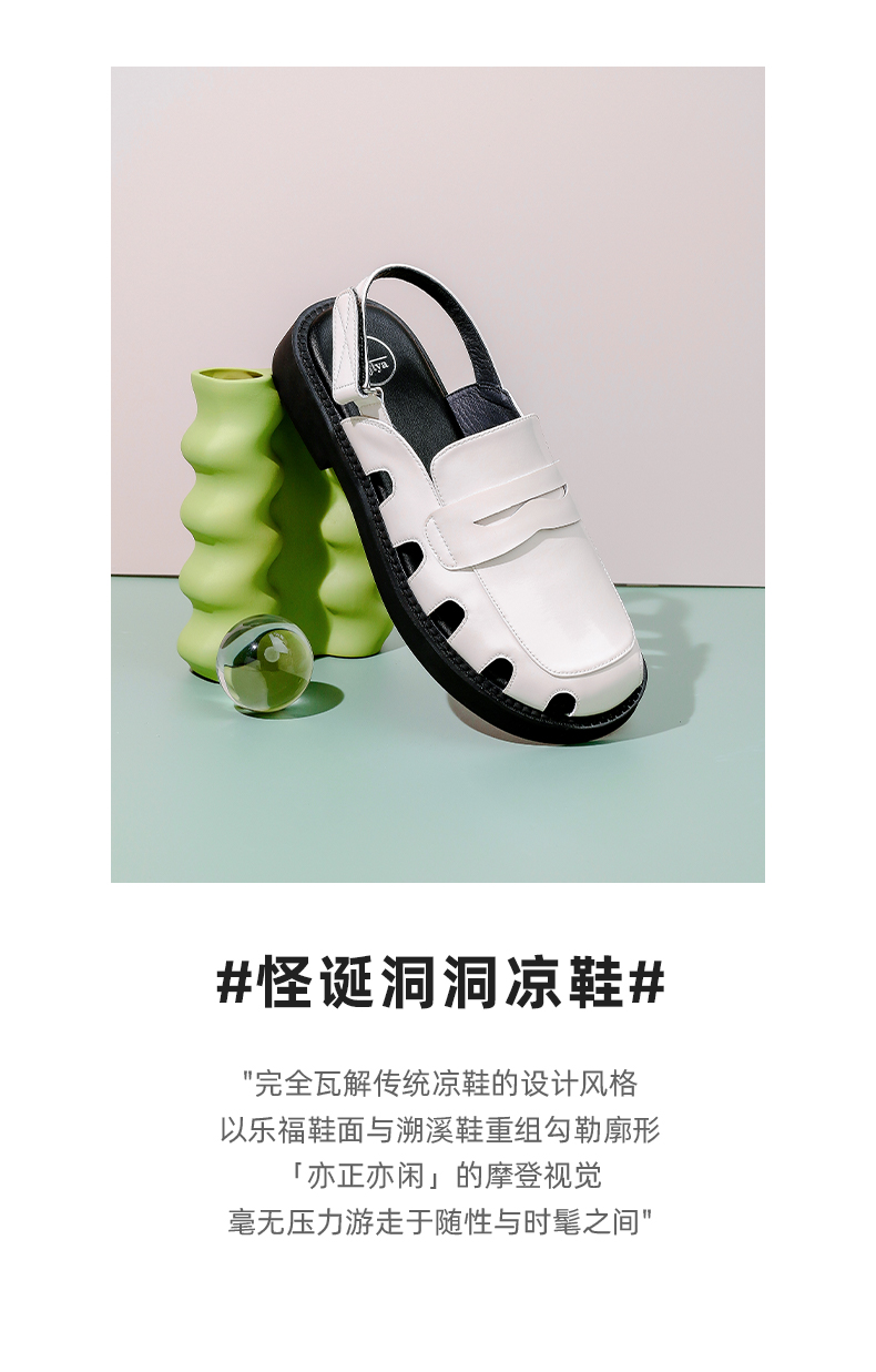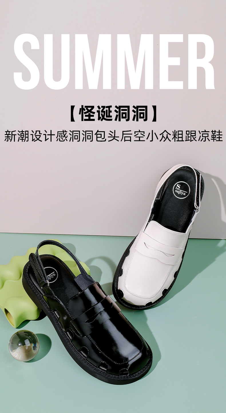 Safiya/索菲娅 新潮设计感2023年春季新款洞洞包头后空小众粗跟凉鞋 SF32115001