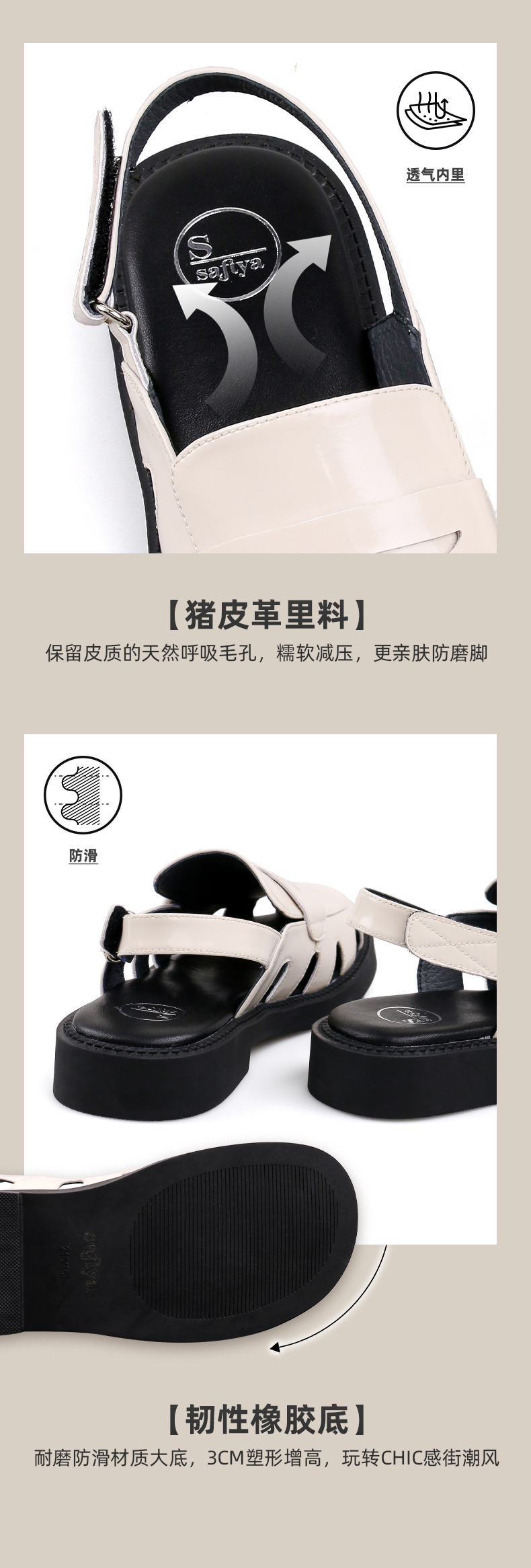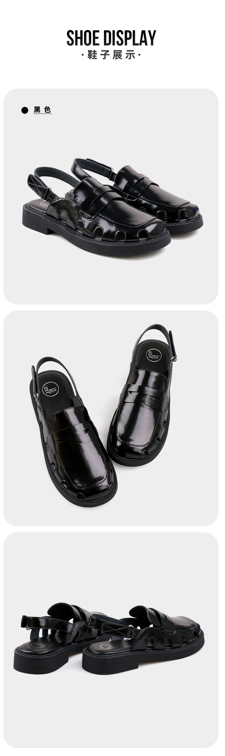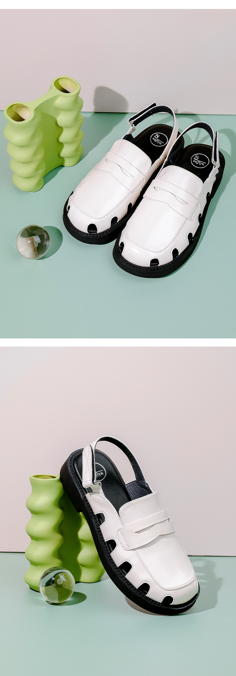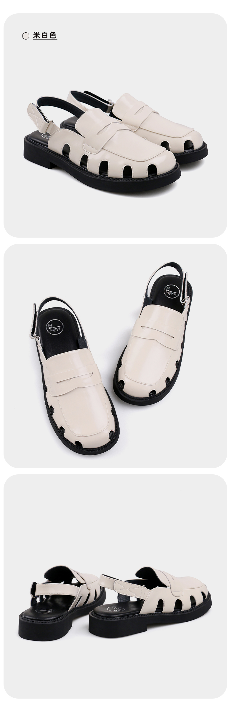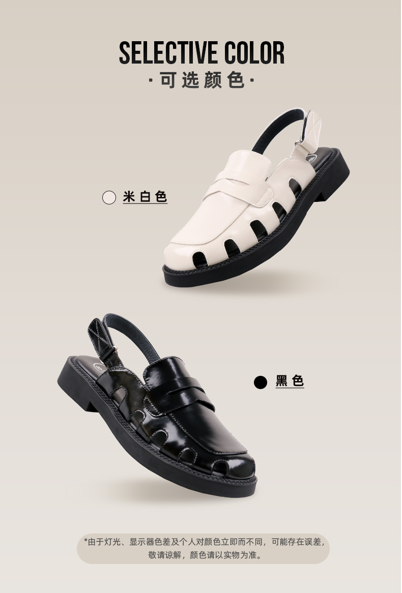 Safiya/索菲娅 新潮设计感2023年春季新款洞洞包头后空小众粗跟凉鞋 SF32115001