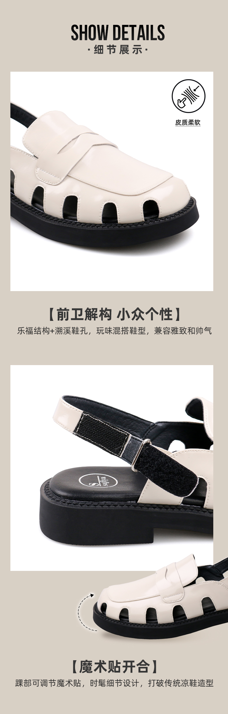 2、细节展示:材质、工艺、做工等;