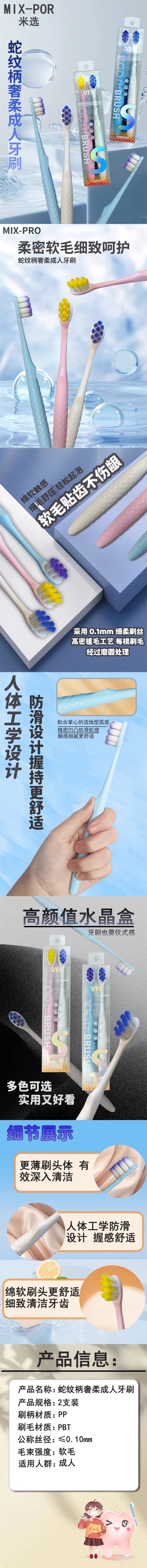 【13元会员福利】米选V201蛇纹柄奢柔成人牙刷—2支装