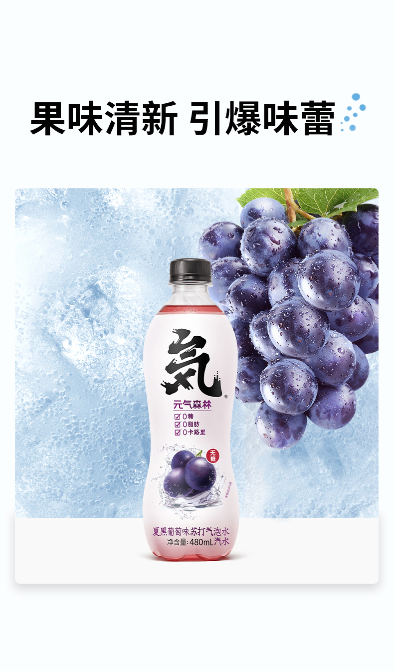 【下架】元气森林气泡水480ml 夏黑葡萄 15瓶