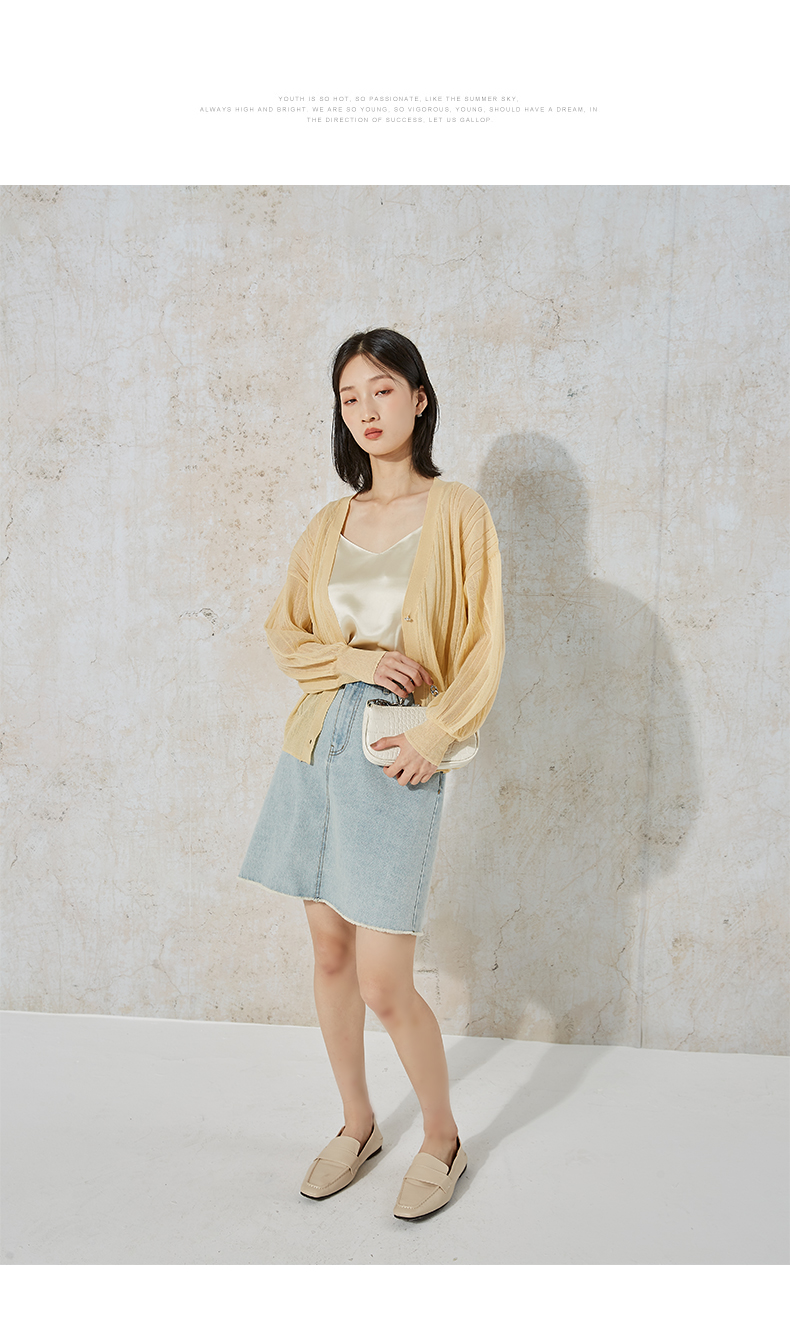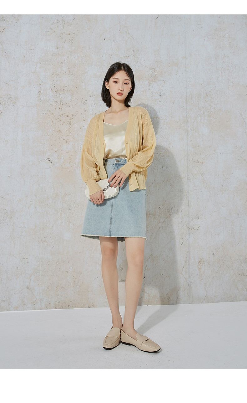 NUTS商场同款夏季时尚休闲简约高腰纯色水洗牛仔半裙女231065079B
