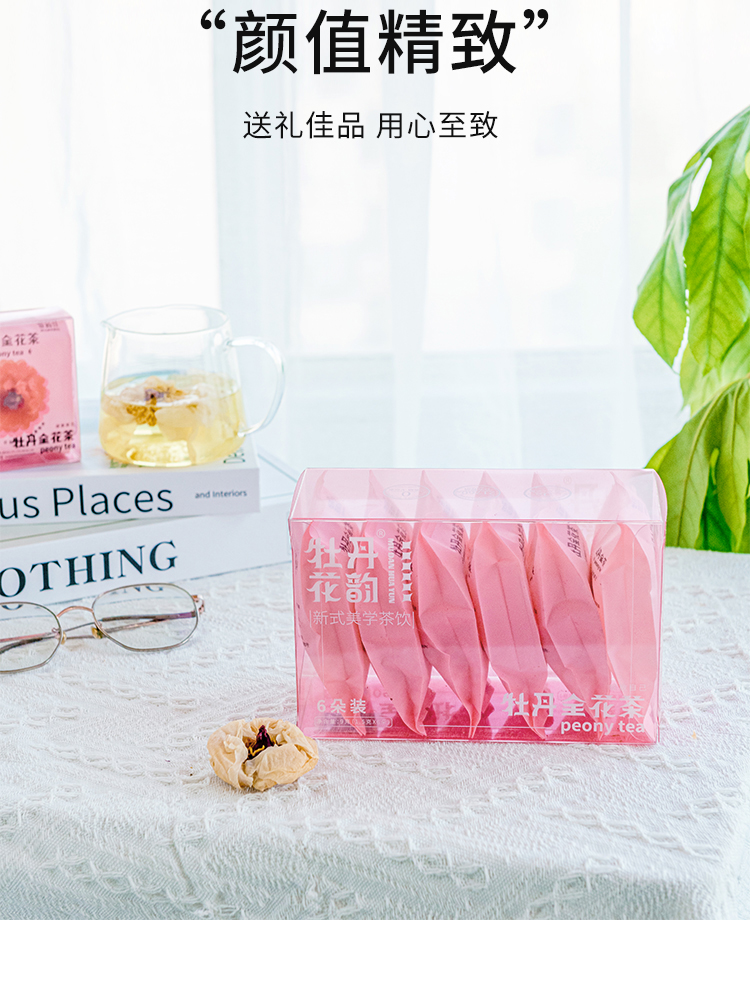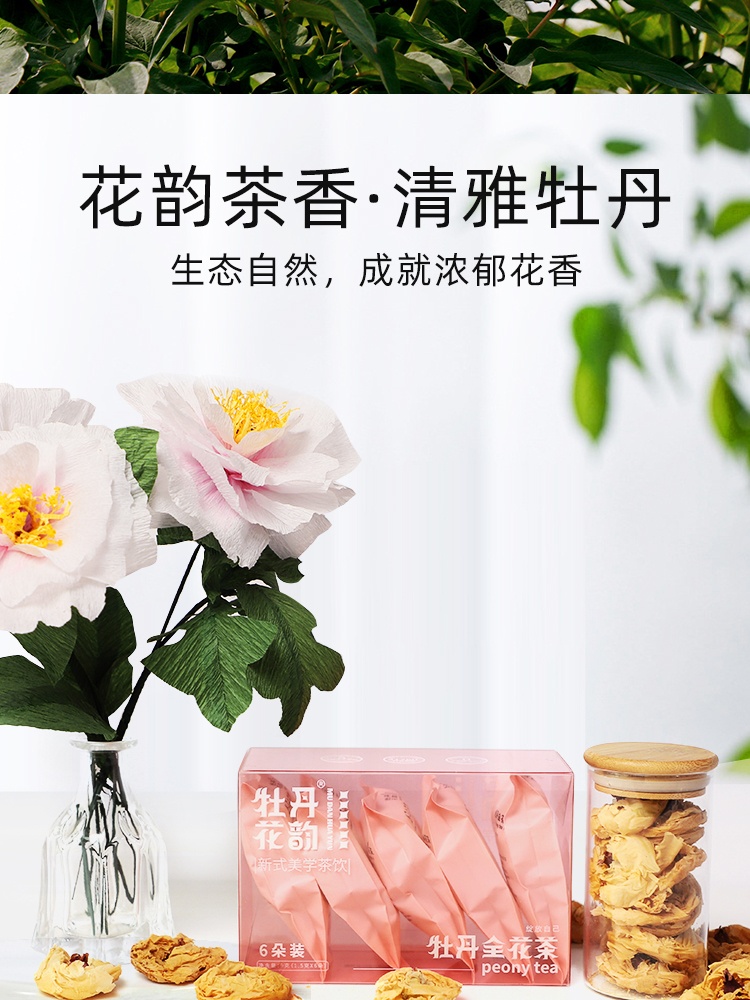 【包邮到家|牡丹全花茶礼盒装】牡丹花韵牡丹全花茶礼盒装1.5g✖️6朵/盒。可以喝的牡丹花,每一朵都是人工严选采摘,朵朵花型饱满,营养富集。如风生活特惠