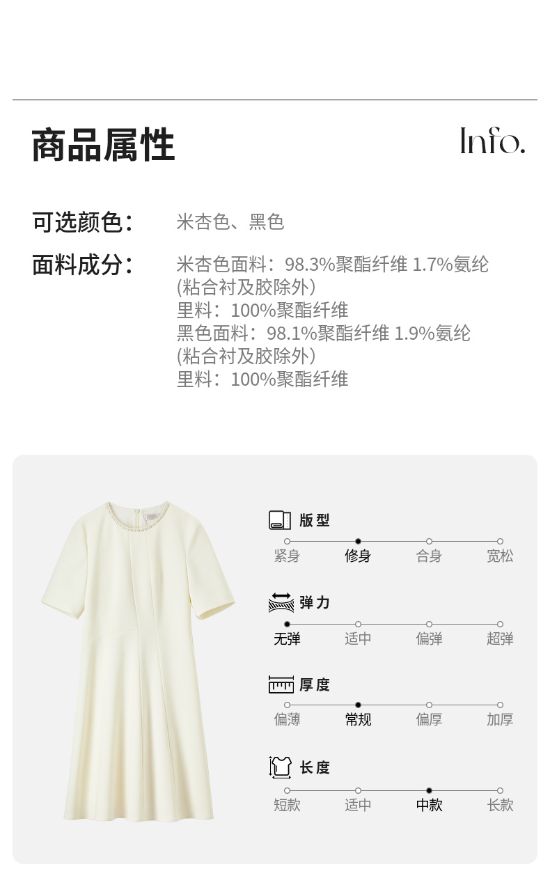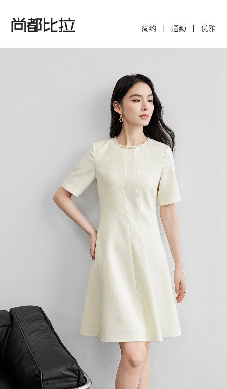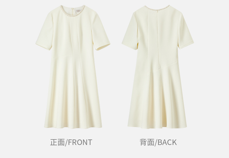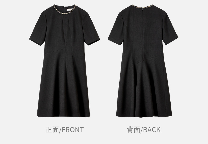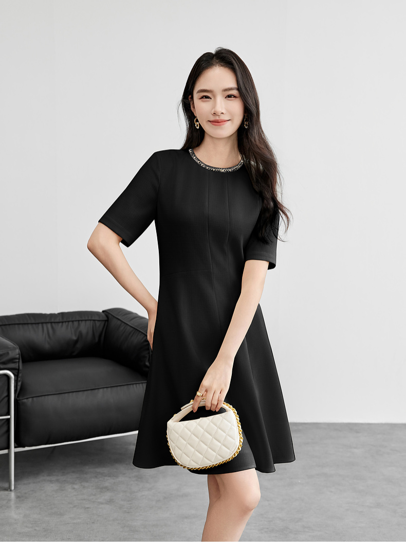 【内购】经典赫本风通勤优雅手工钉珠织带圆领显瘦短袖A字连衣裙-151L58192